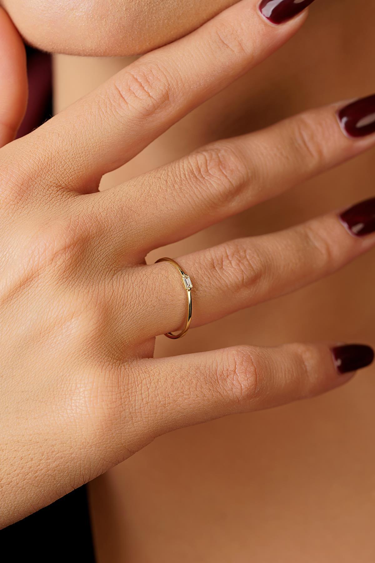 14 Ayar Altın Baget Taşlı Yüzük Beyaz