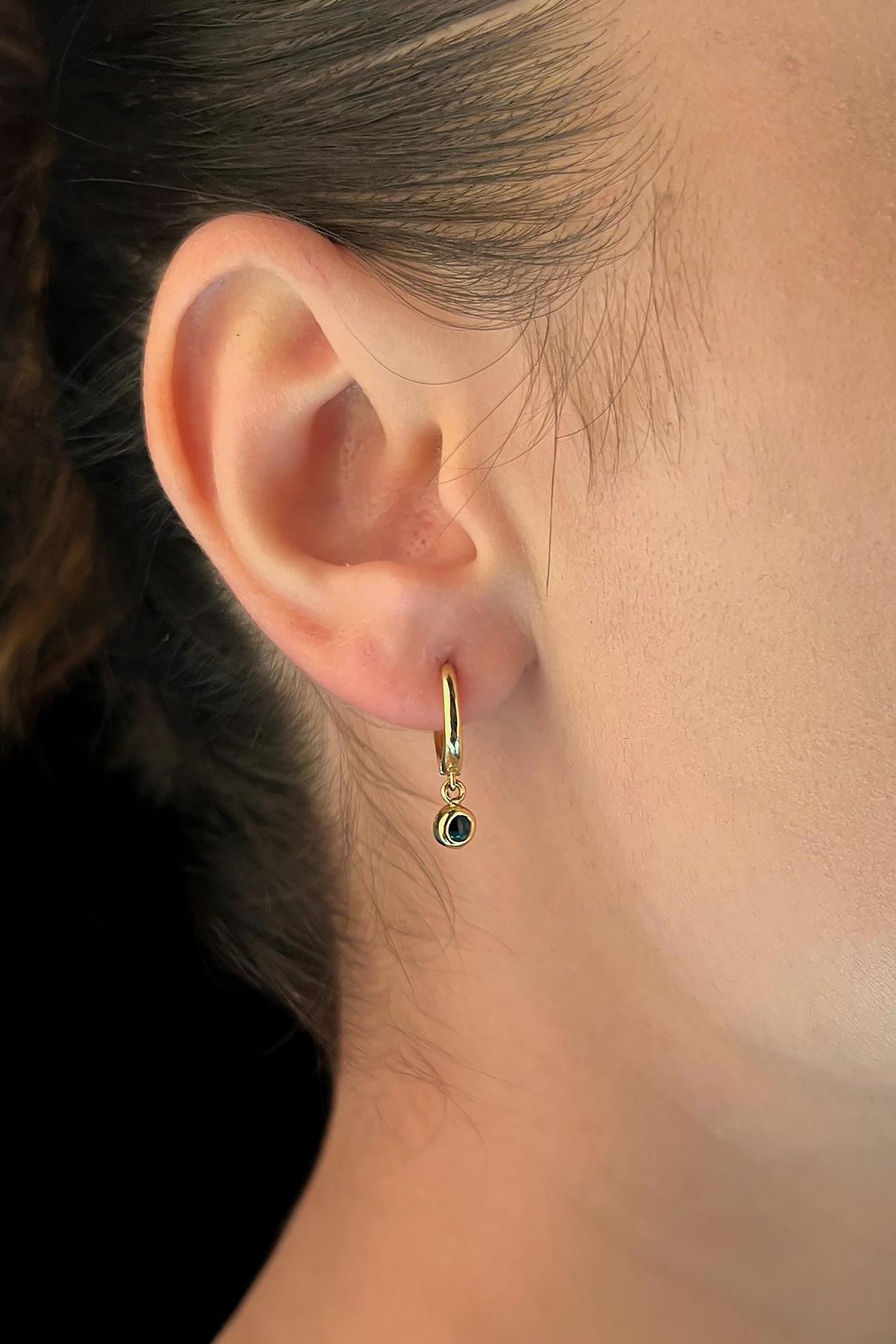14 Ayar Altın Mini Göz Sallantılı Küpe