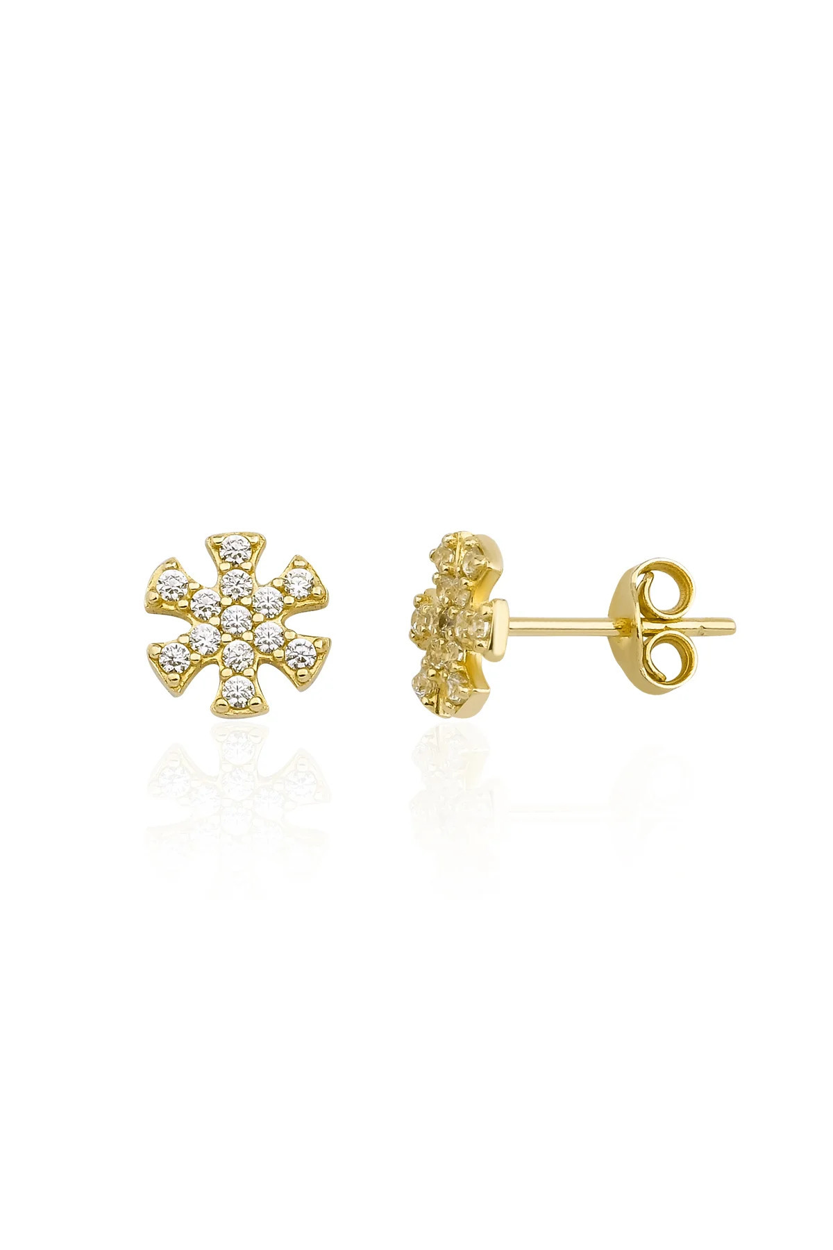 14 Ayar Altın Mini Kar Tanesi Küpe