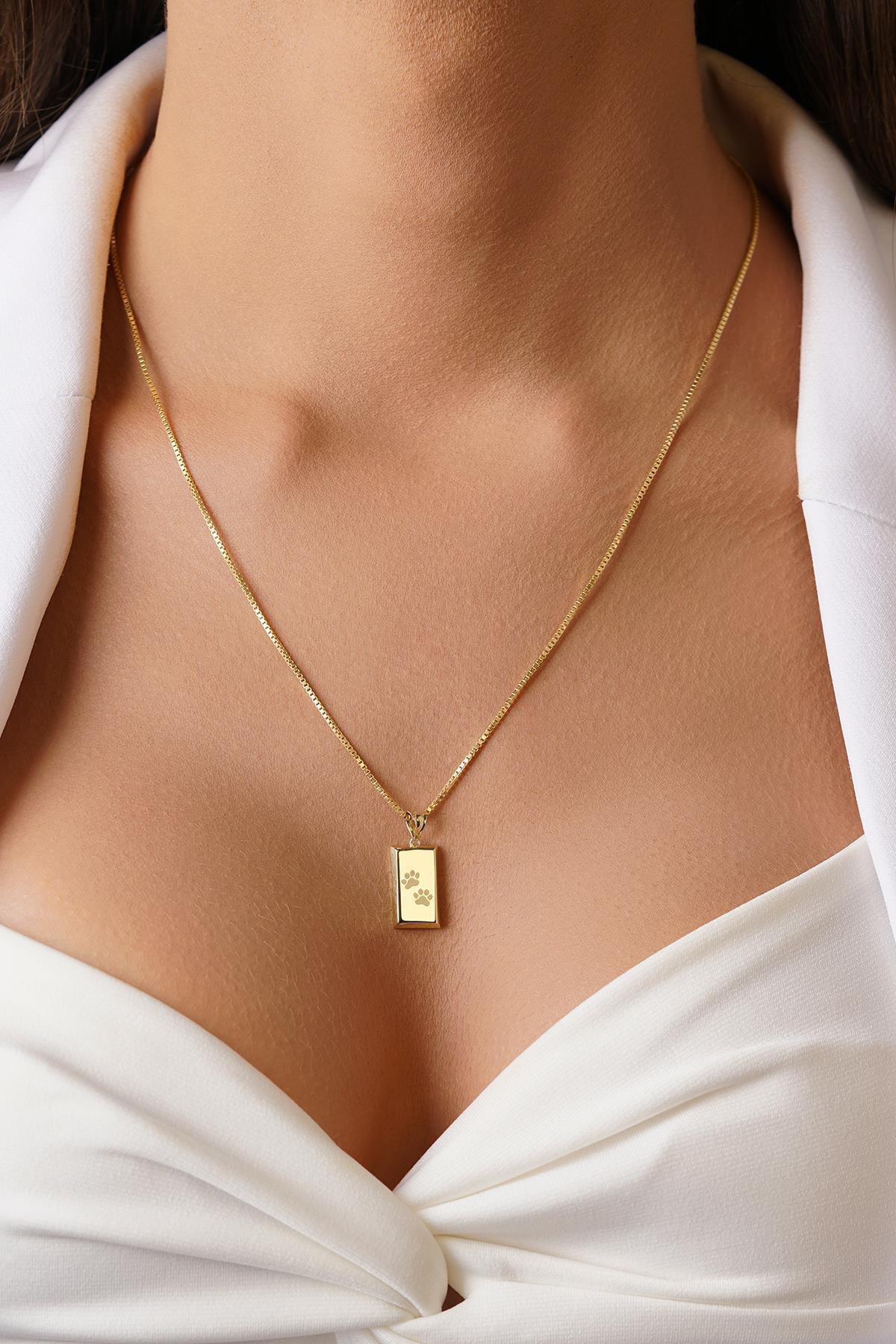14 Ayar Altın Mini Külçeli Desenli Küp Zincir Kolye 1,05 mm