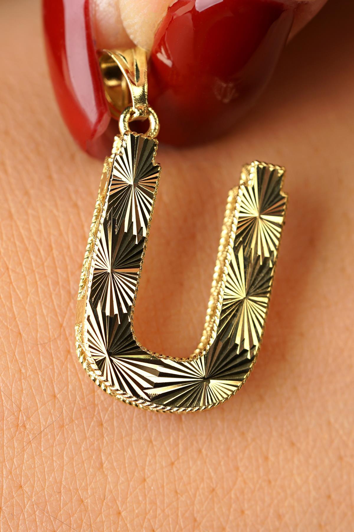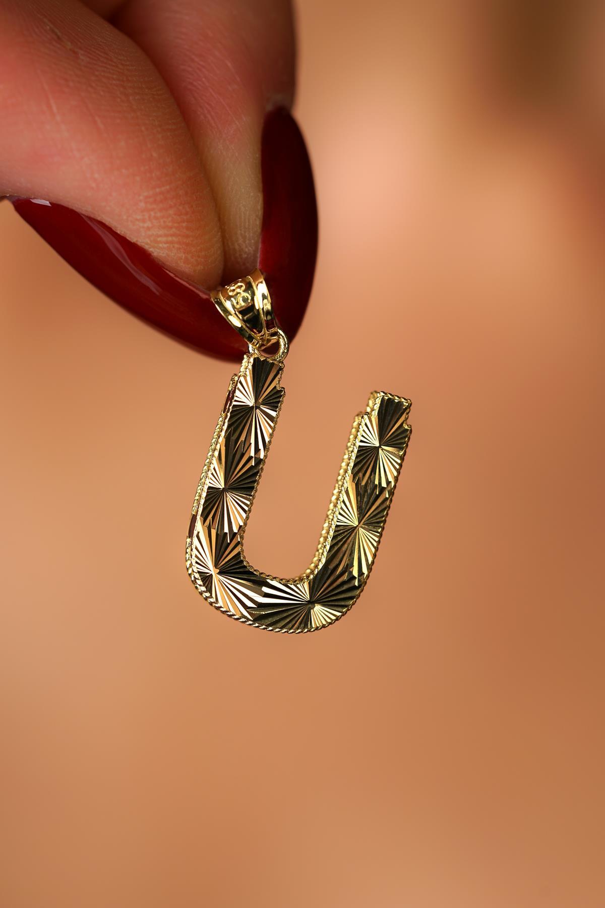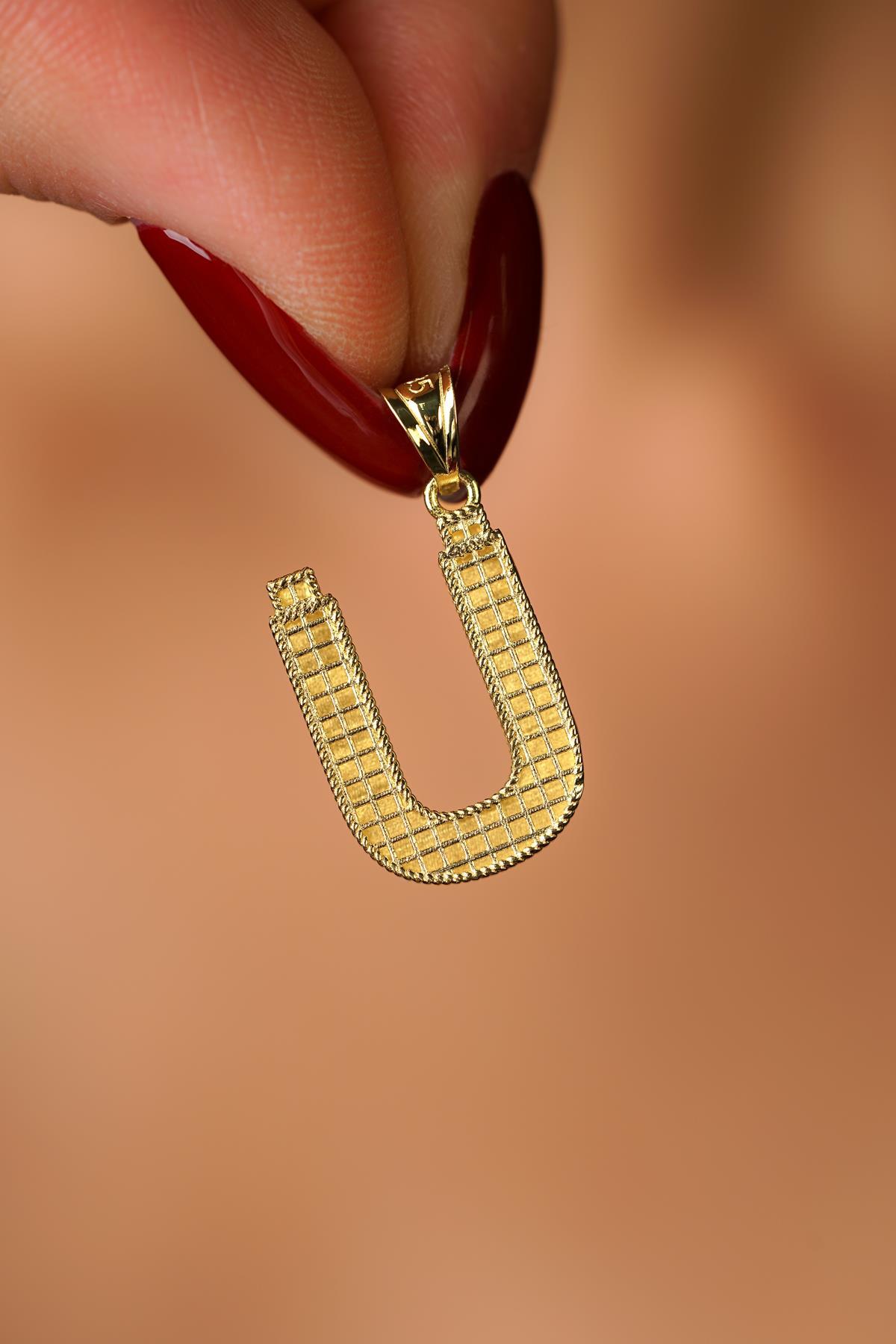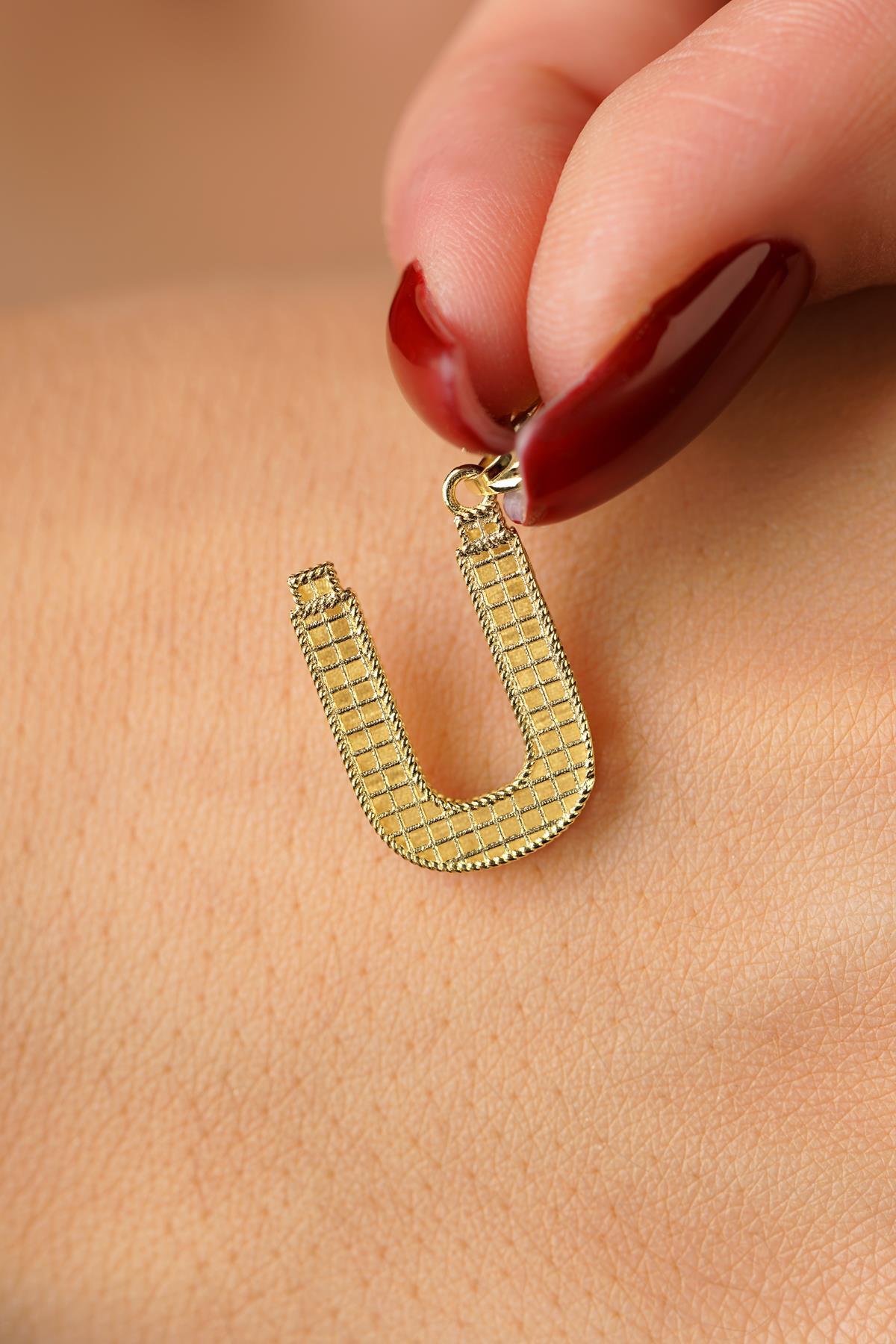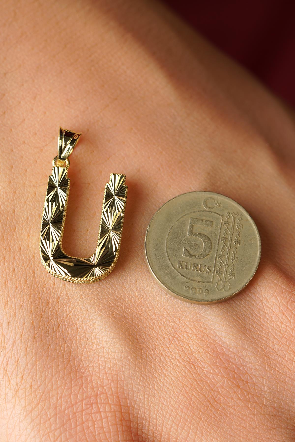 14 Ayar Altın Mini Shine Kolye Ucu Ü Harfi