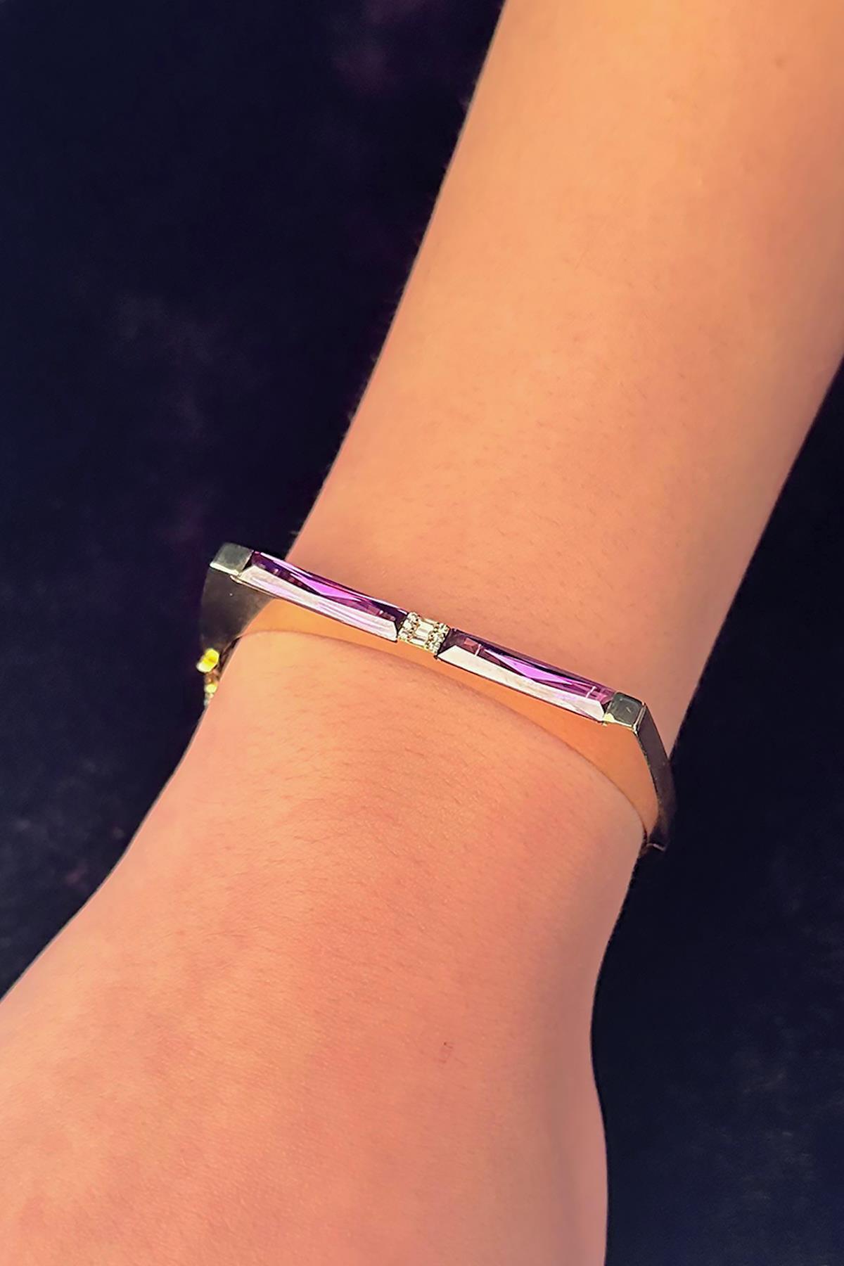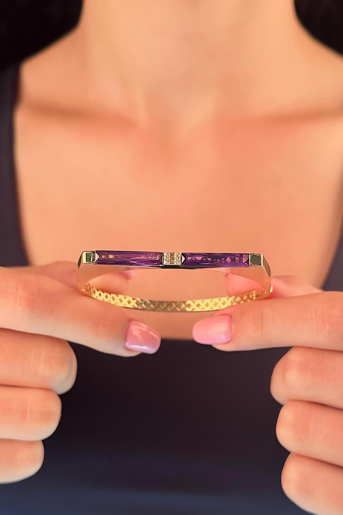 14 Ayar Altın Mor Taş Detaylı Baget Kelepçe