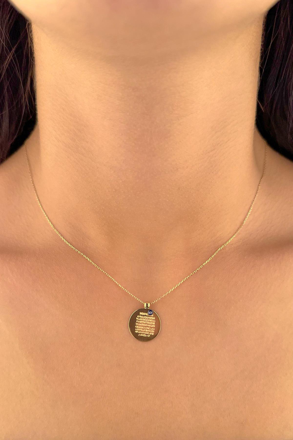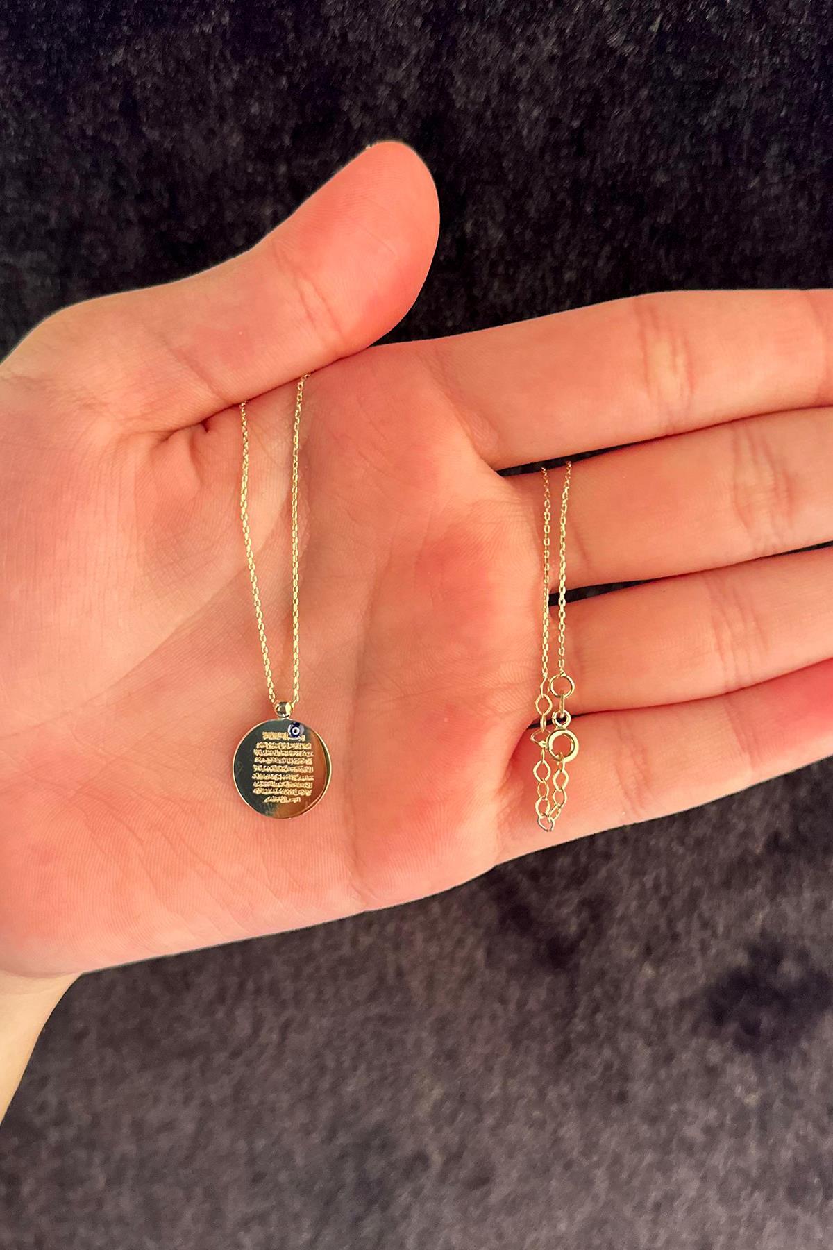 14 Ayar Altın Nazarlık Kolye Ayetel Kürsi Yazılı Kolye 15 mm