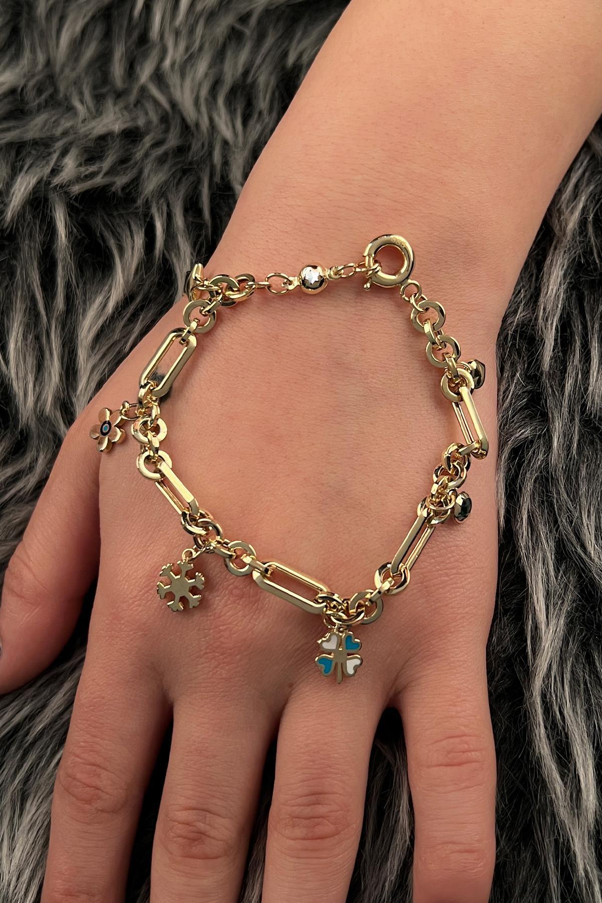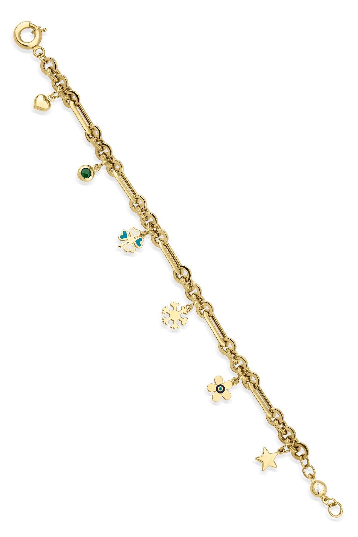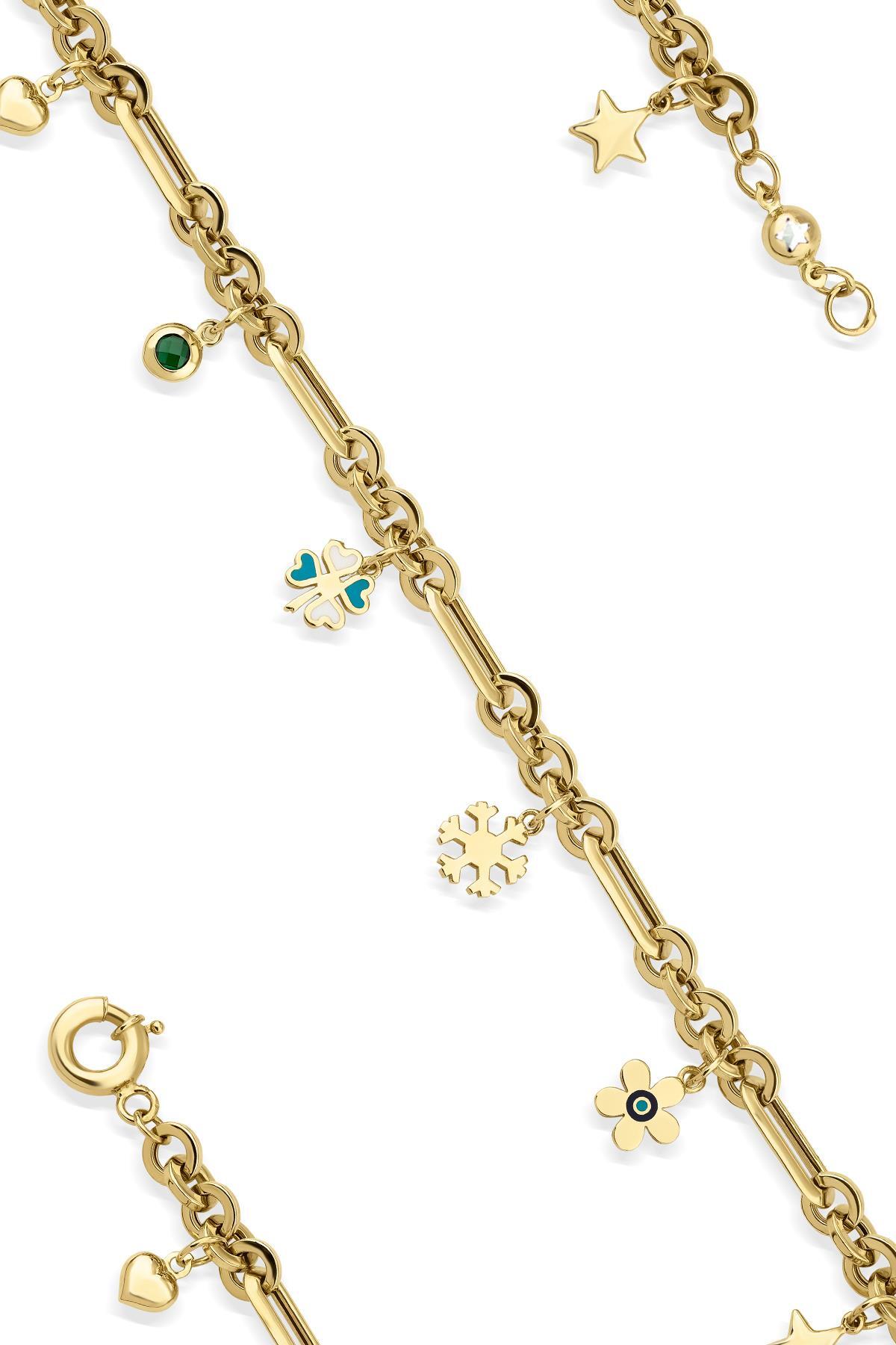 14 Ayar Altın Obje Sallantılı Ataç Şans Bilekliği 2