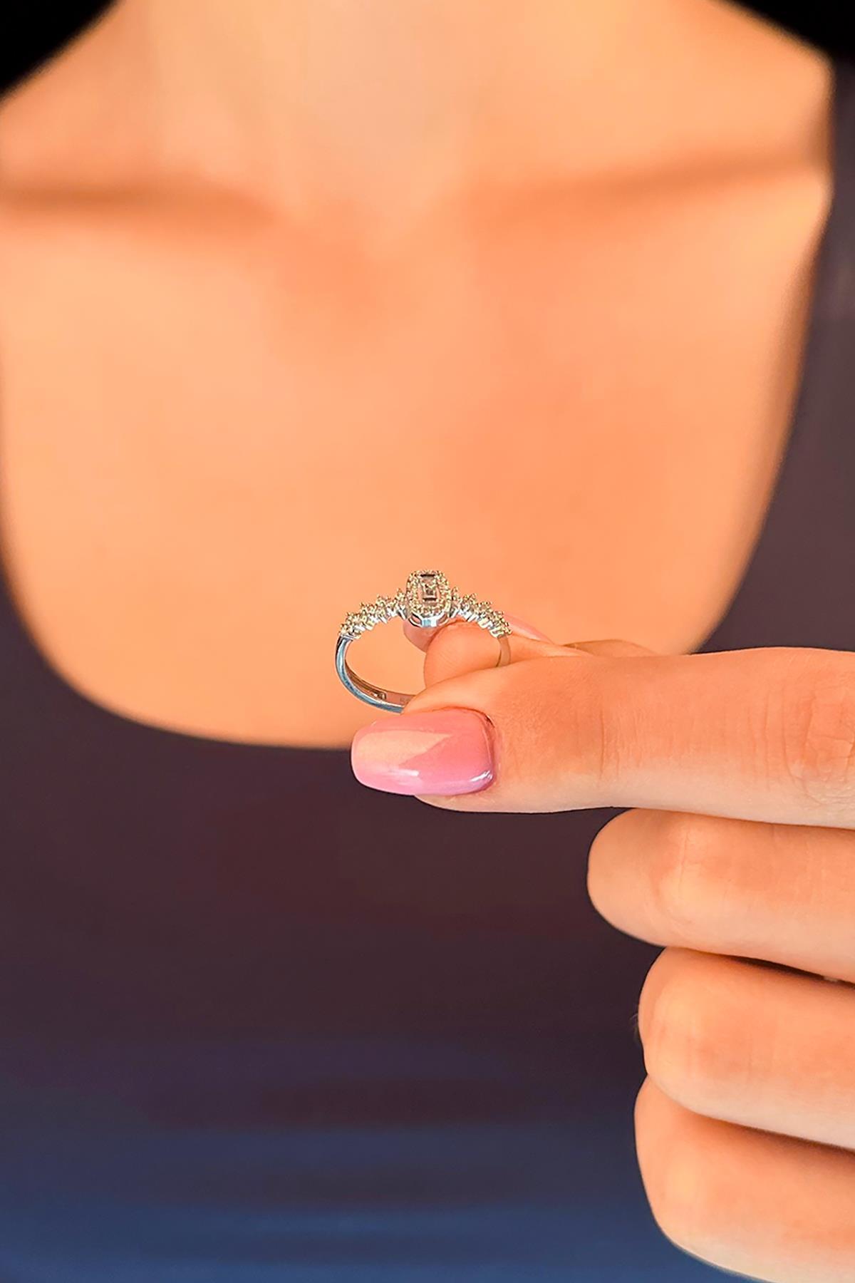 14 Ayar Altın Baget Taşlı Yüzük Beyaz