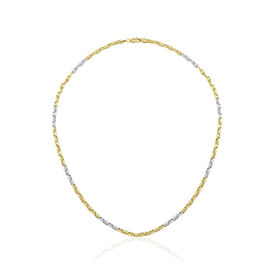 14 Ayar Altın Oval Barlı Yeşil Beyaz Zincir Kolye