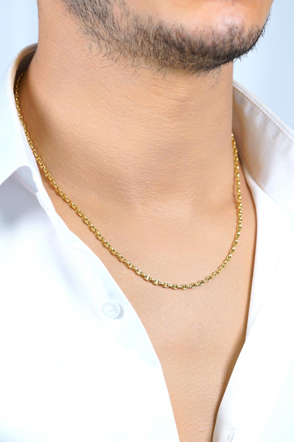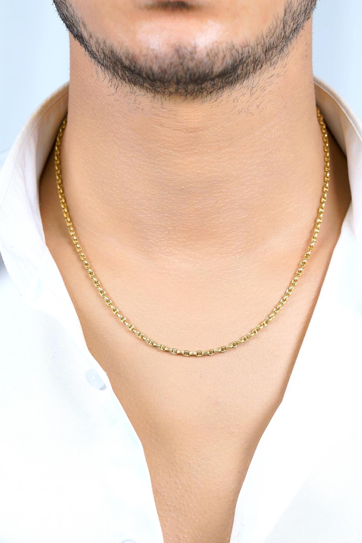 14 Ayar Altın Oval Barlı Zincir Erkek Kolye