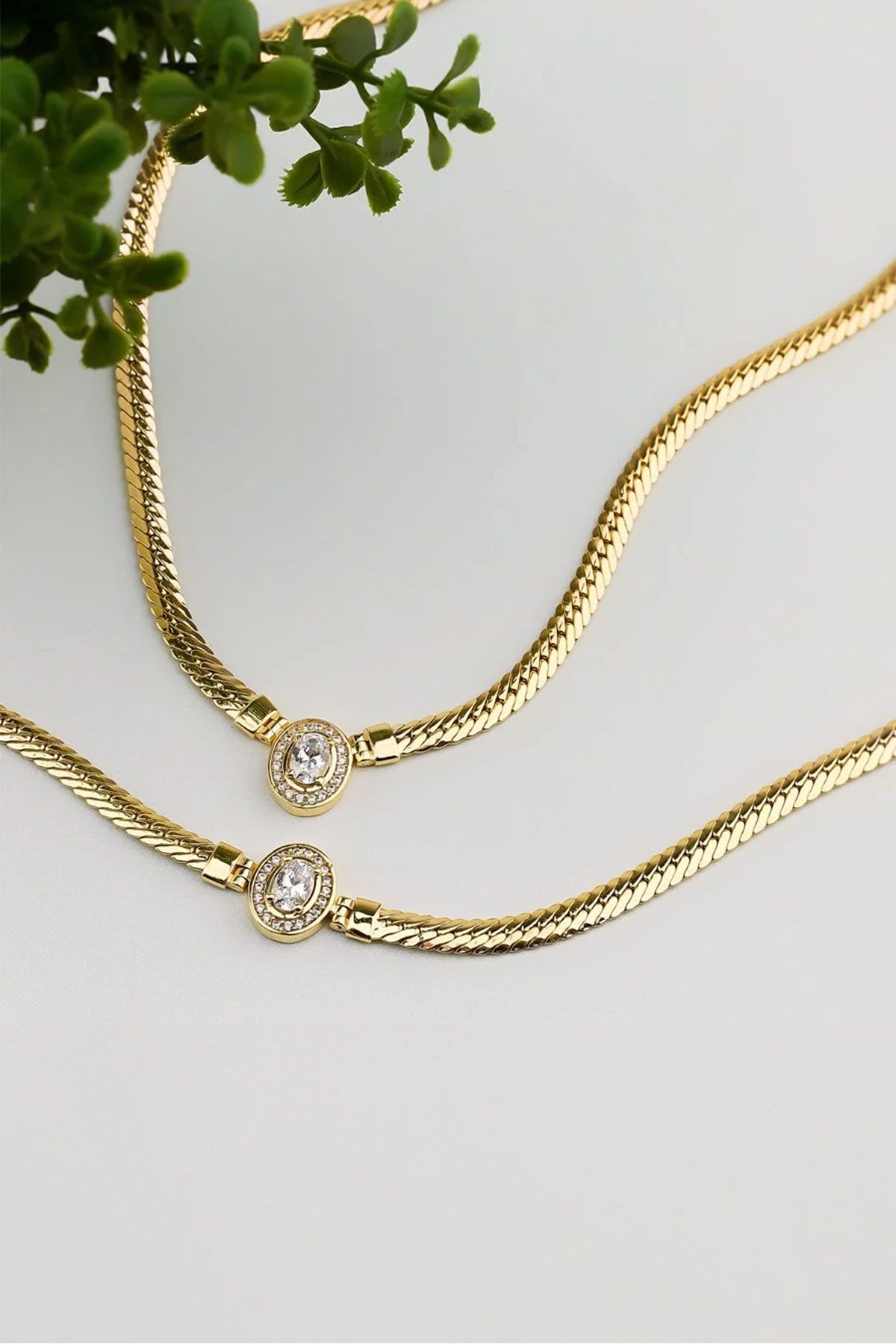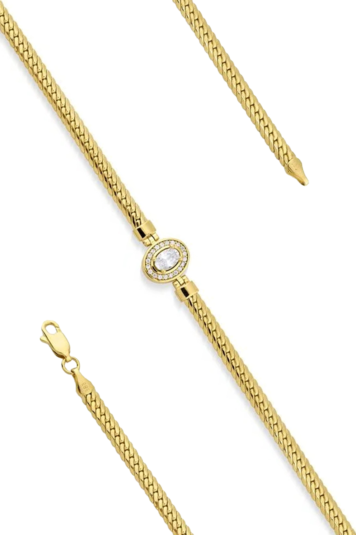 14 Ayar Altın Oval Taşlı Balıksırtı Bileklik