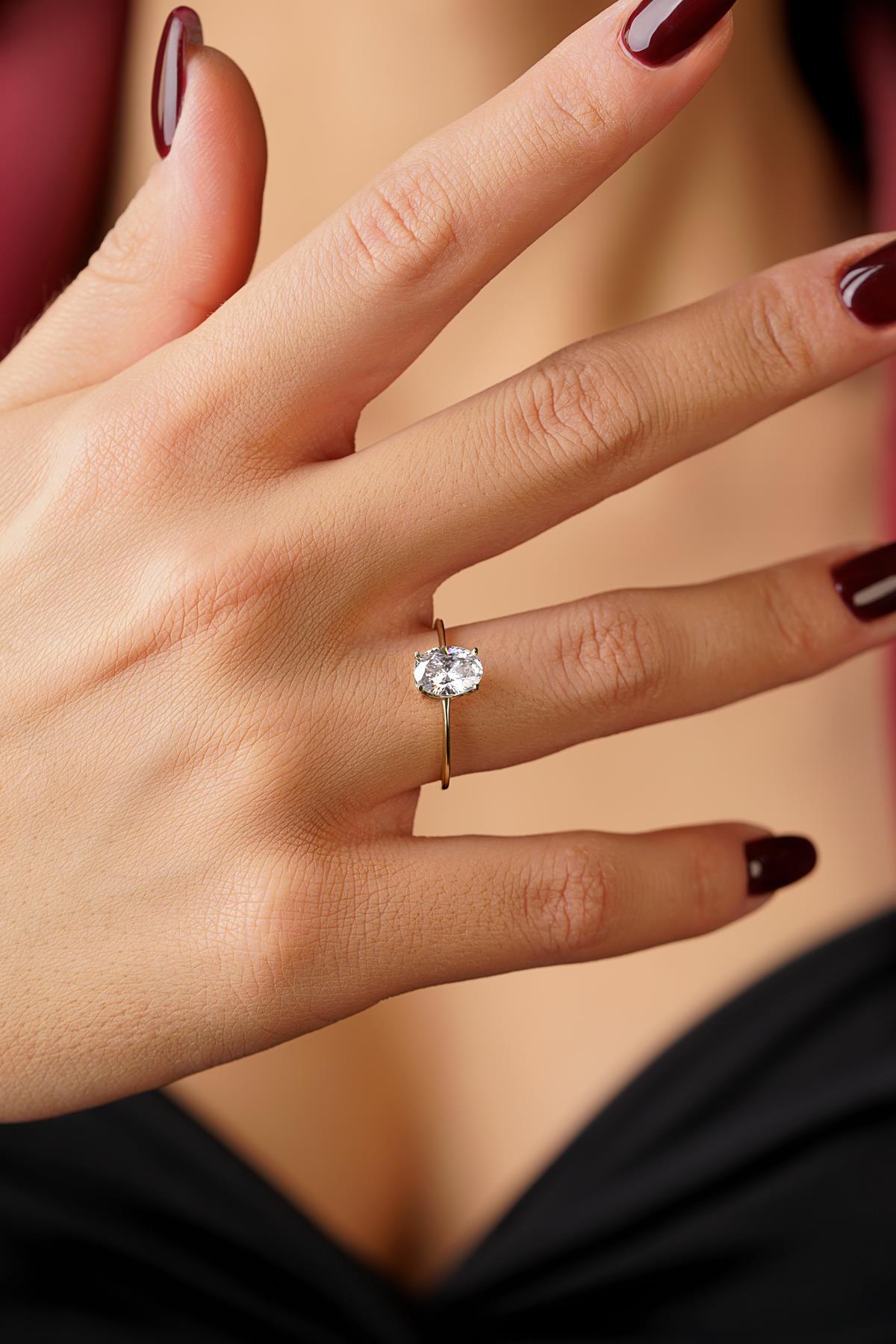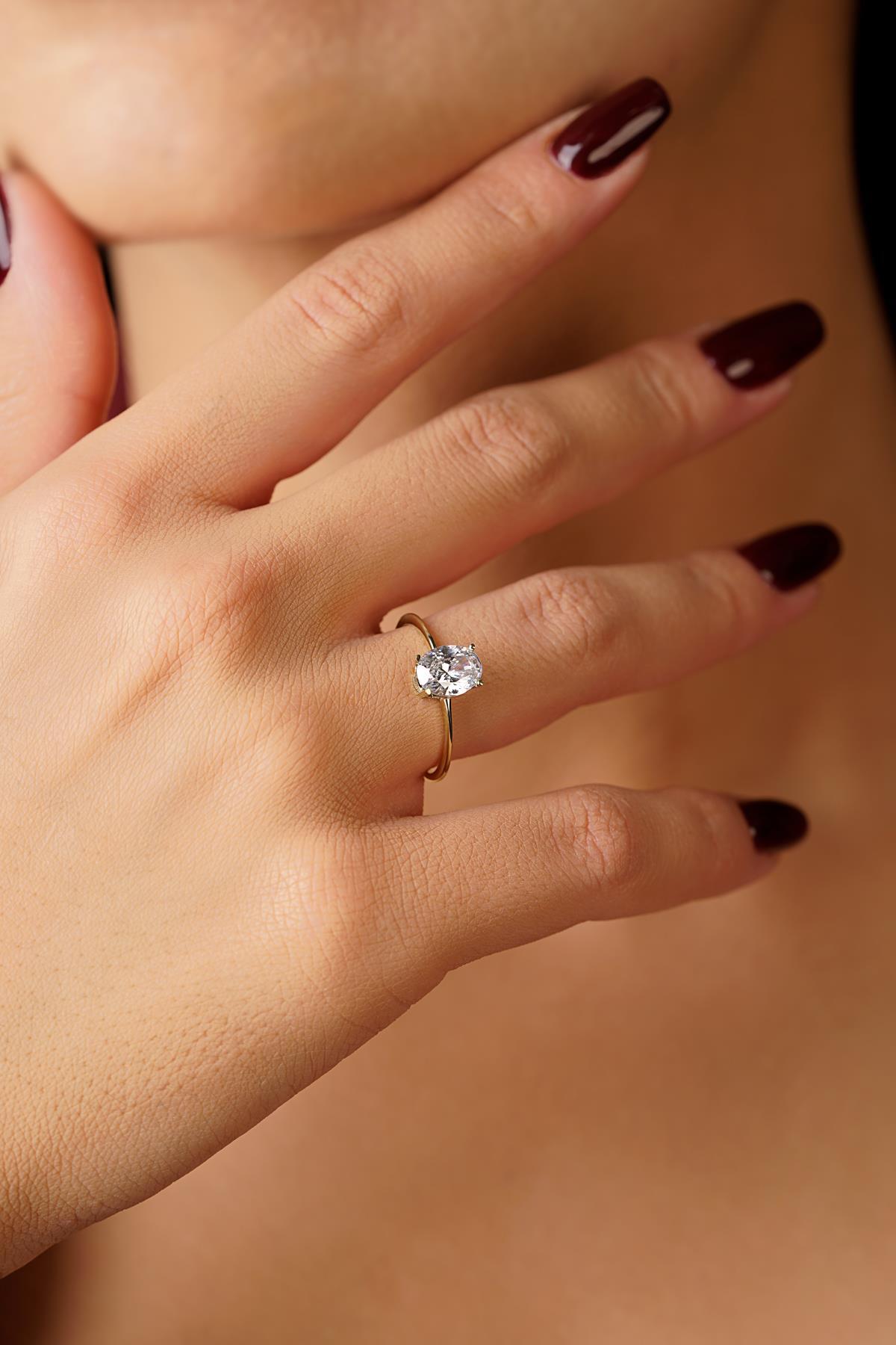 14 Ayar Altın Yarım Tur Taşlı Tek Taş Yüzük