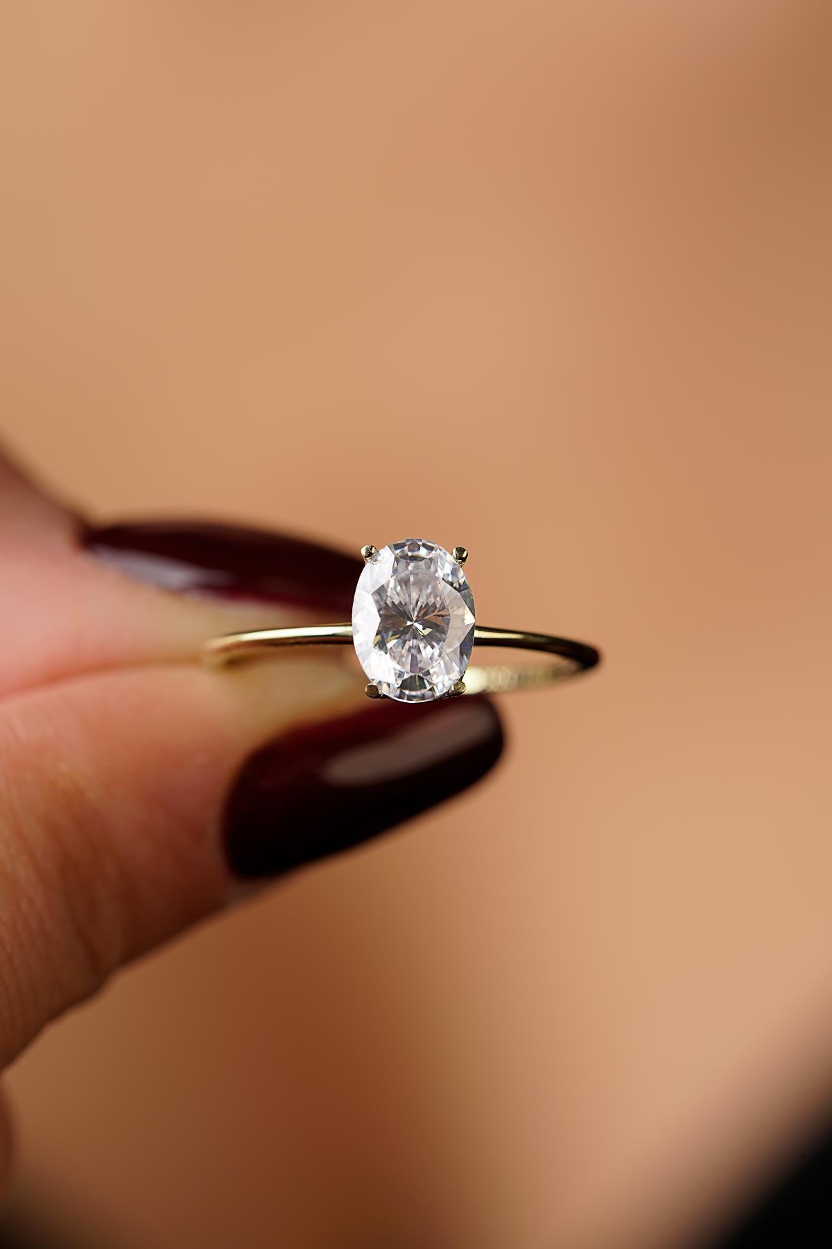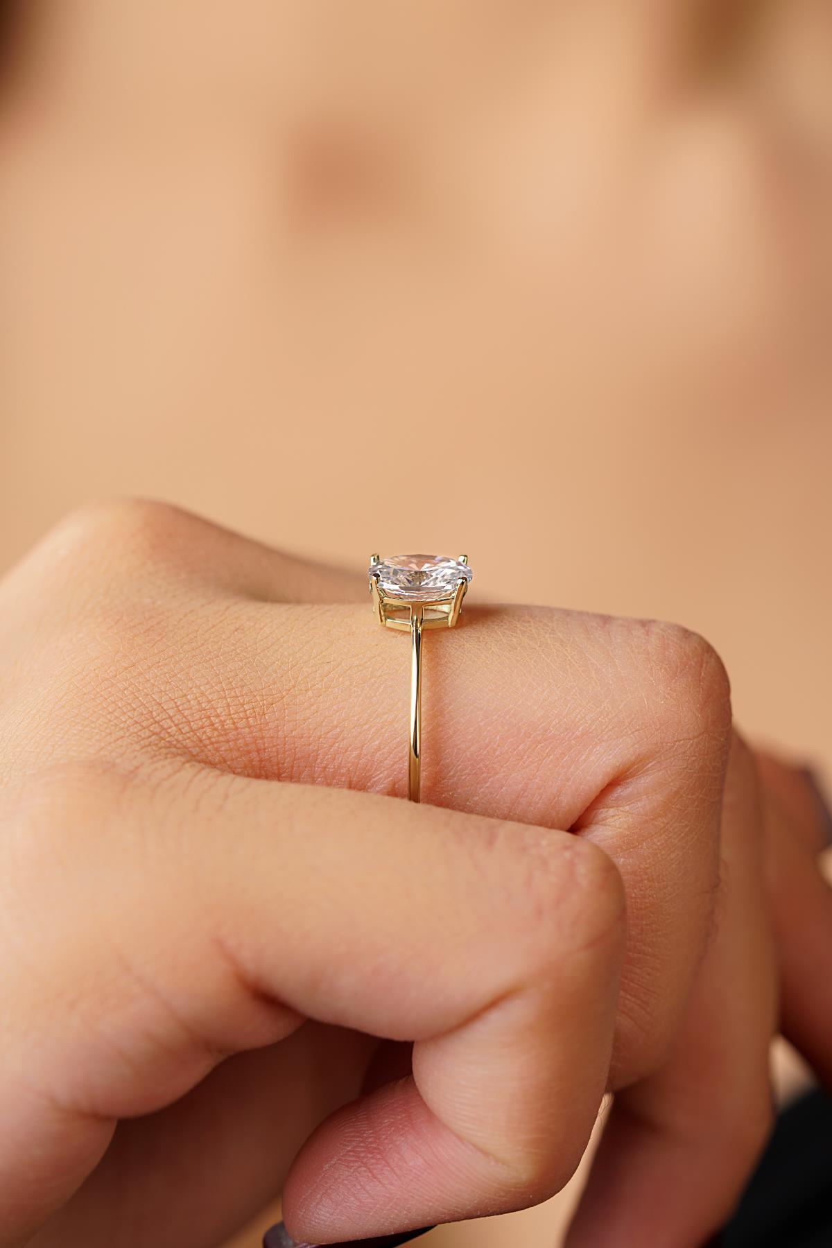 14 Ayar Altın Işıltılı Tek Taş Yüzük