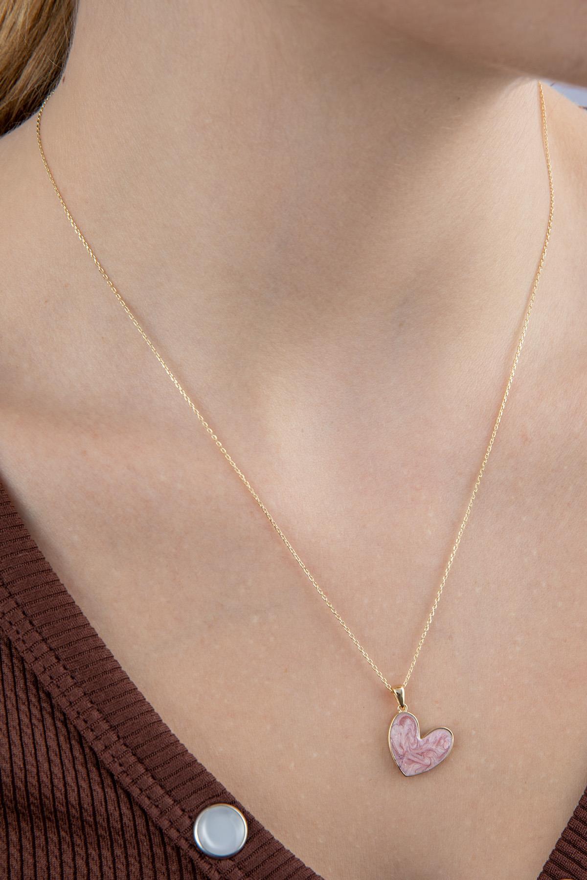 14 Ayar Altın Pembe Mineli Kalp Kolye