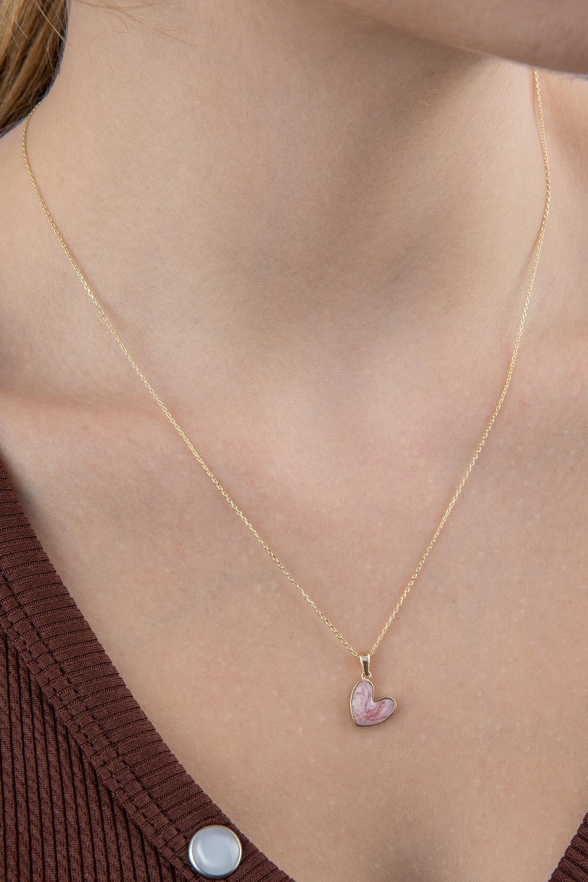 14 Ayar Altın Pembe Mineli Mini Kalp Kolye