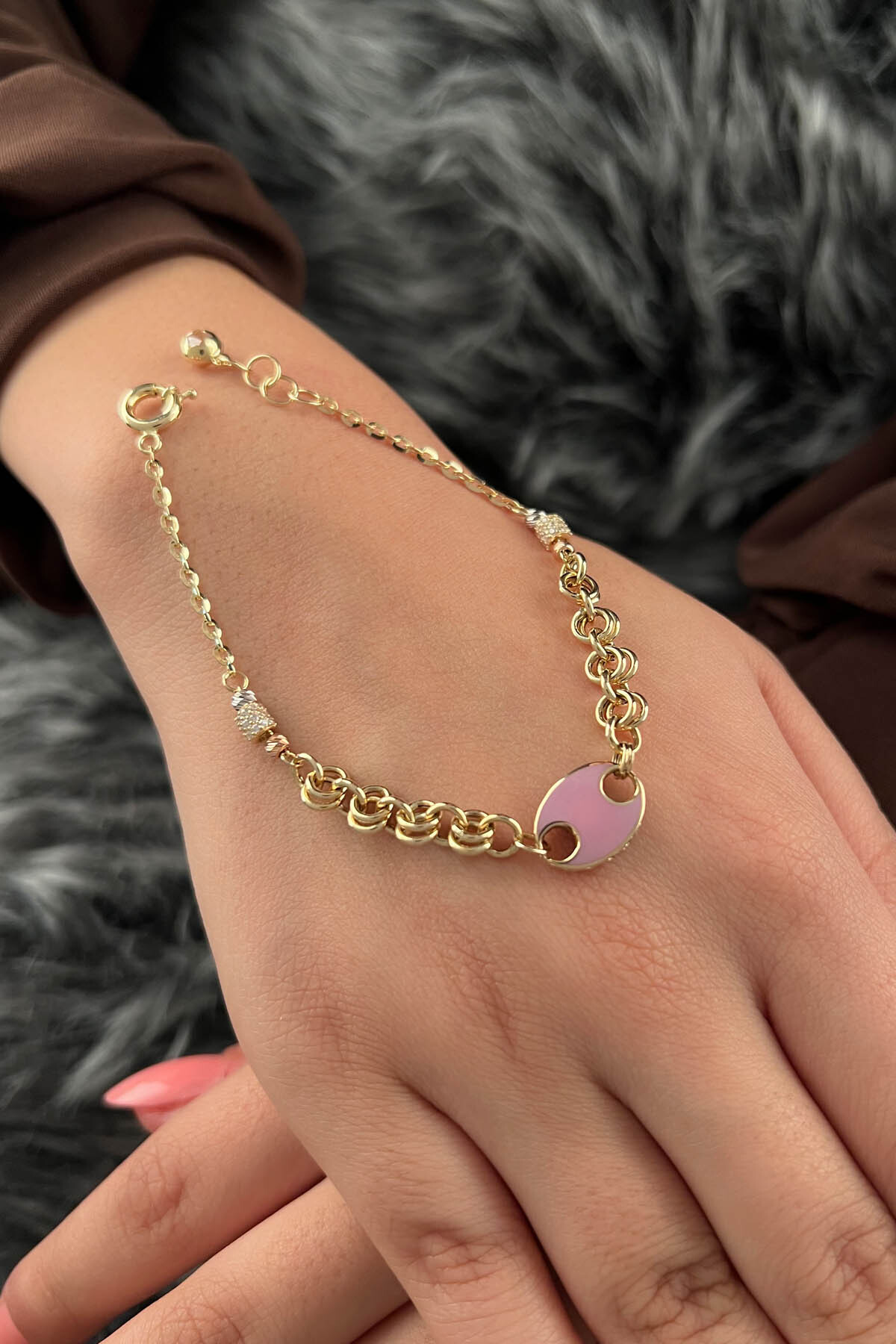 14 Ayar Altın Pembe Obje Detaylı Doch Zincir Bileklik