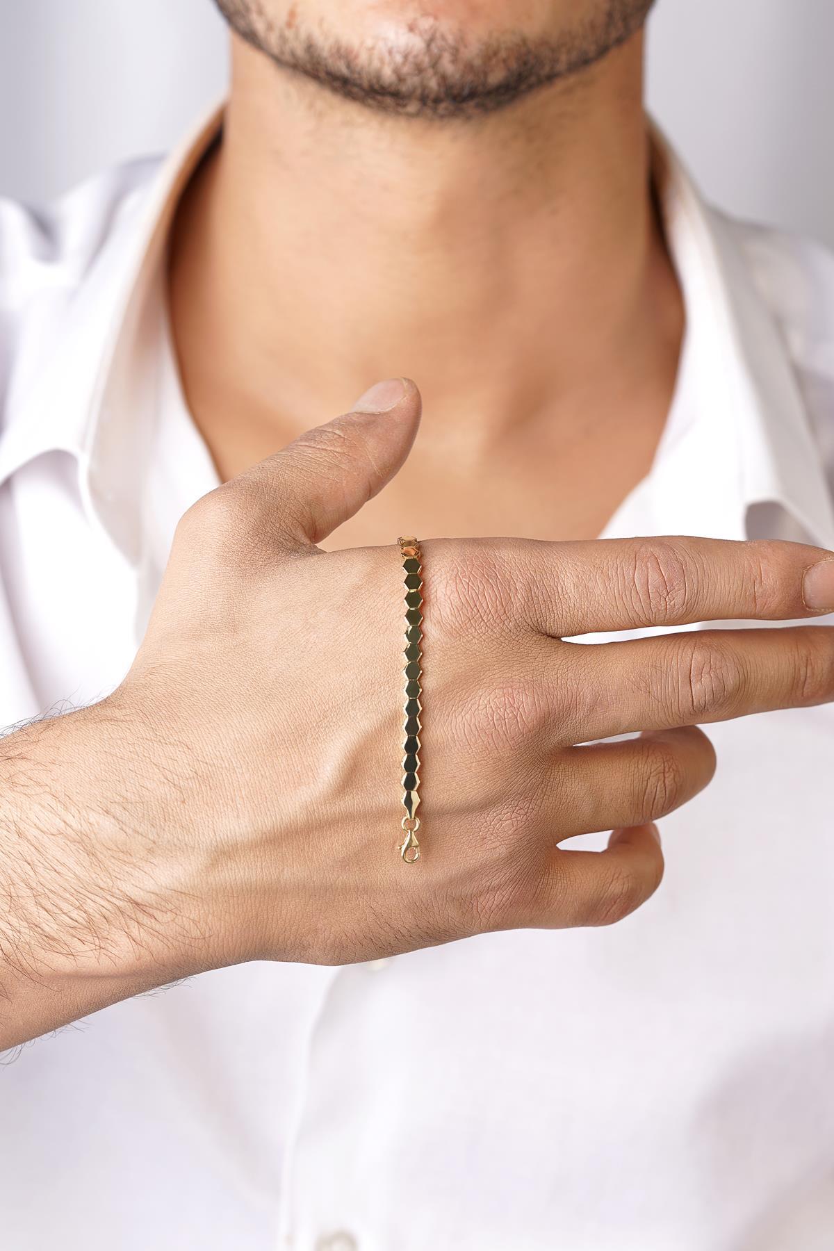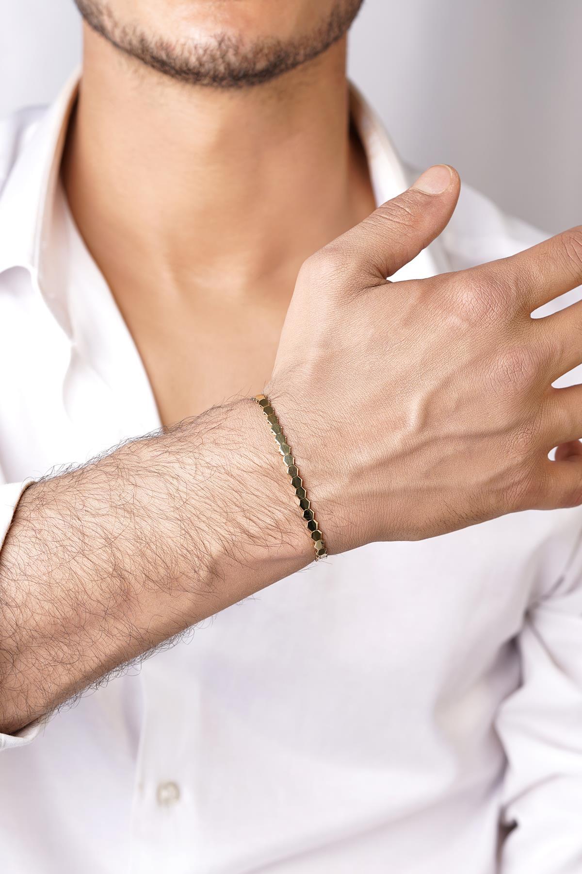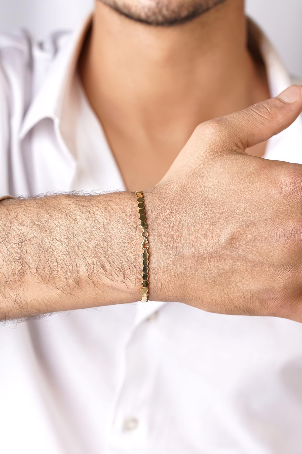 14 Ayar Altın Petek Modeli Erkek Bileklik