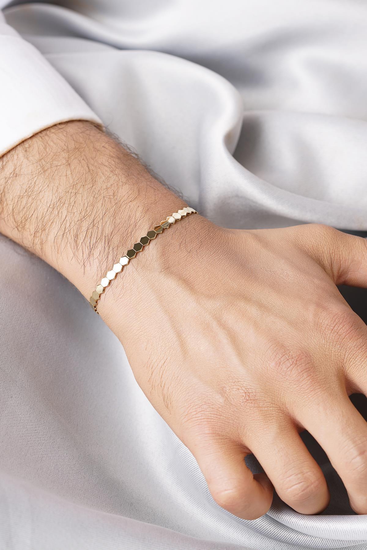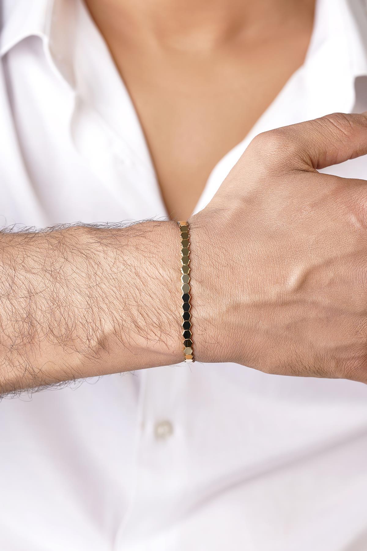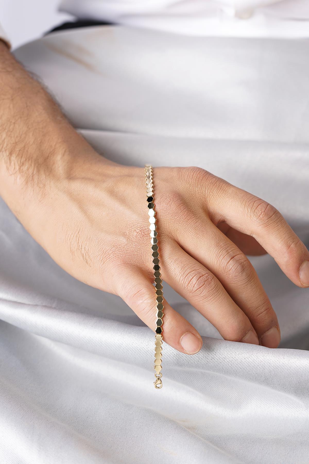14 Ayar Altın Petek Modeli Erkek Bileklik