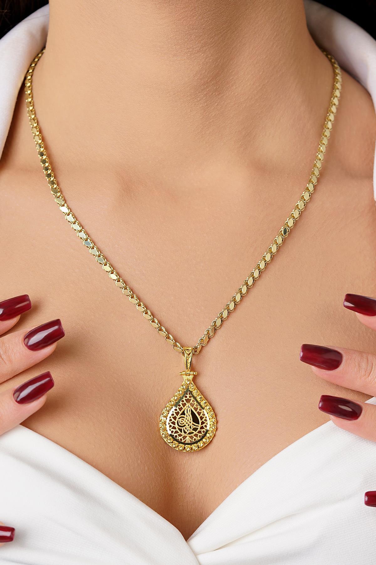 14 Ayar Altın Pullu Zincirli Tuğra Uçlu Kolye