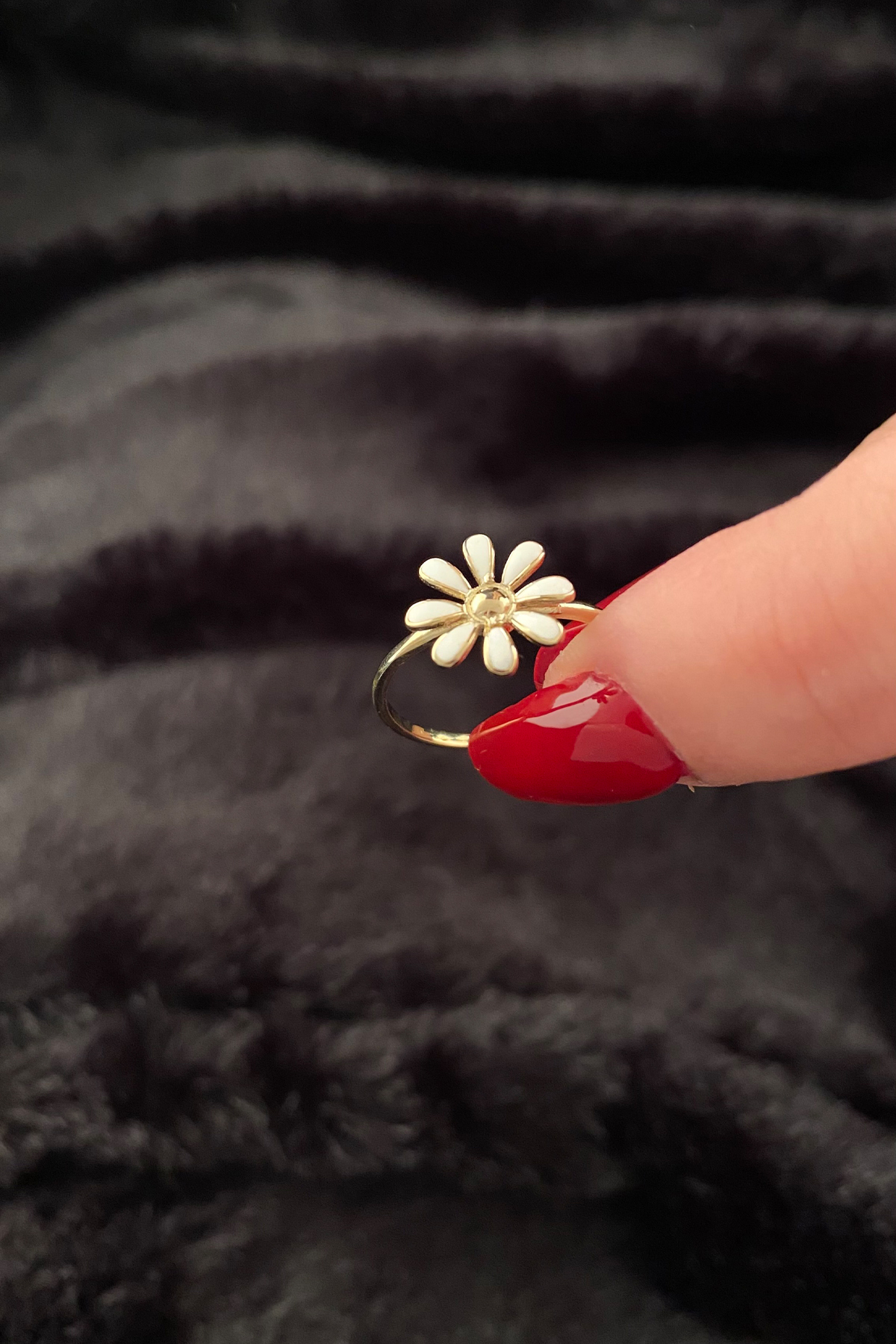 14 Ayar Altın Beyaz Lotus Yüzük 2