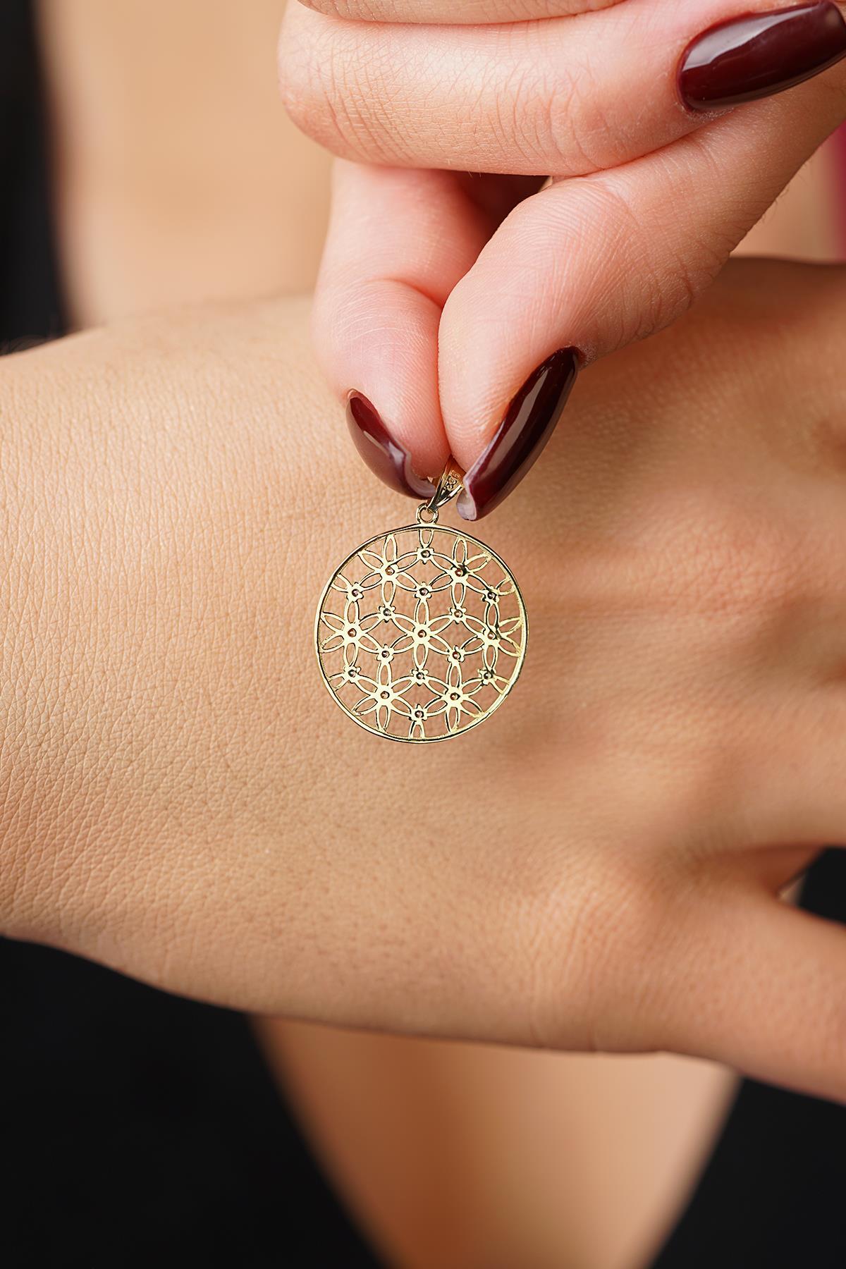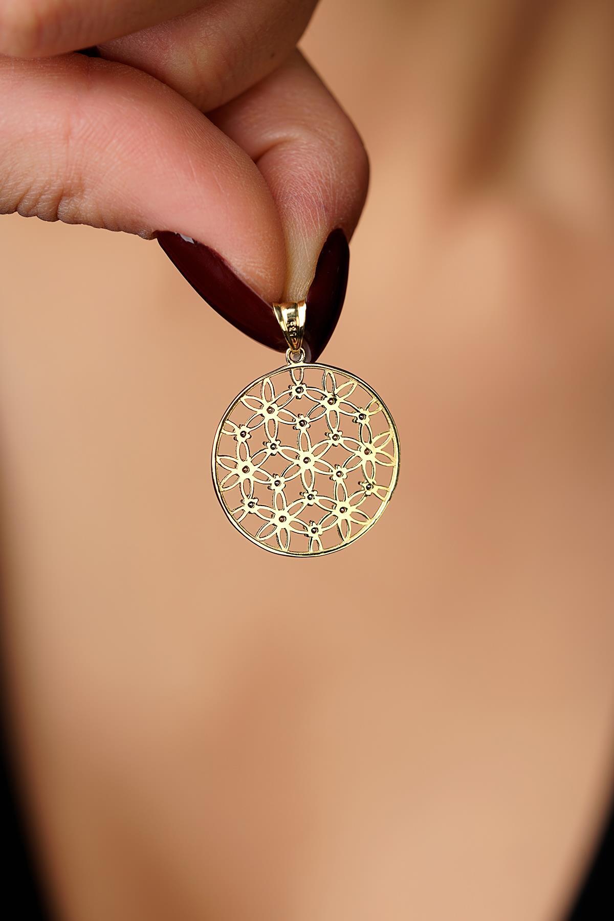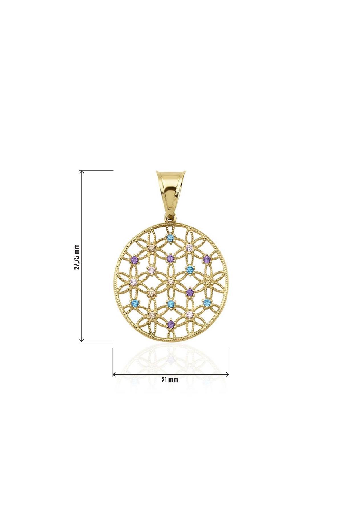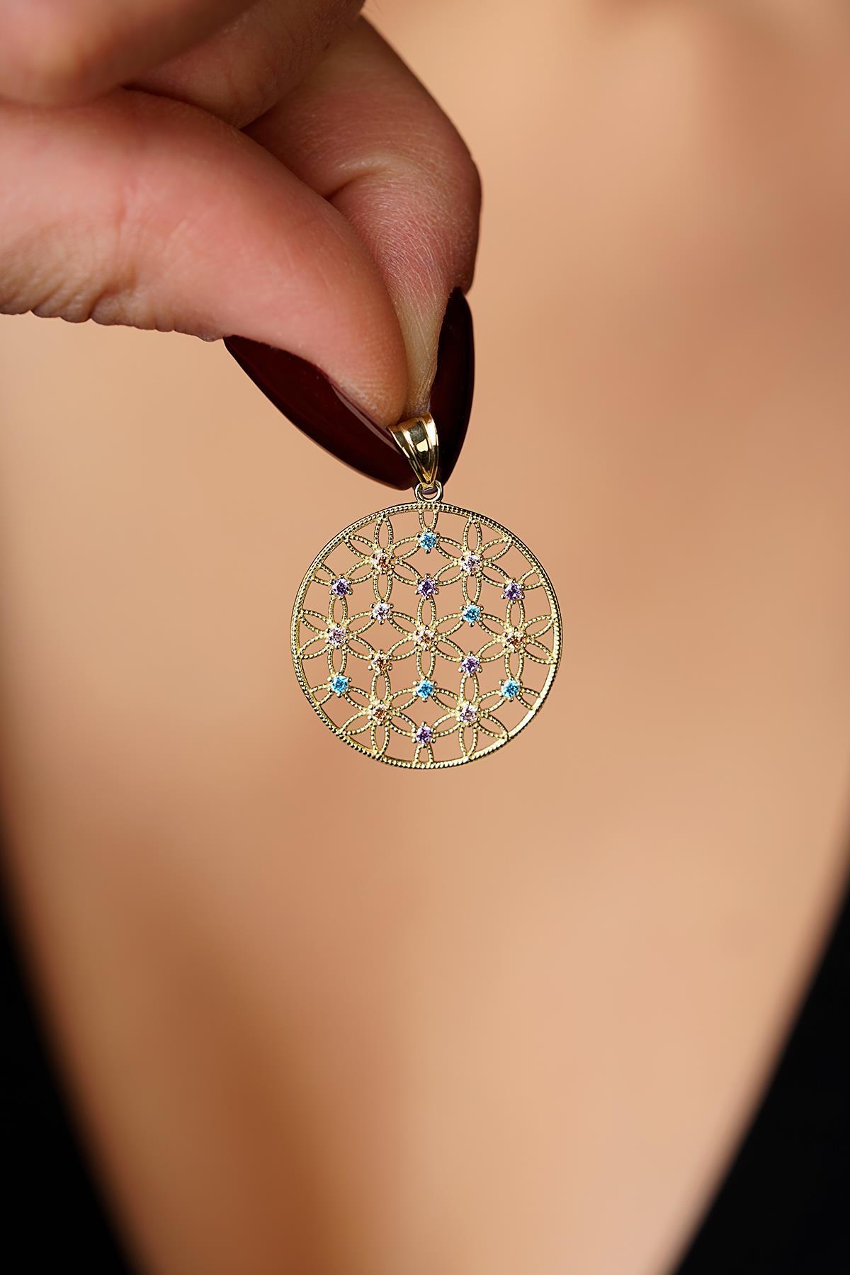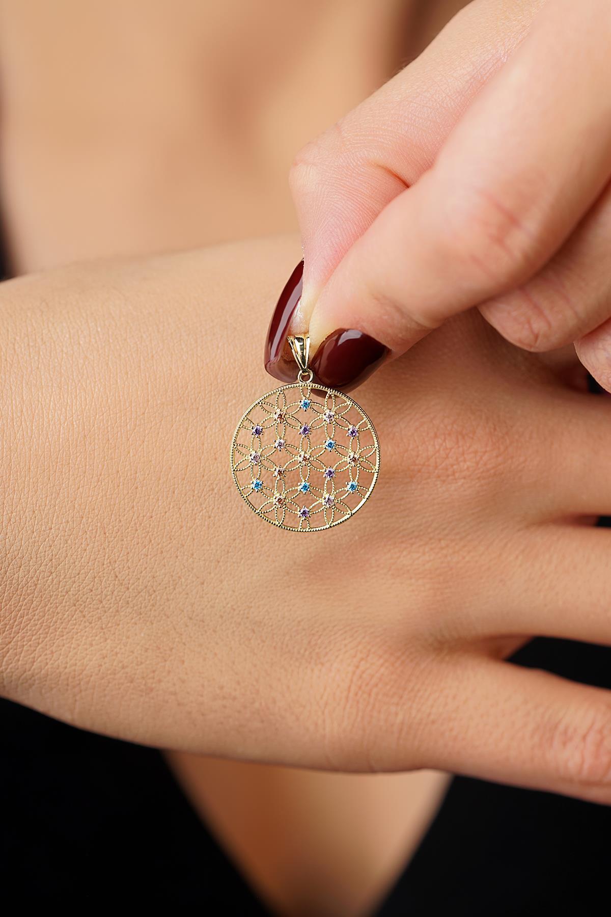14 Ayar Altın Renkli Taş Detaylı Yaşam Çiçeği Kolye Ucu Küçük