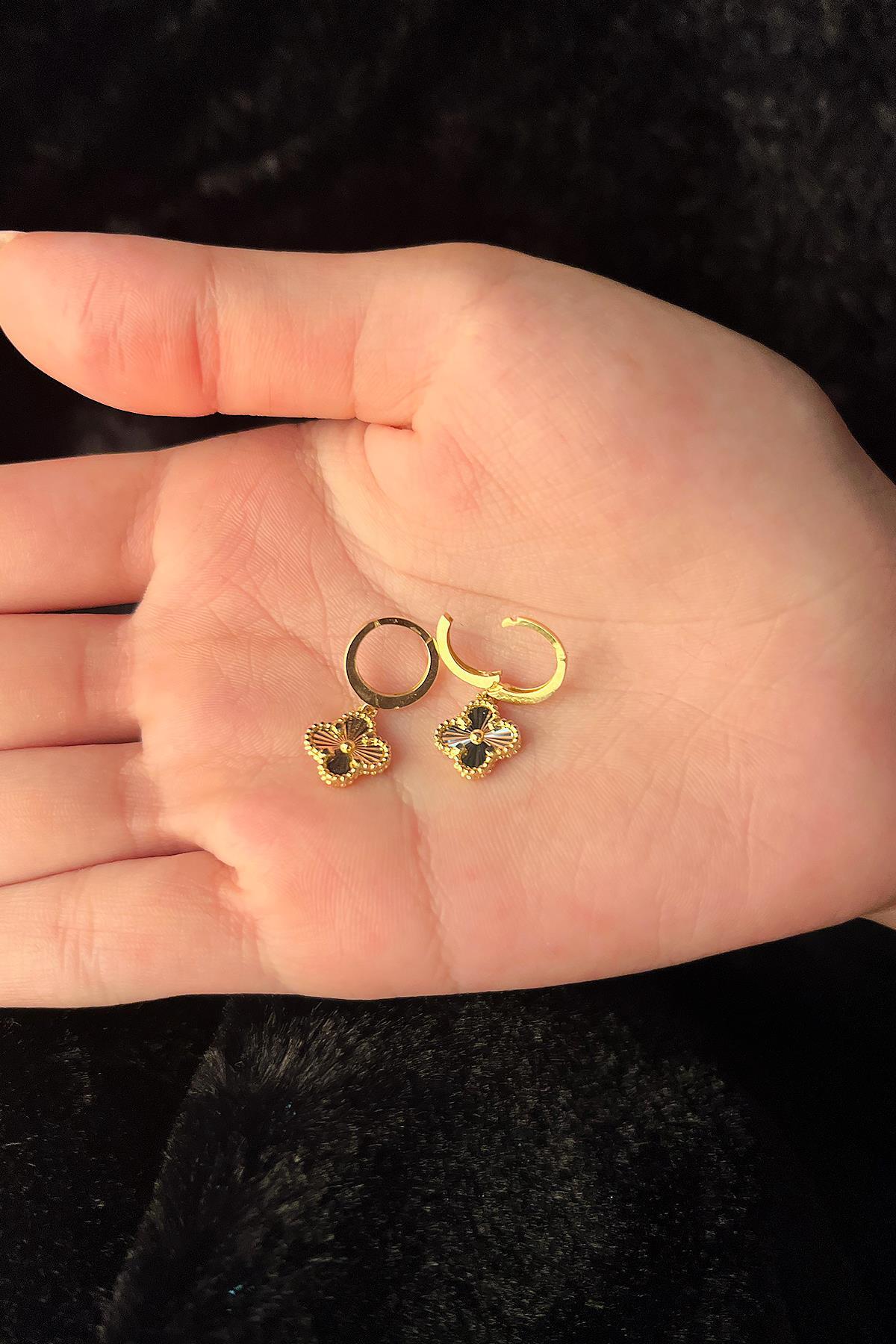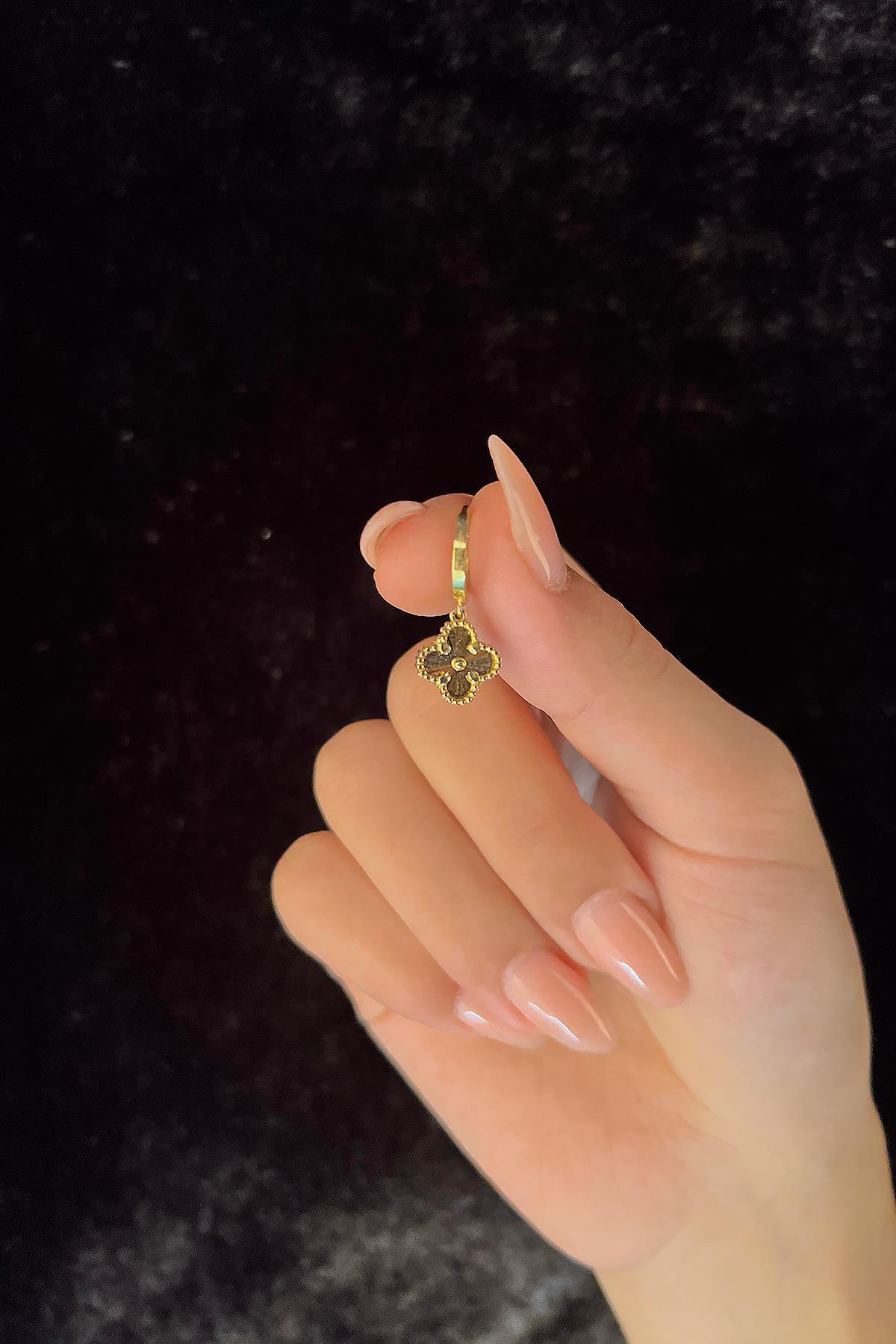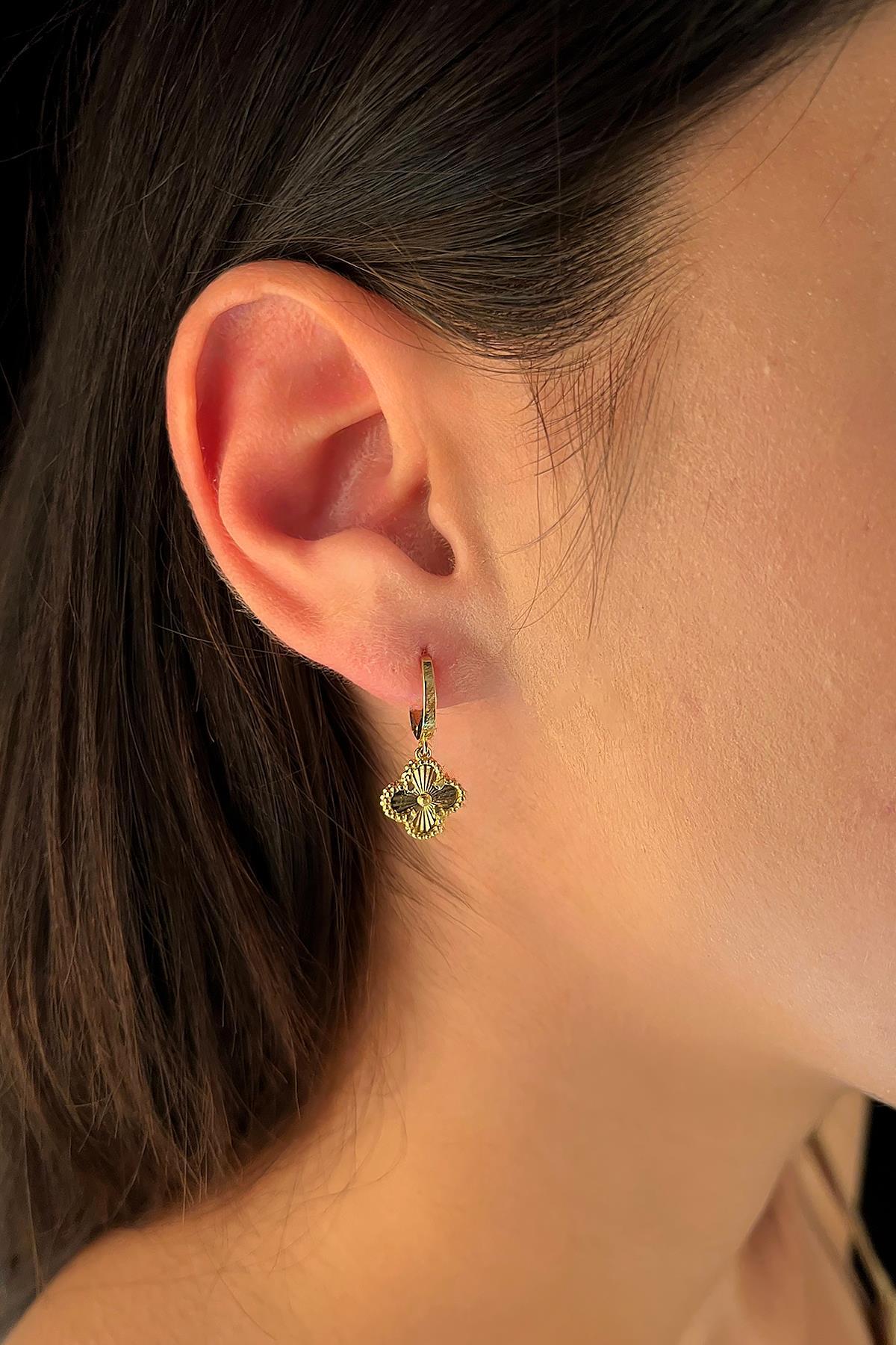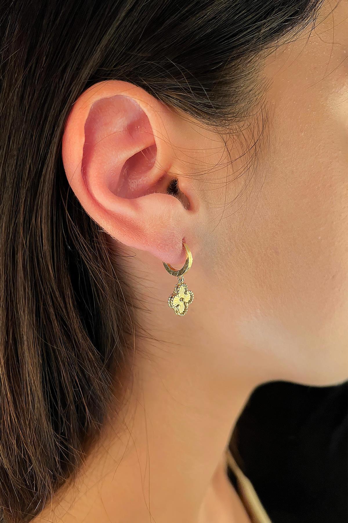 14 Ayar Altın Halka Sallantılı Yonca Küpe