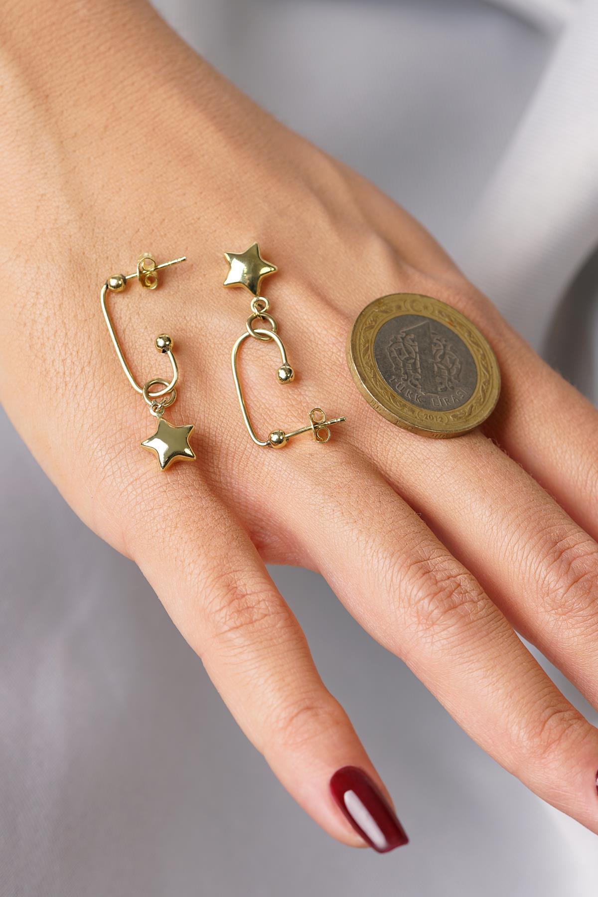 14 Ayar Altın Sallantılı Yıldız Küpe