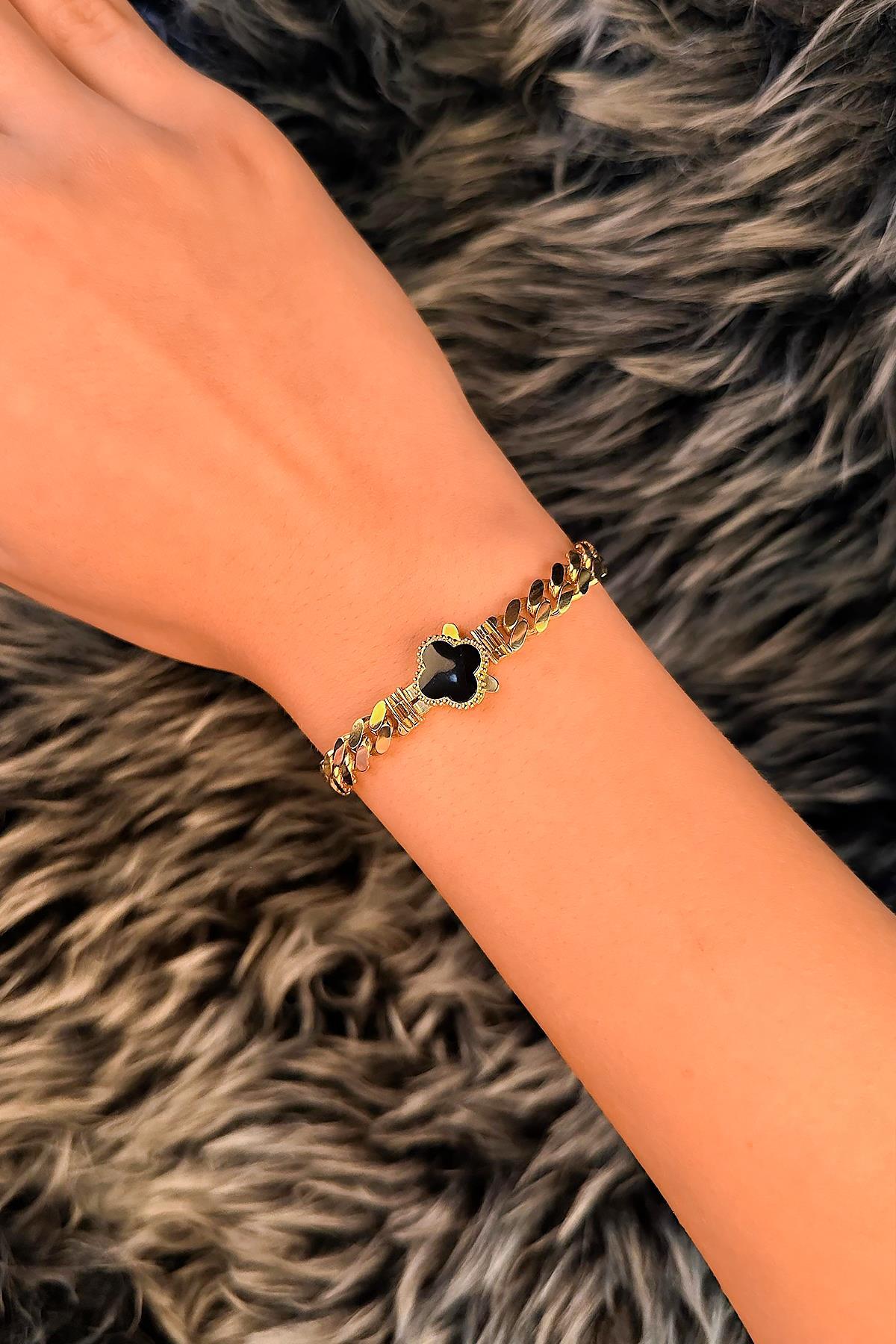 14 Ayar Altın Şans Yoncası Detaylı Gurmet Bileklik