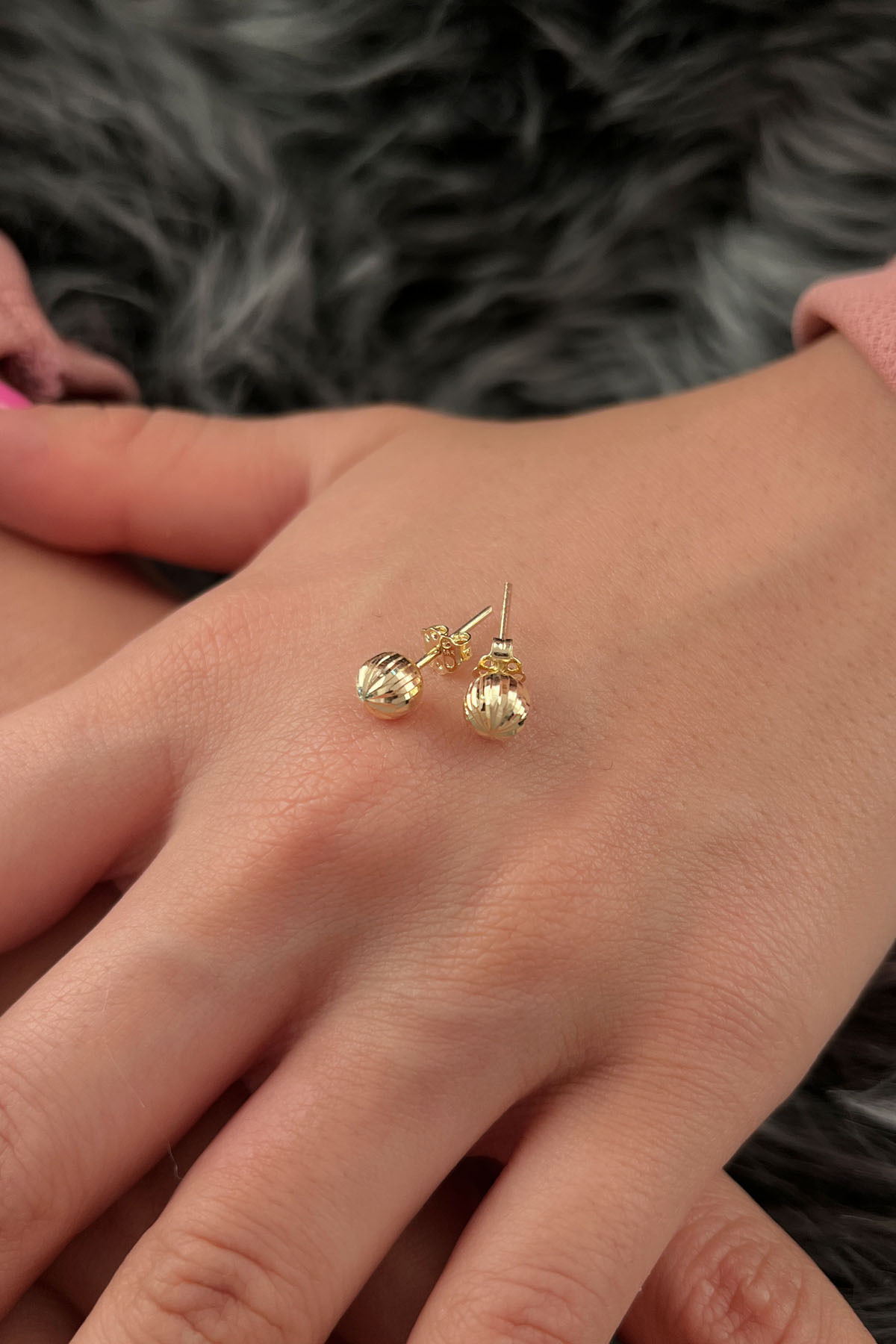 14 Ayar Altın Sarı Işıltılı Top Küpe Orta
