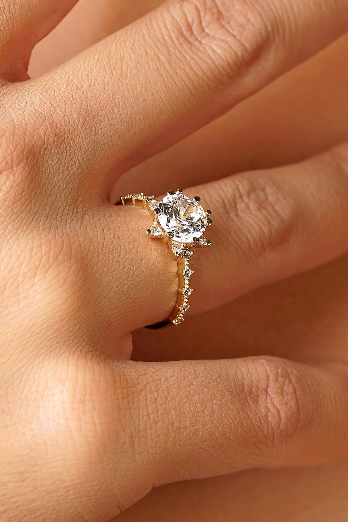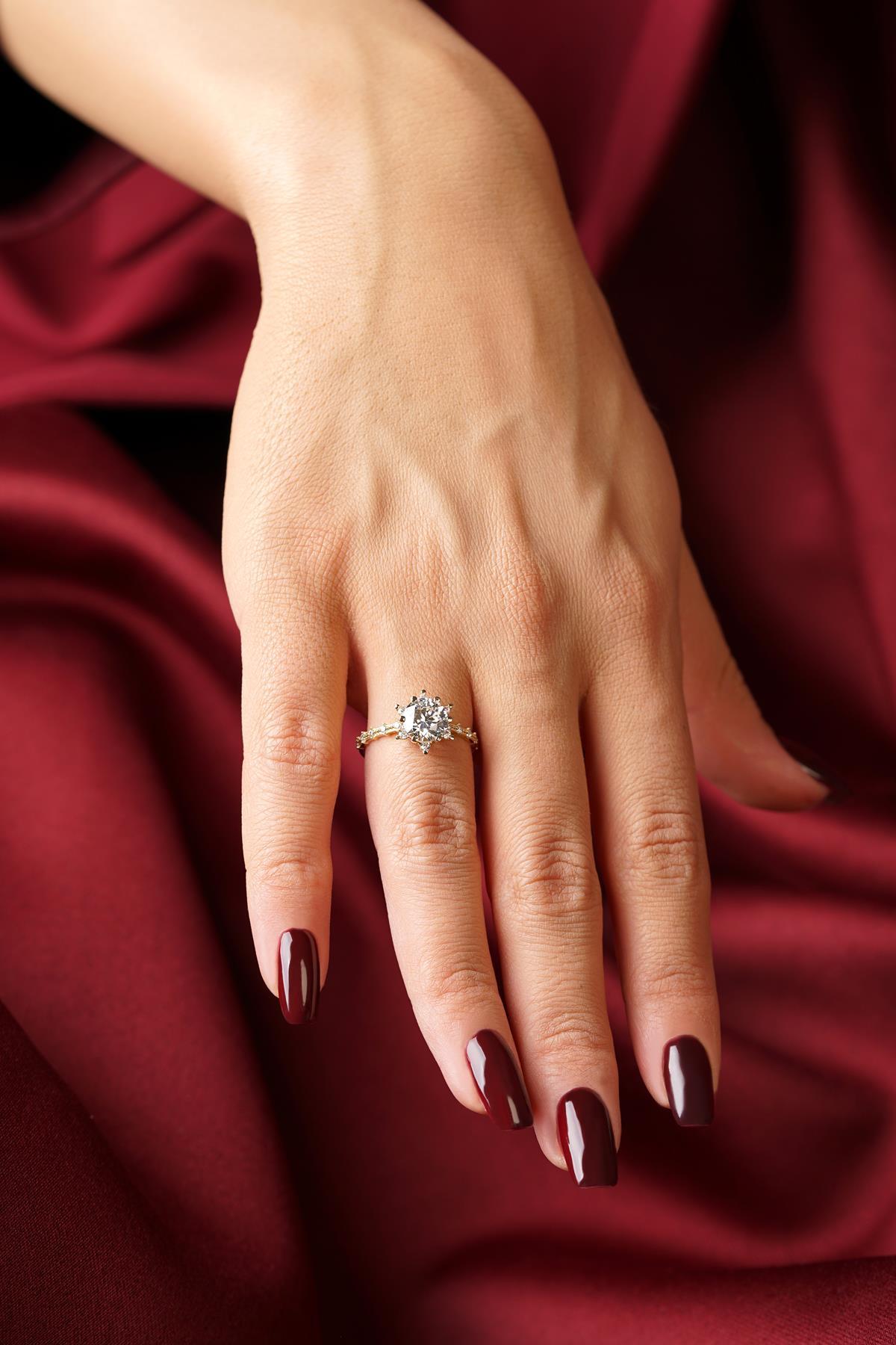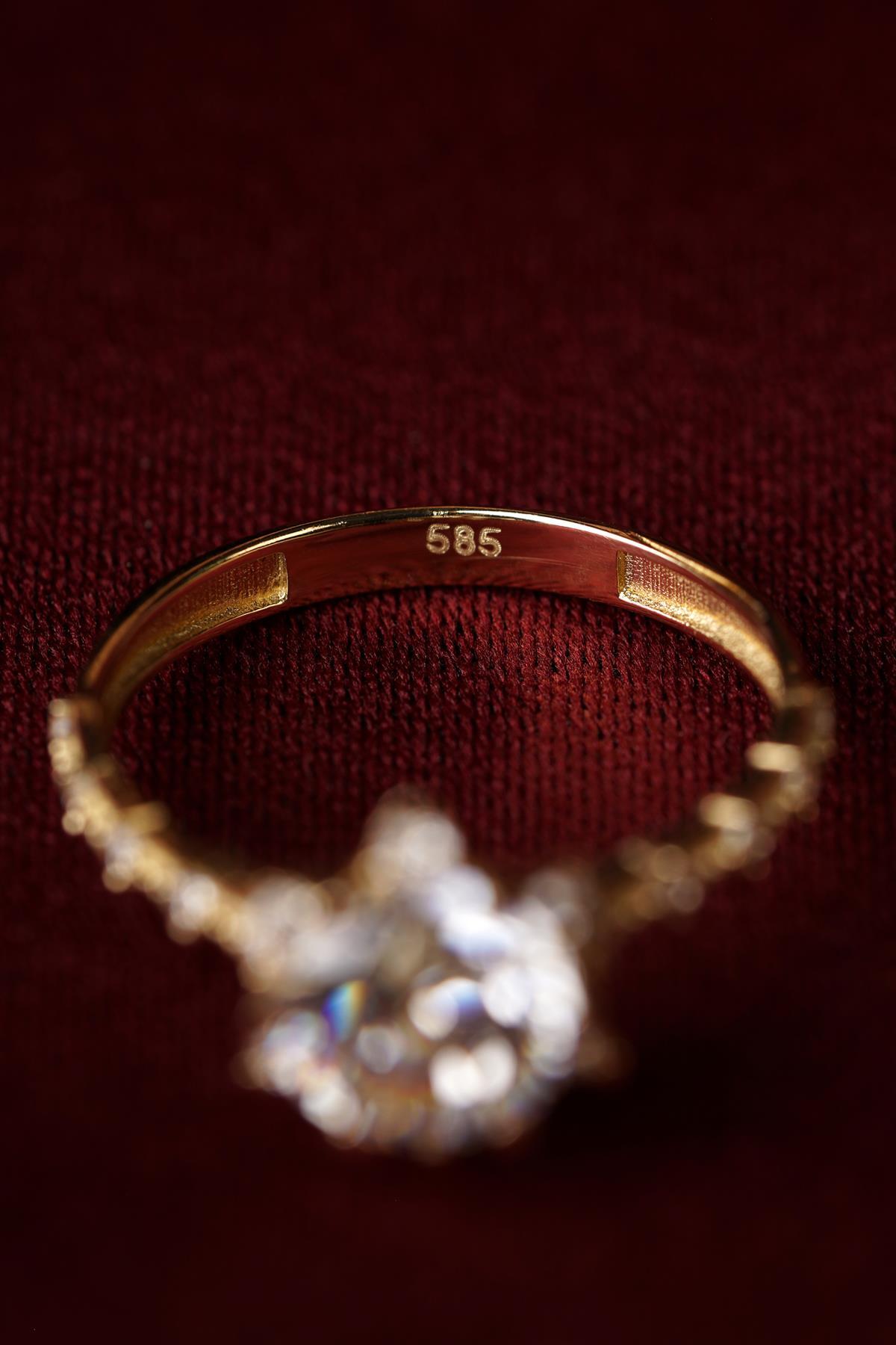 14 Ayar Altın Işıltılı Tek Taş Yüzük