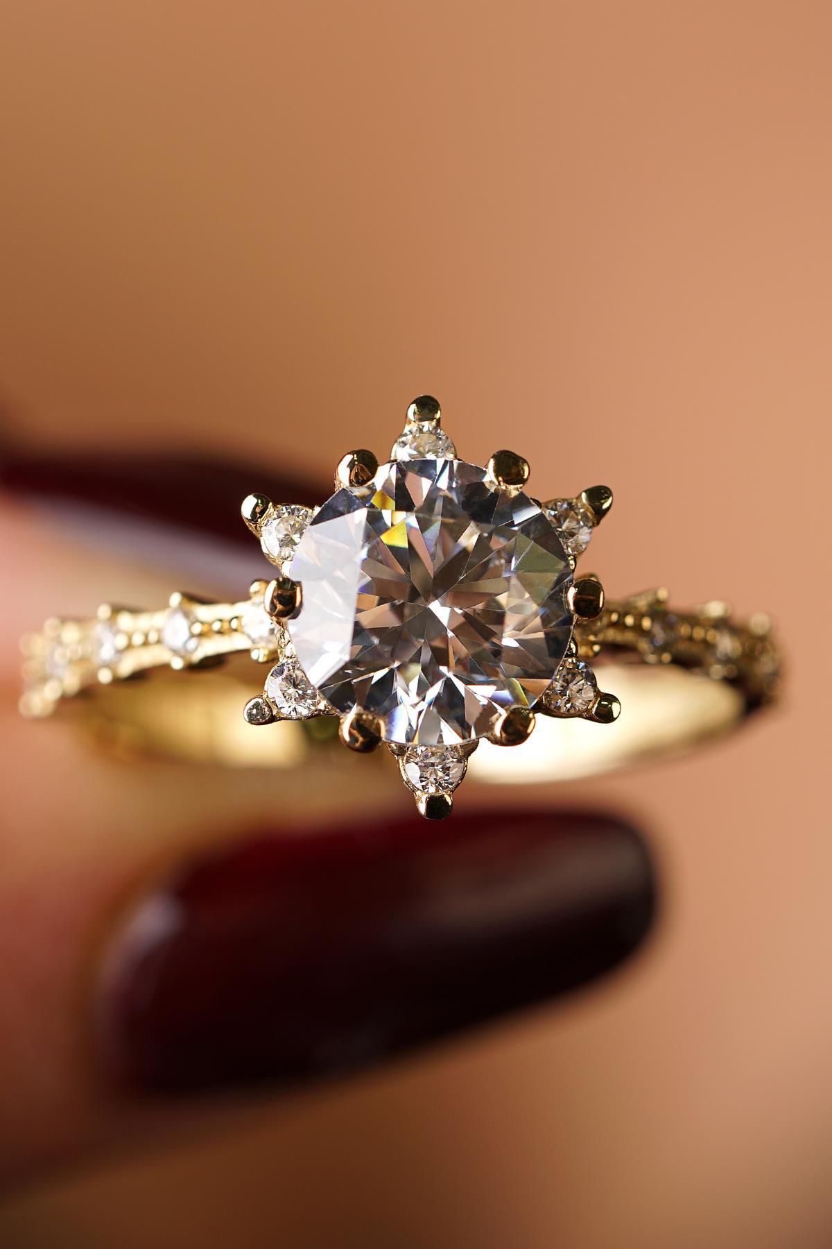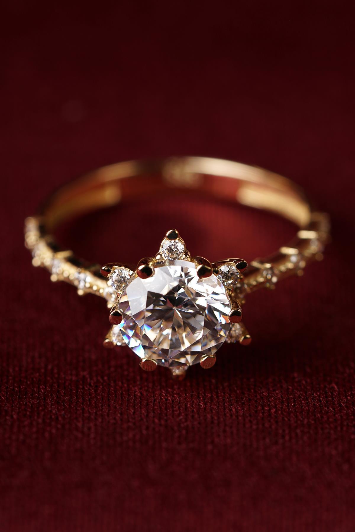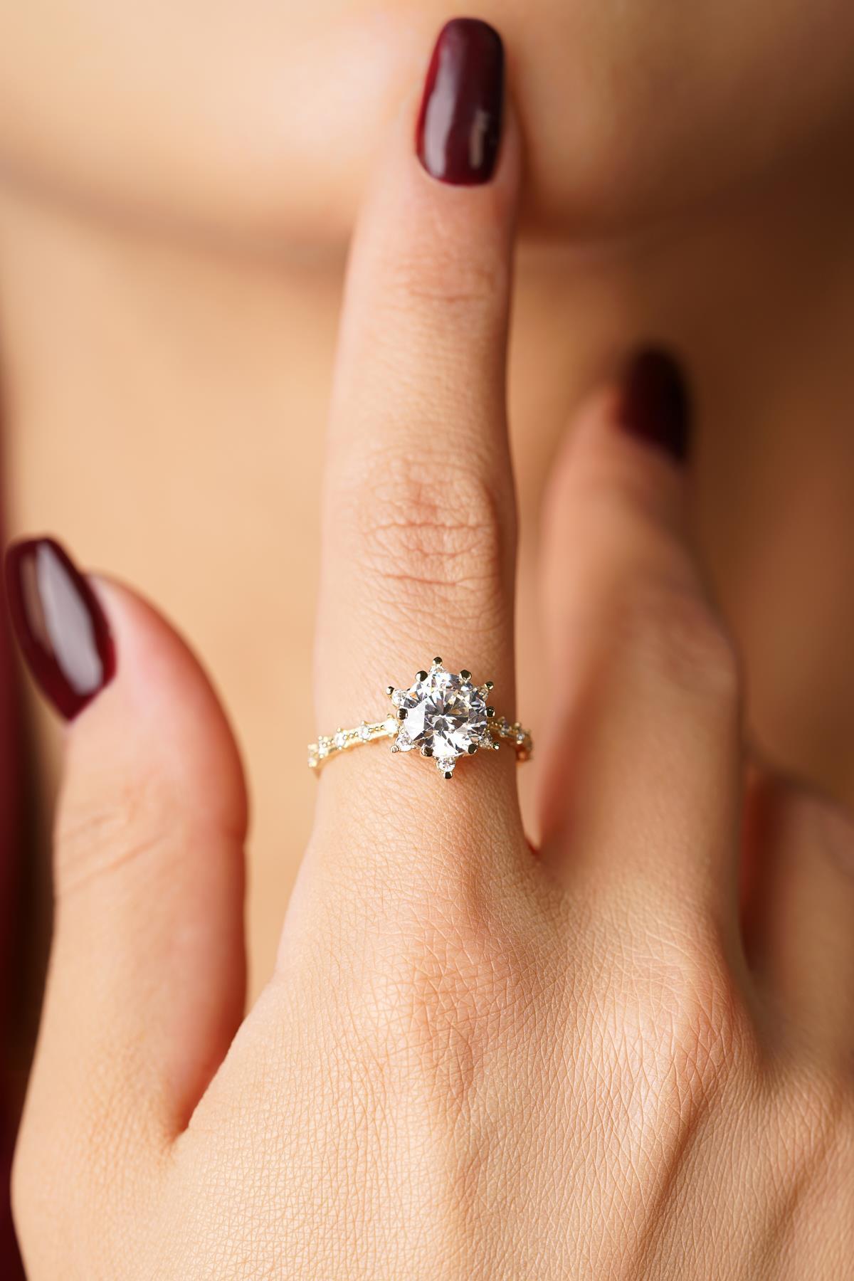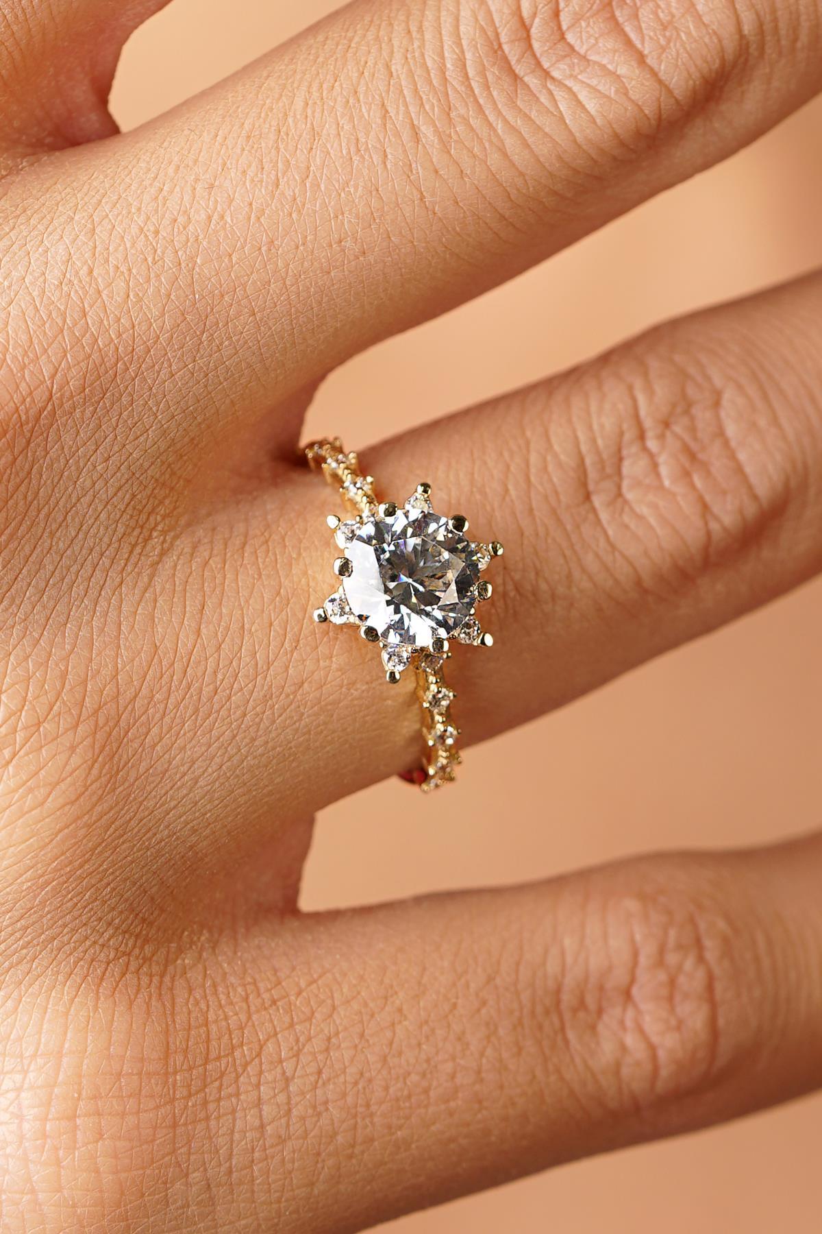 14 Ayar Altın Işıltılı Tek Taş Yüzük