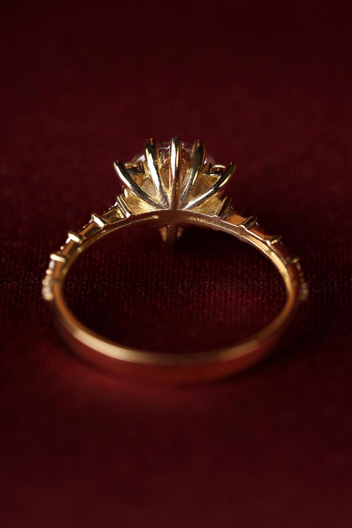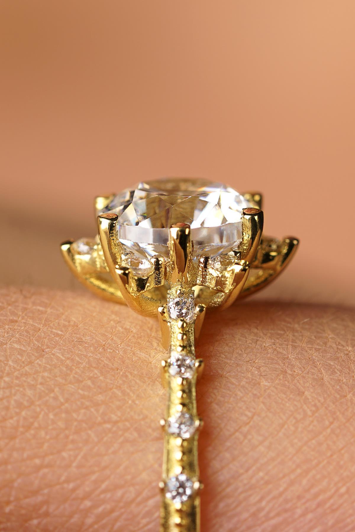 14 Ayar Altın Sarı Lotus Tektaş Yüzük