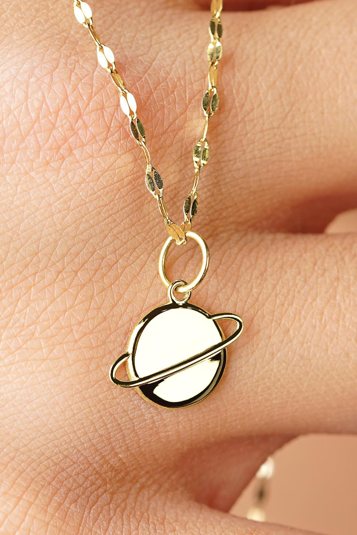 14 Ayar Altın Satürn Gezegen Detaylı Aynalı Zincir Kolye