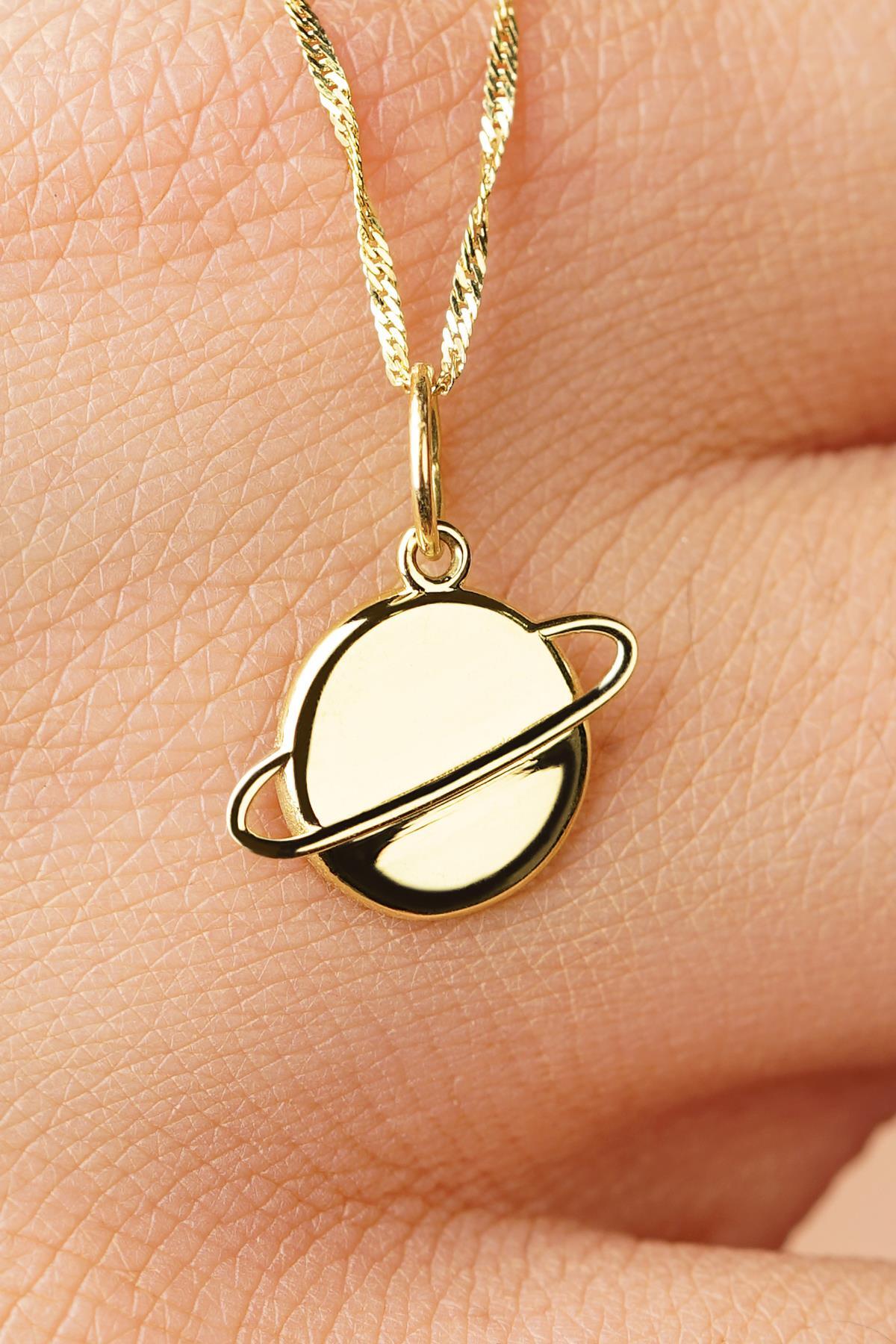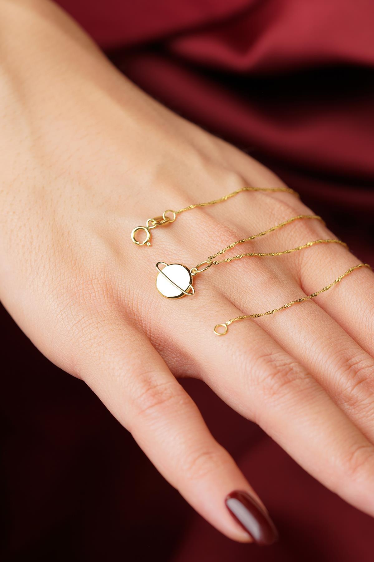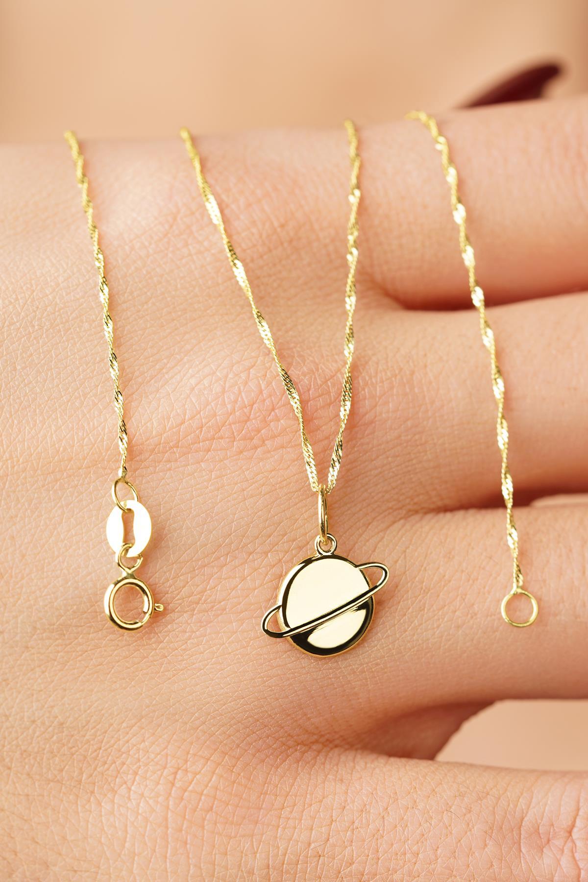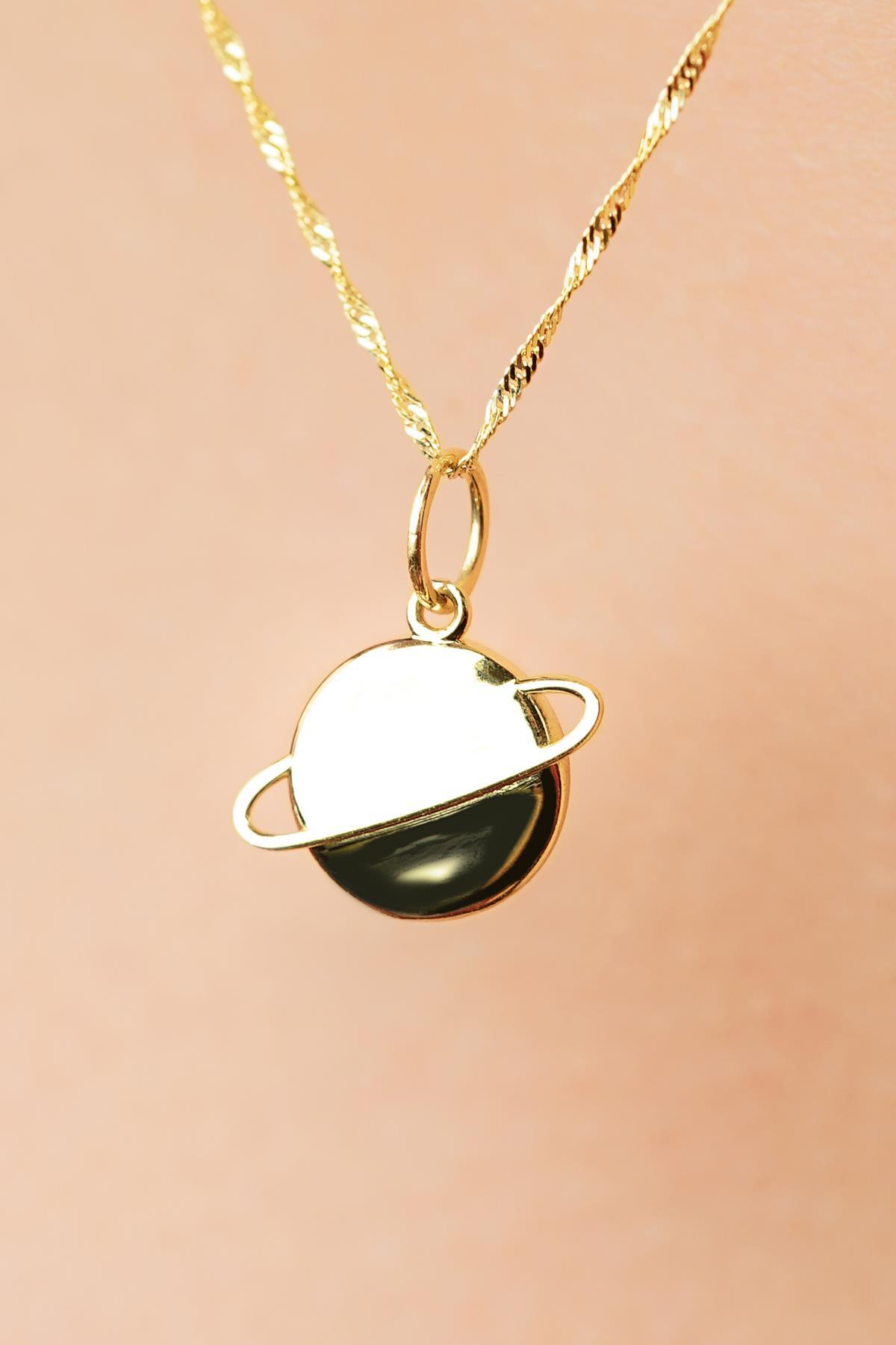 14 Ayar Altın Satürn Gezegen Detaylı Singapur Zincir Kolye