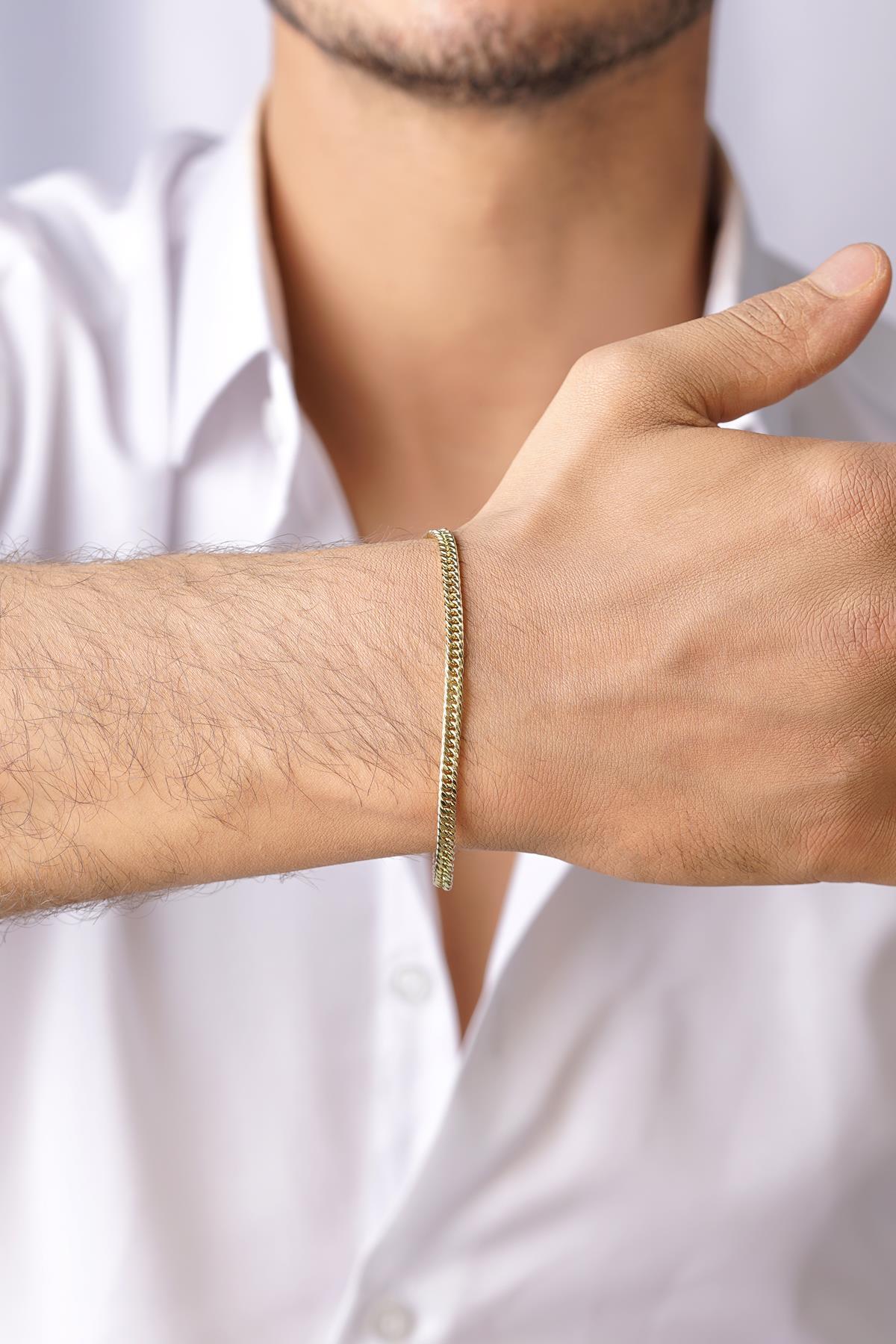 14 Ayar Altın Sık Gurmet Zincir Erkek Bileklik