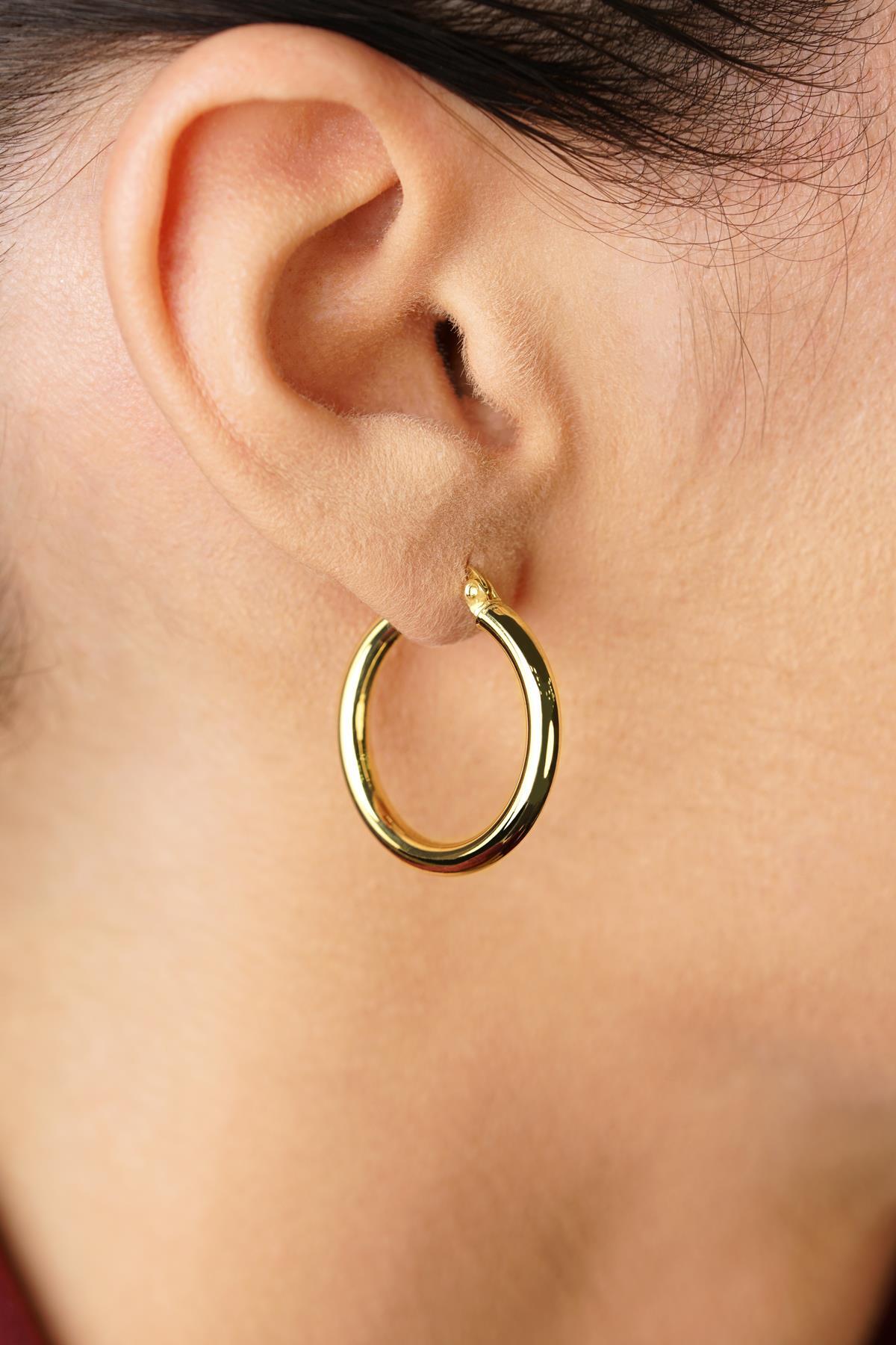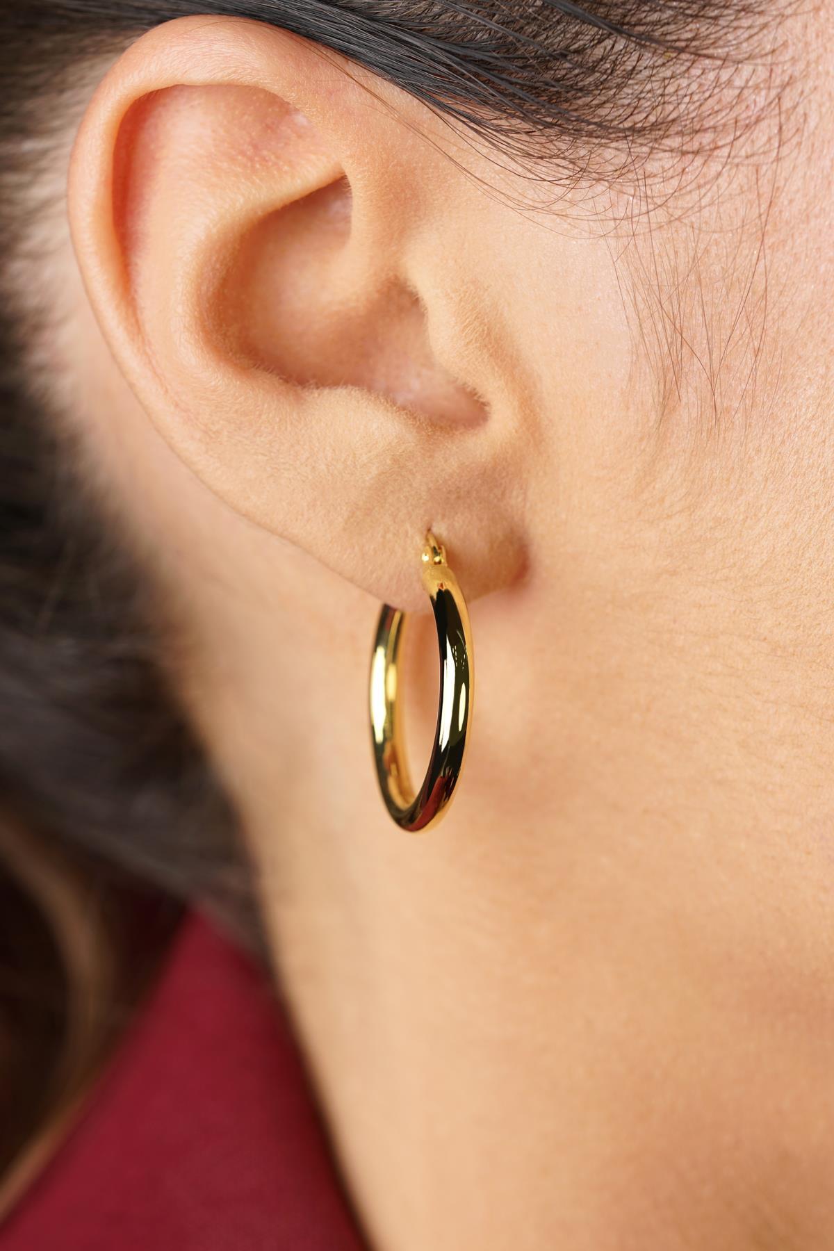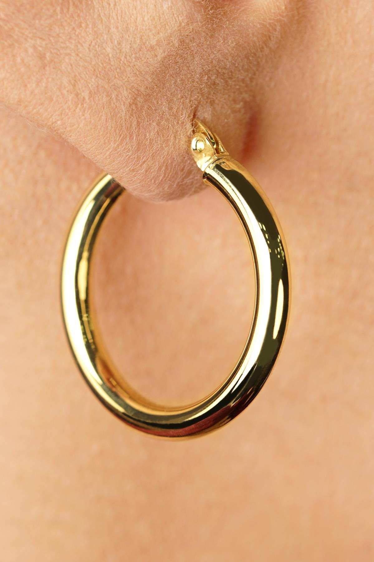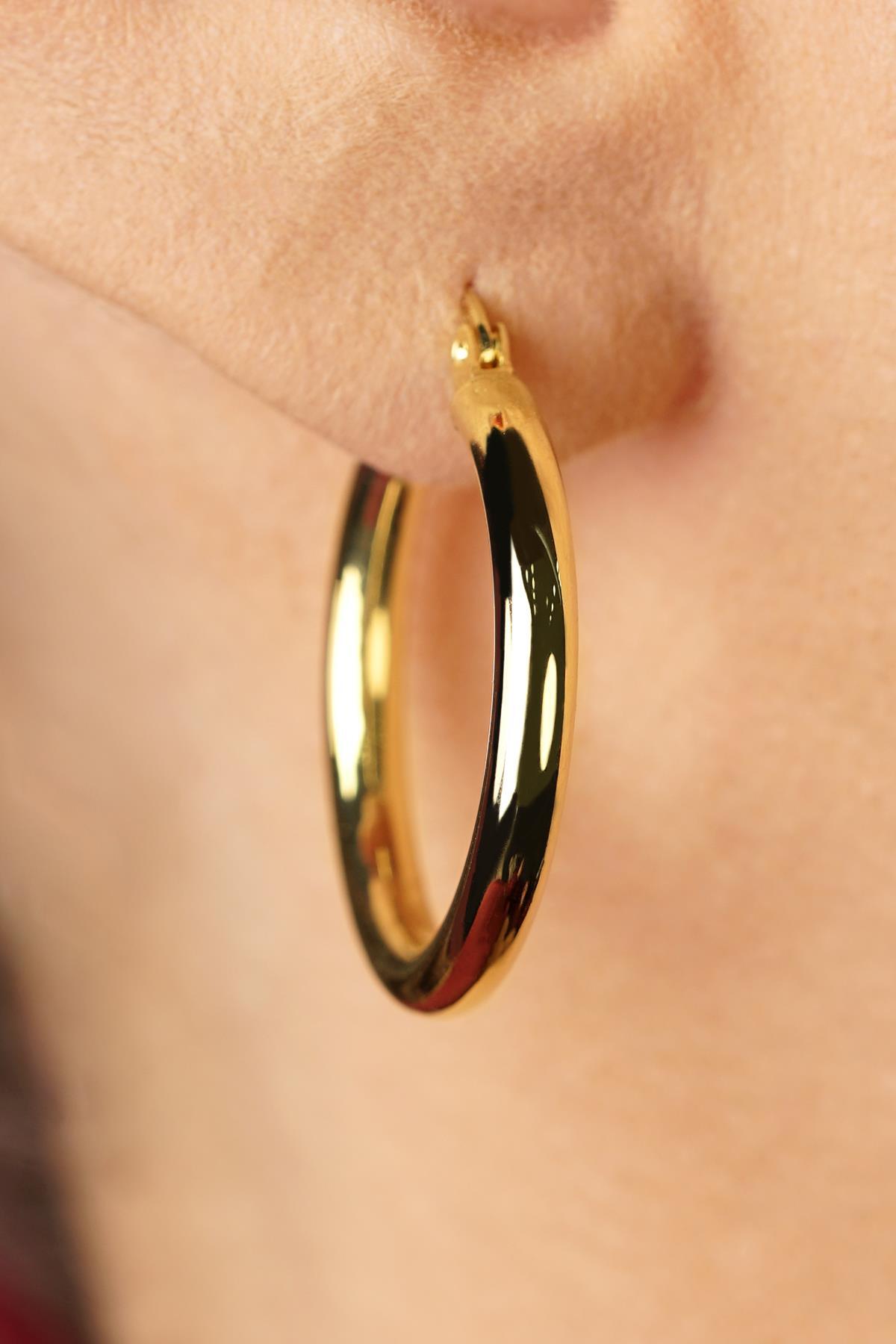 14 Ayar Altın Bombeli Geniş Halka Küpe