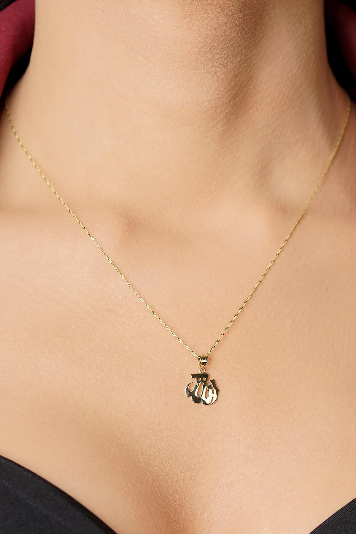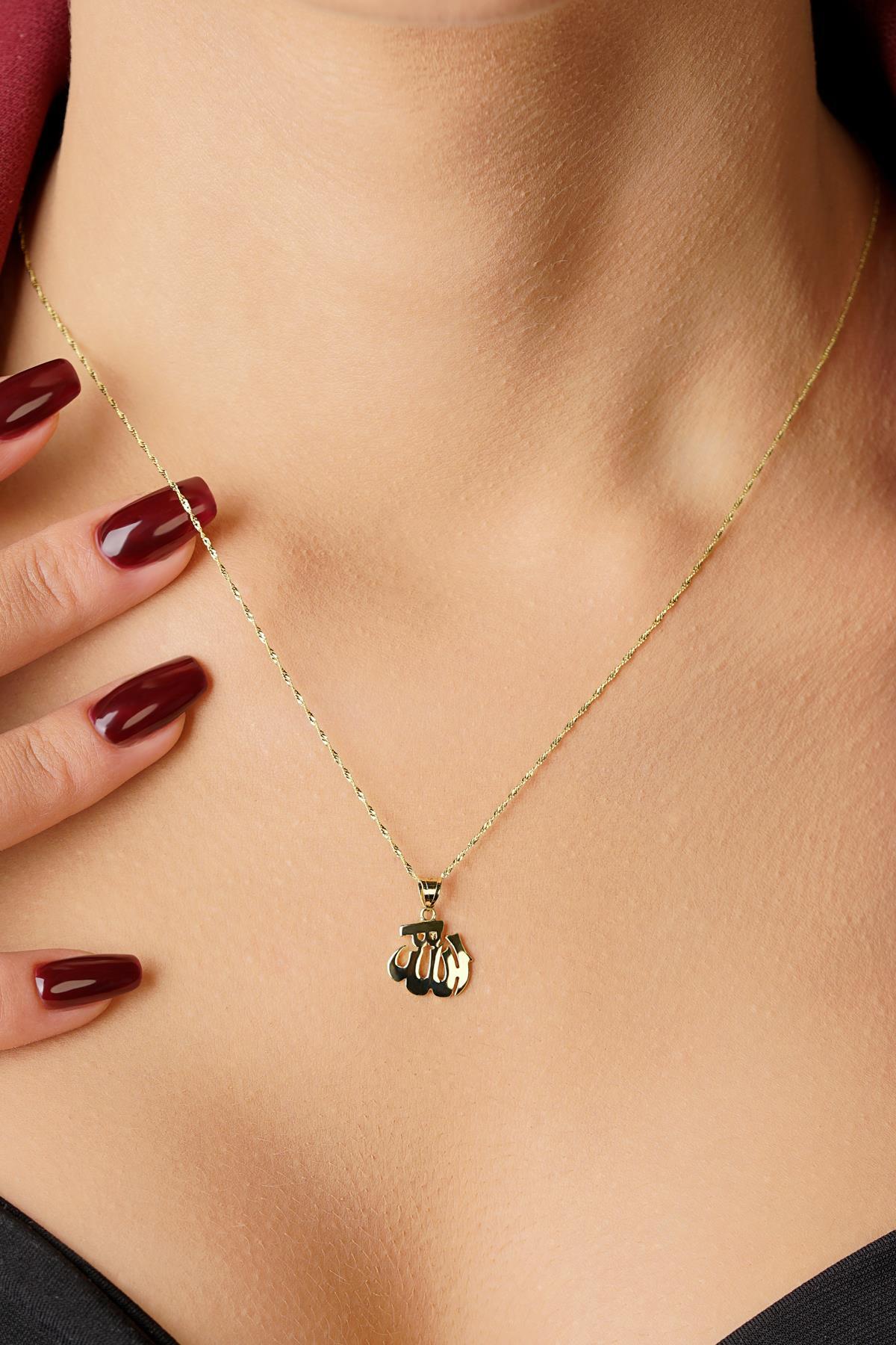 14 Ayar Altın İpek Zincir Allah Yazılı Kolye Büyük