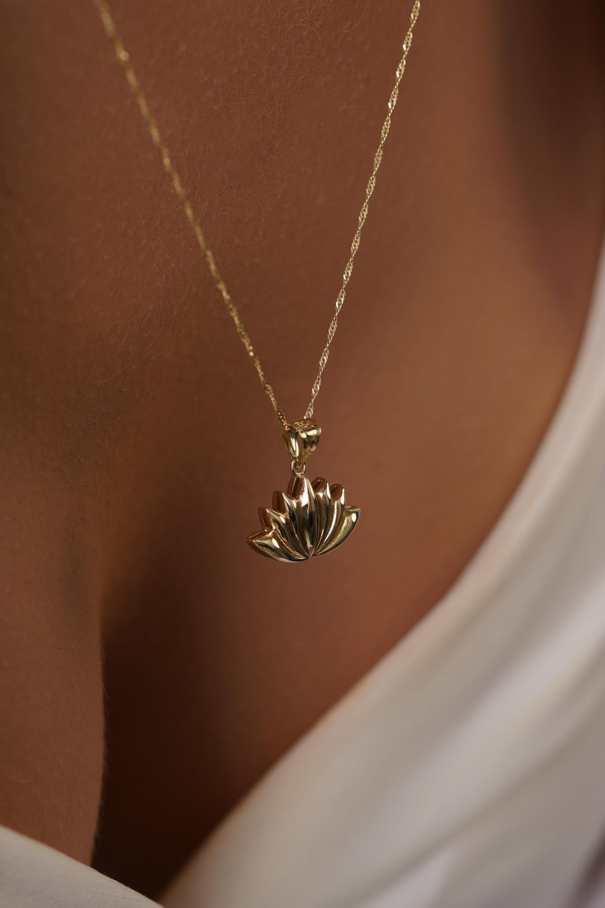 14 Ayar Altın Singapur Zincir Mini Lotus Çiçeği Kolye