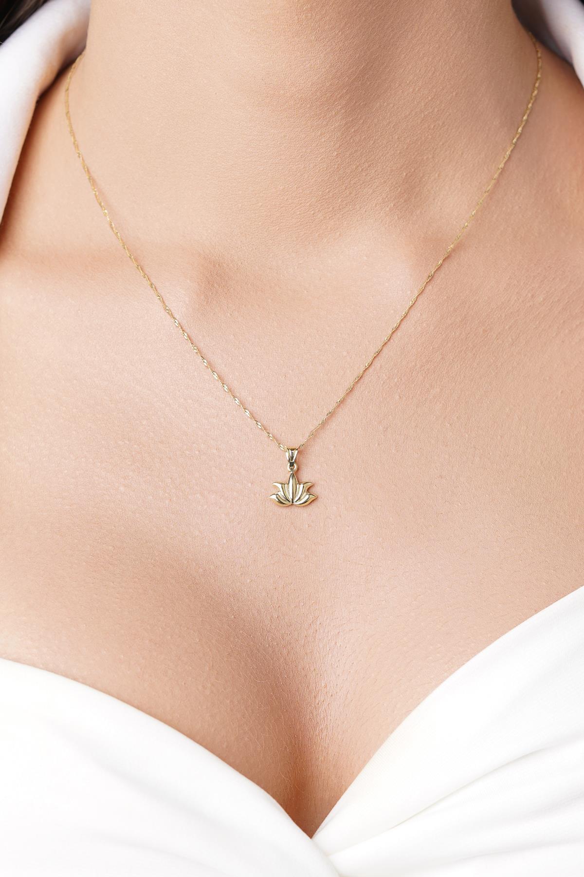 14 Ayar Altın Singapur Zincirli Lotus Kolye