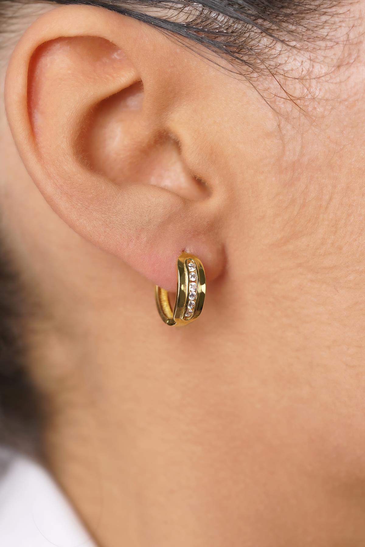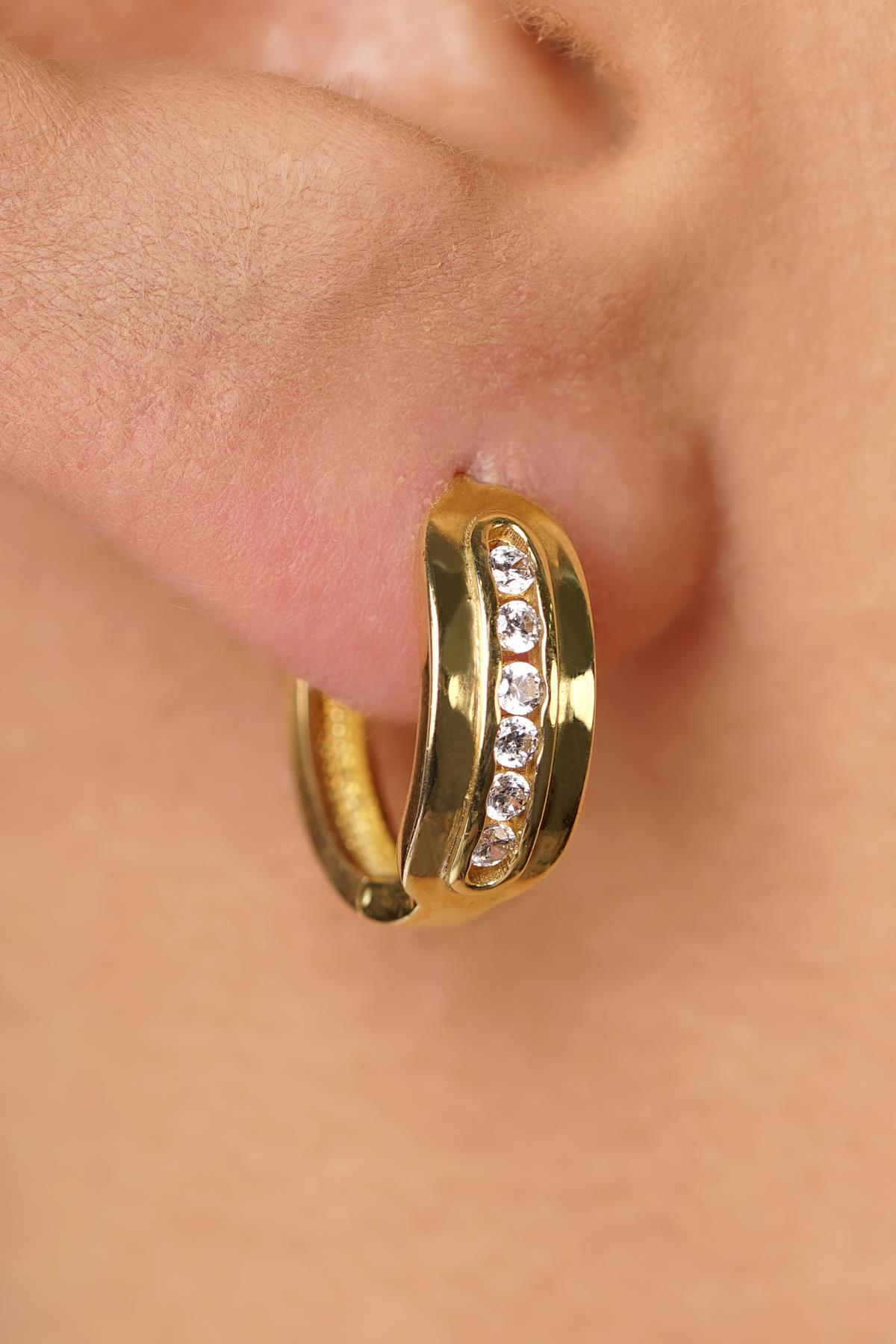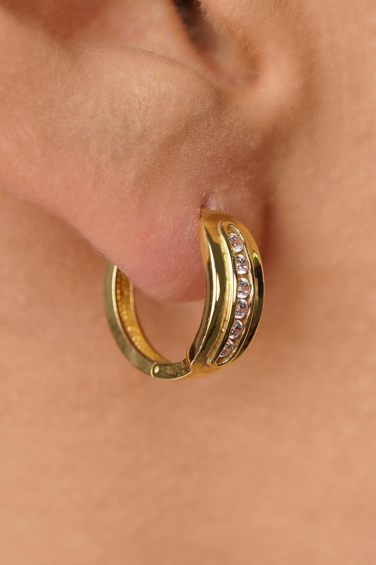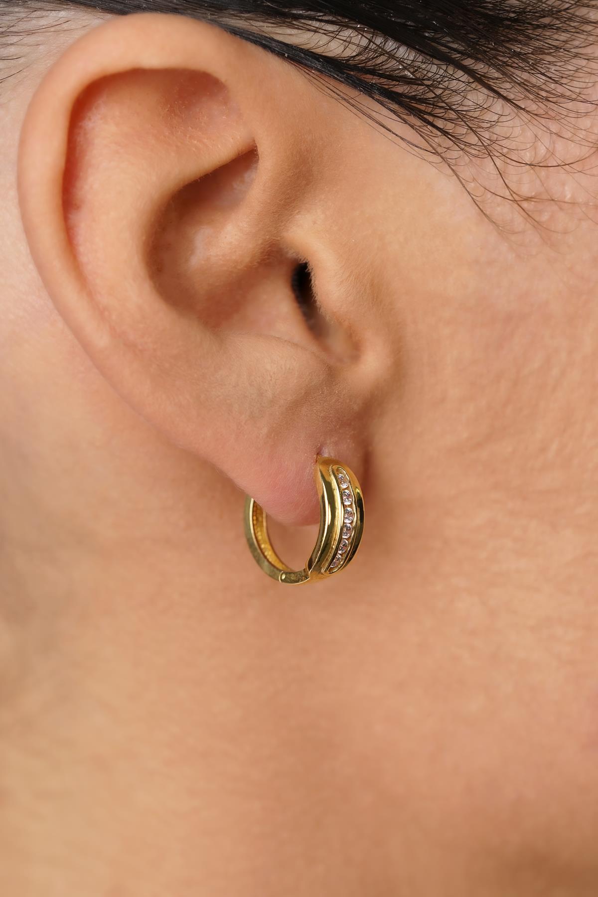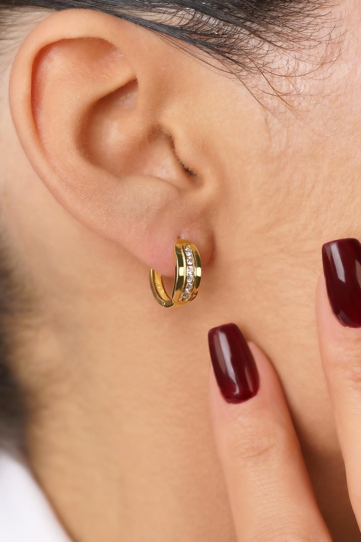 14 Ayar Altın Çift Sıra Taşlı Halka Küpe 4