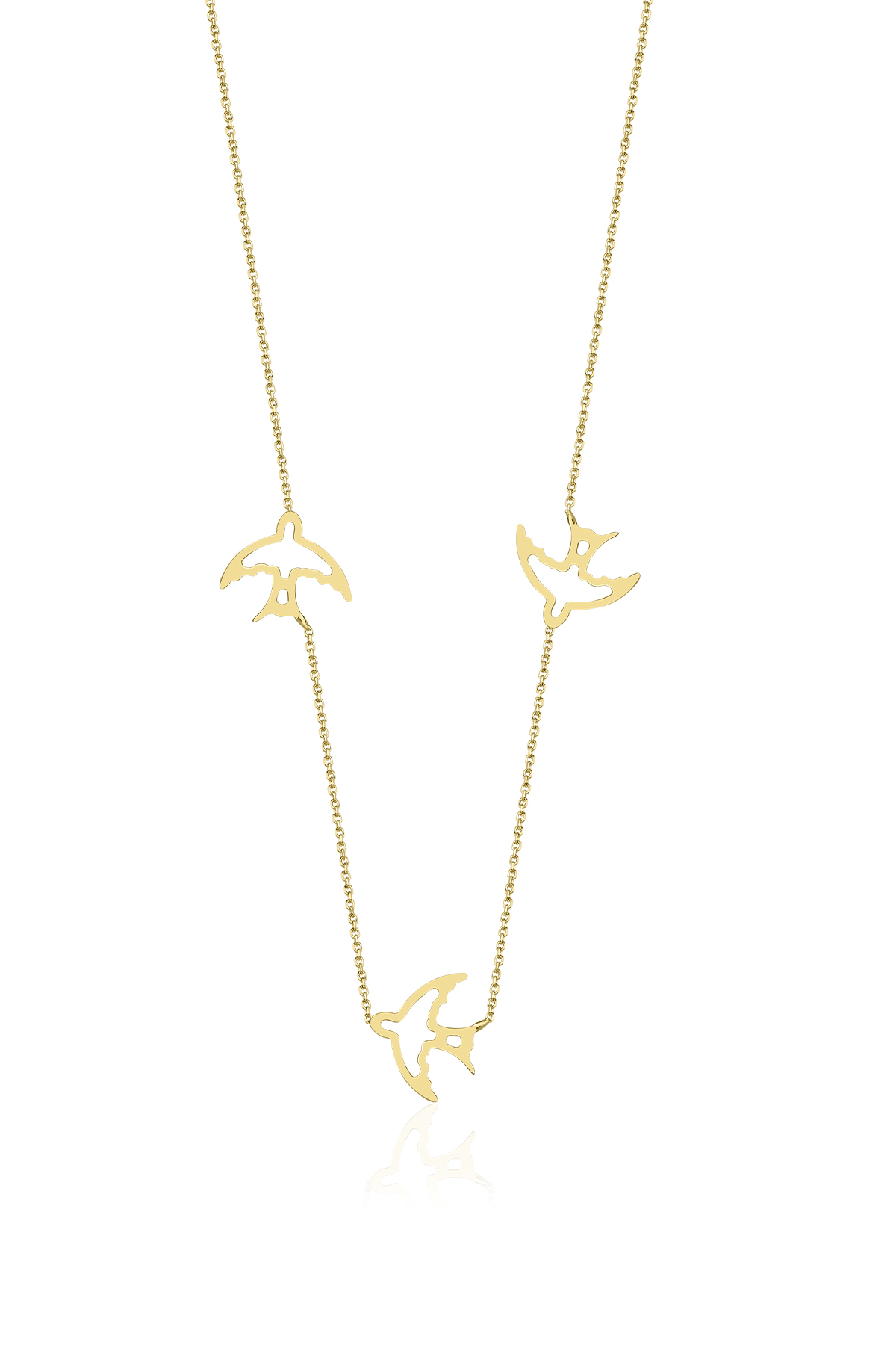 14 Ayar Altın Sıralı Kırlangıç Kolye