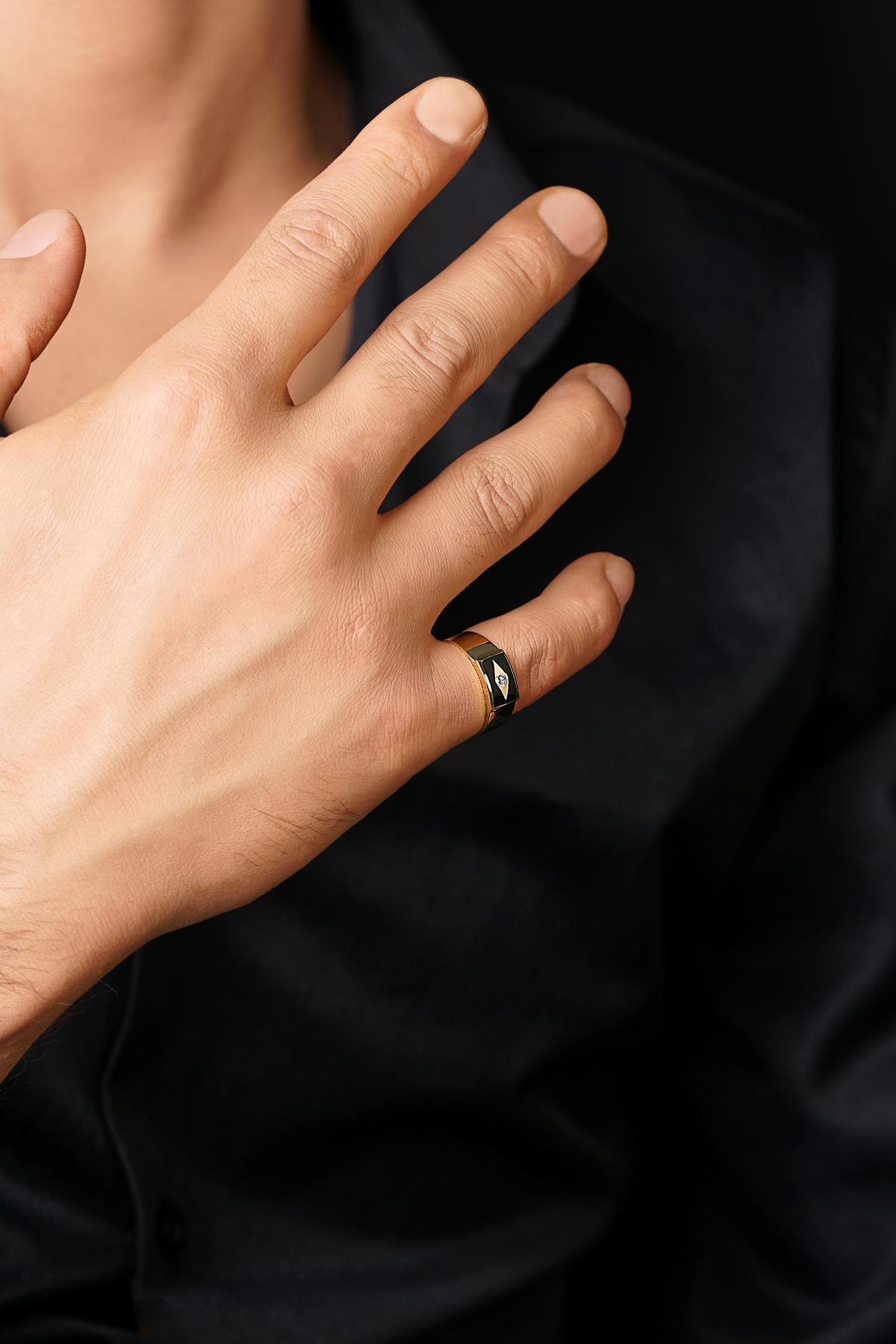 14 Ayar Altın Siyah Mineli Dikdörtgen Şövalye Yüzük Erkek