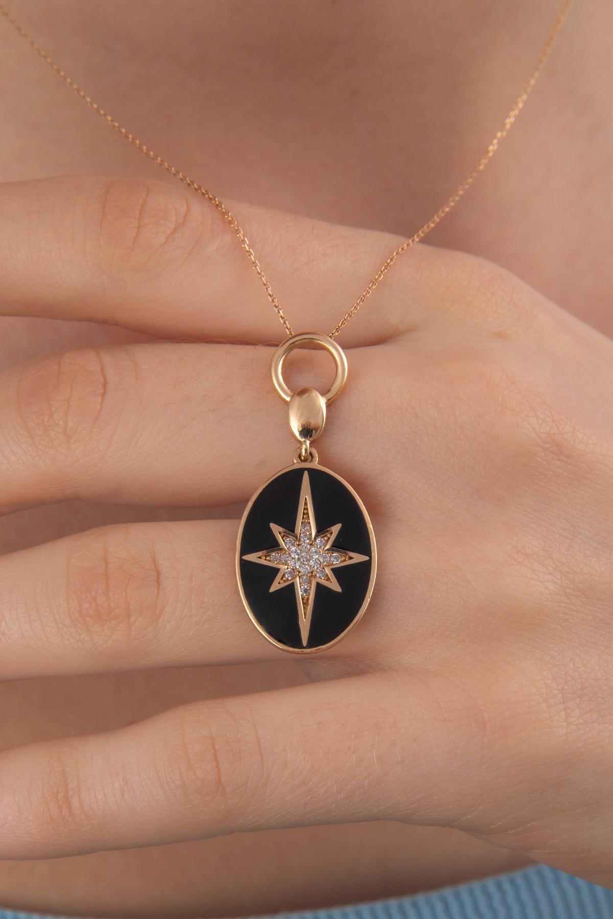 14 Ayar Altın Siyah Mineli Kuzey Işıltısı Kolye