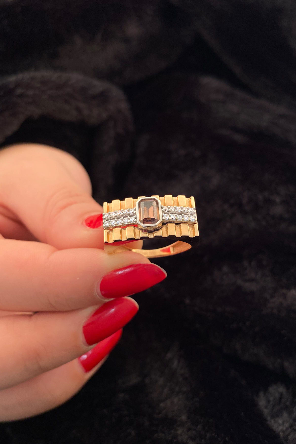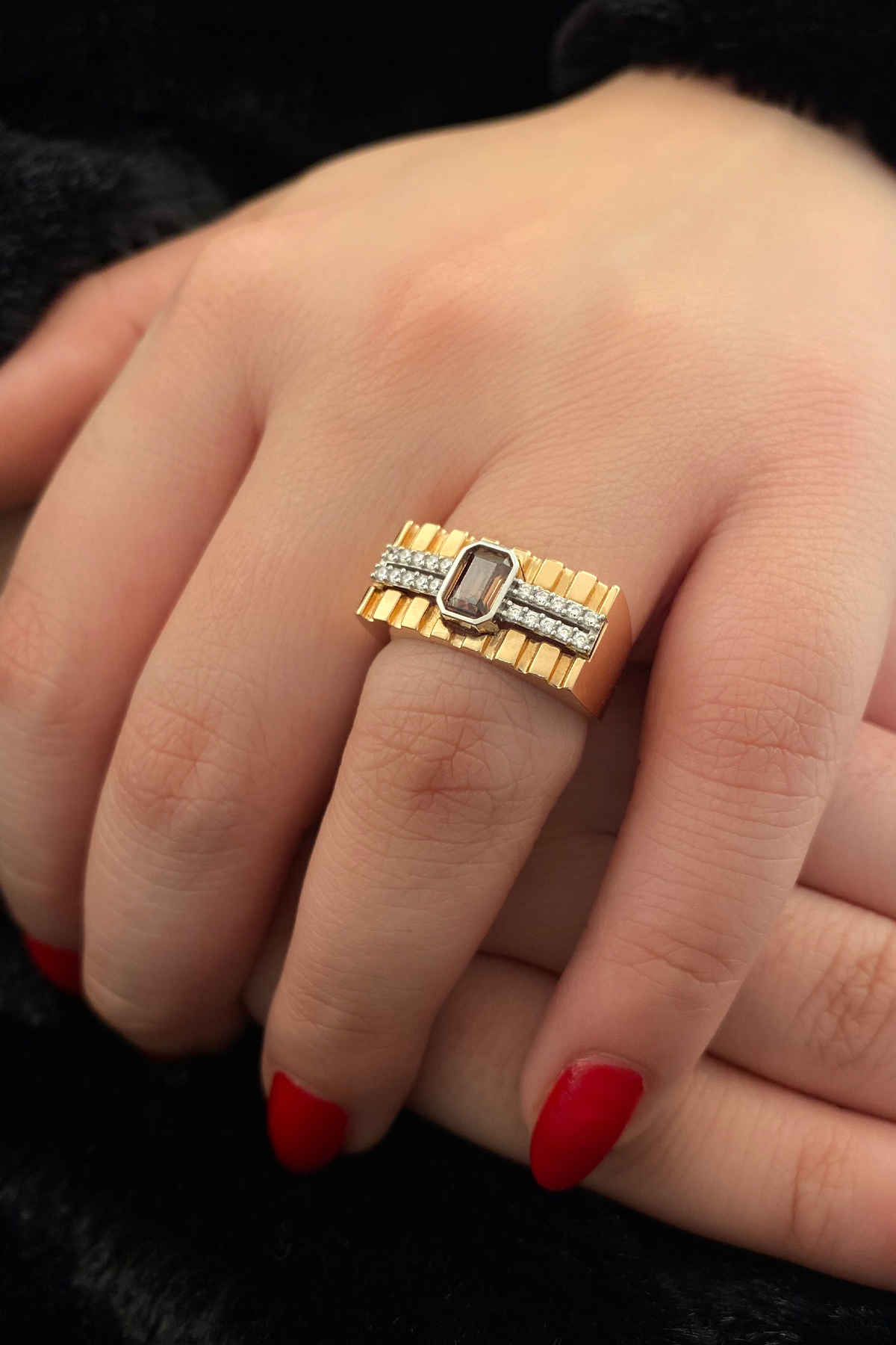 14 Ayar Altın Smoky Topaz Baget Taşlı Yüzük
