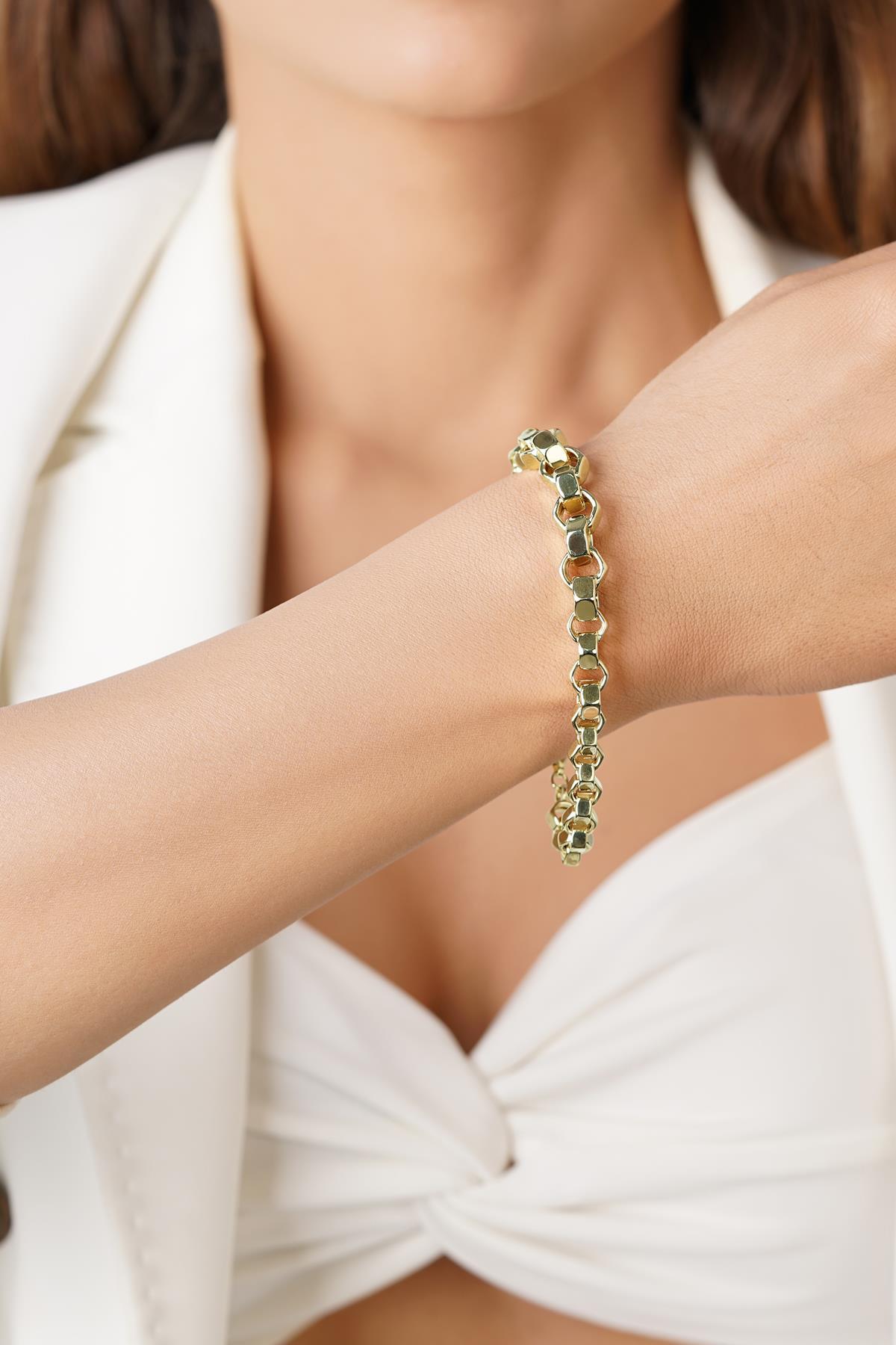 14 Ayar Altın Taşlı İnce Oval Modern Bileklik