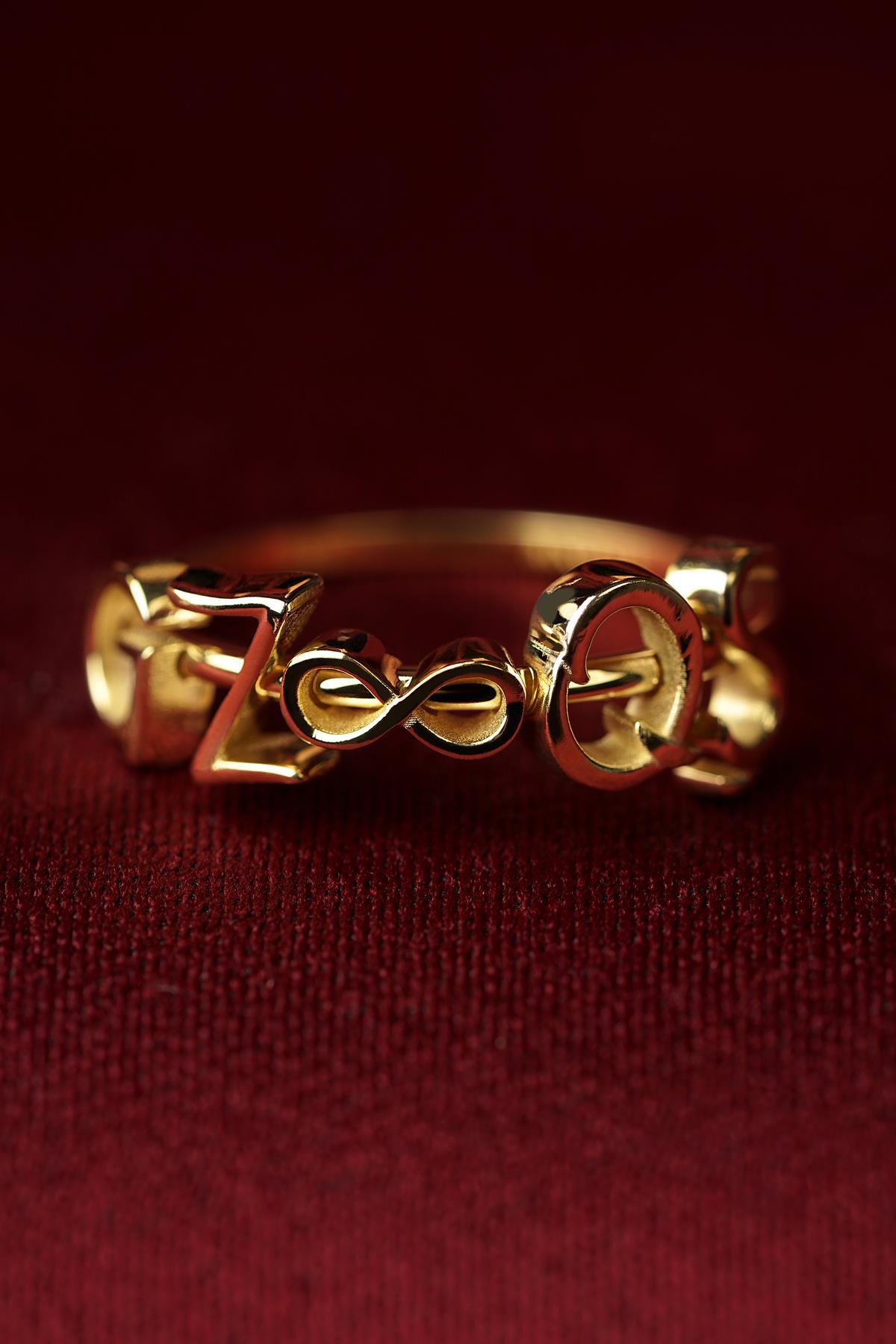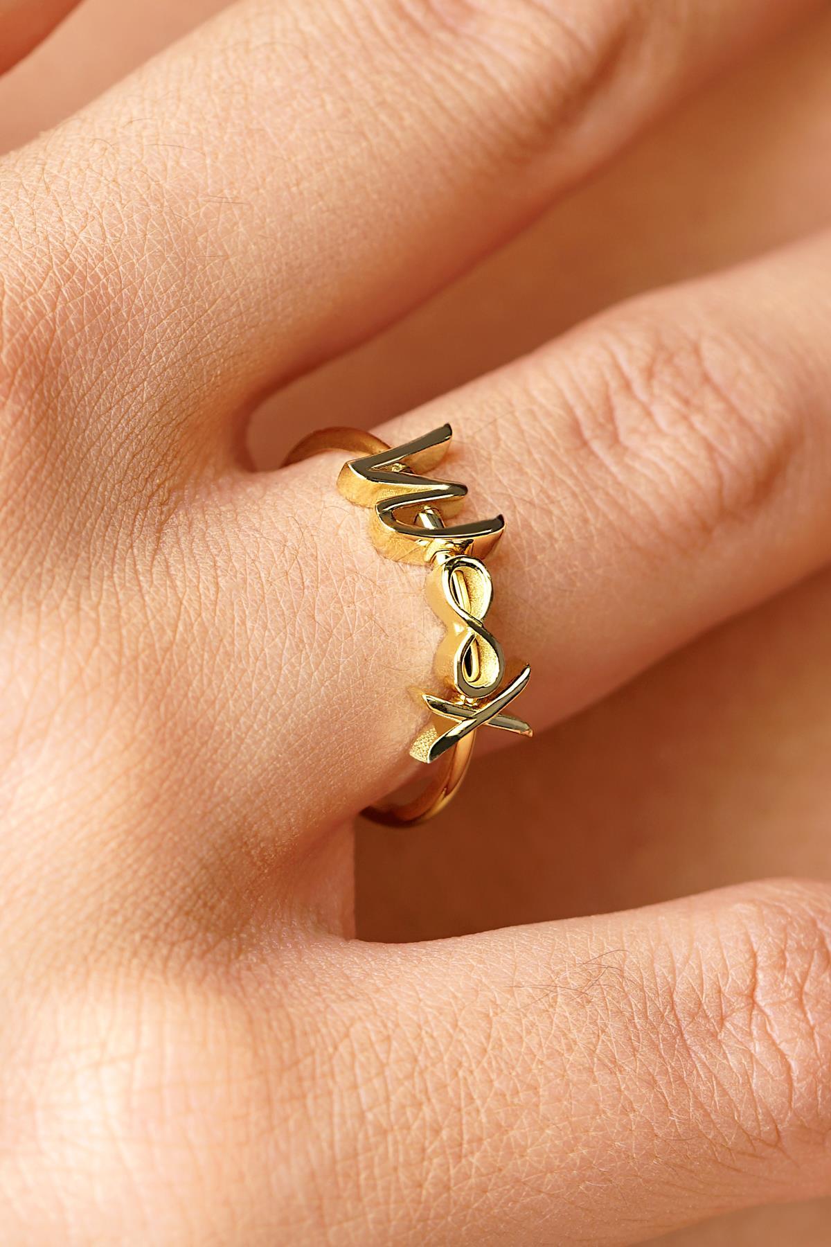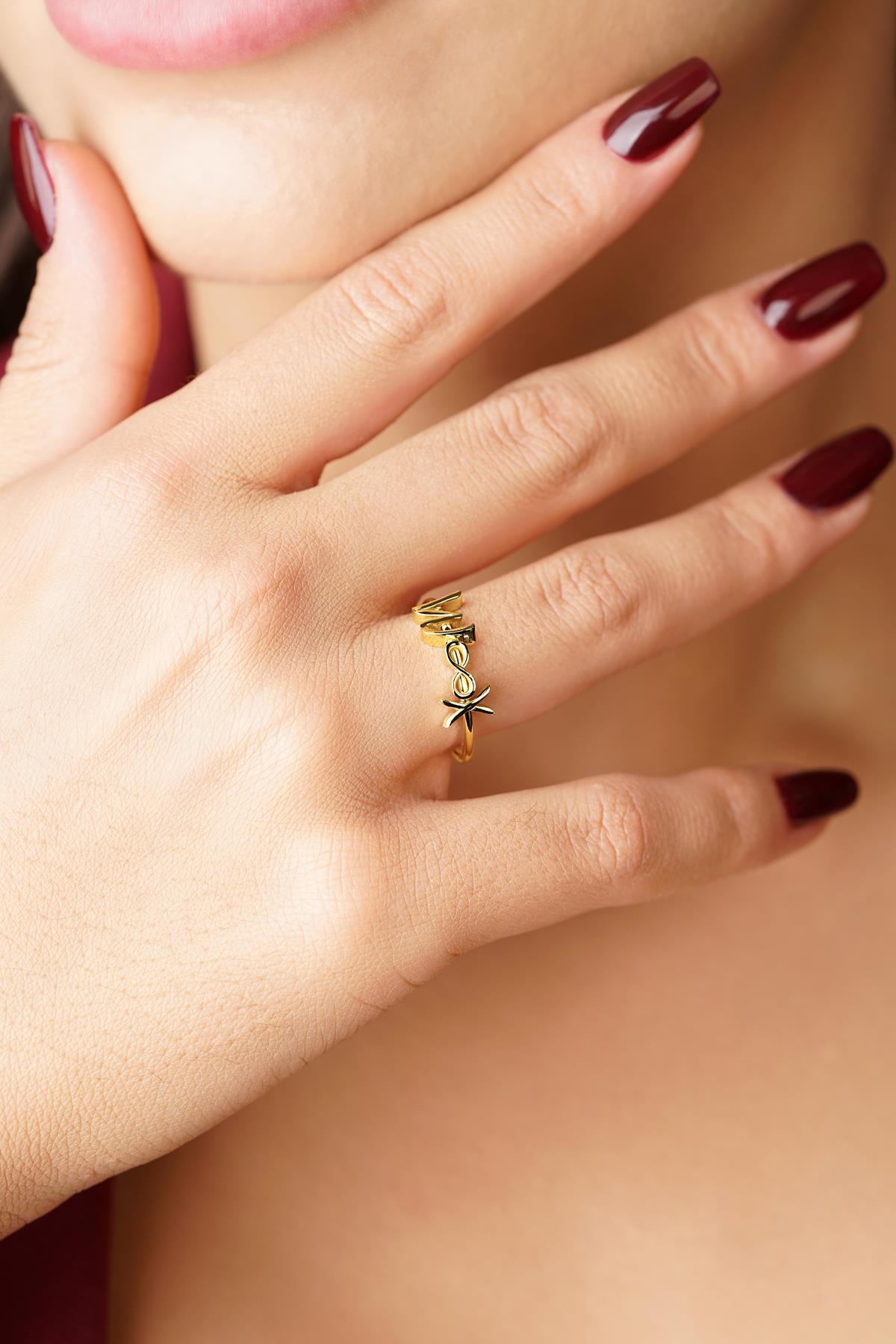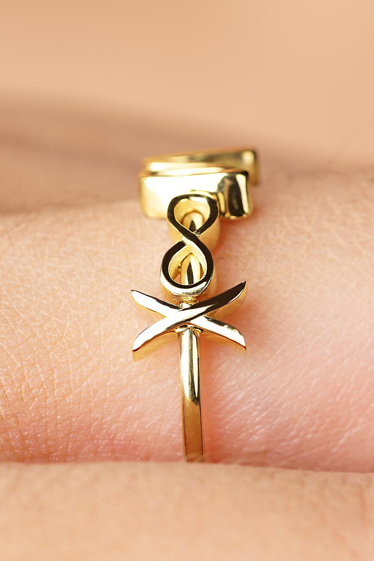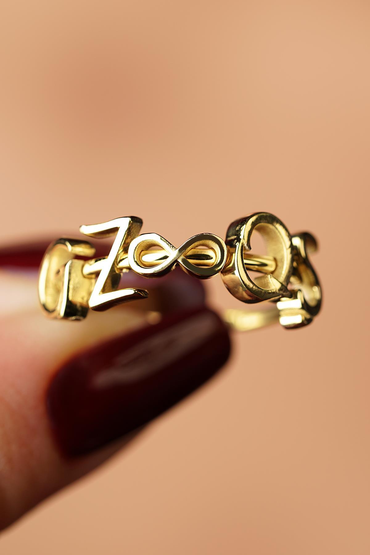 14 Ayar Altın Sonsuzluk Sembollü Kişiye Özel Tasarım Harfli Yüzük