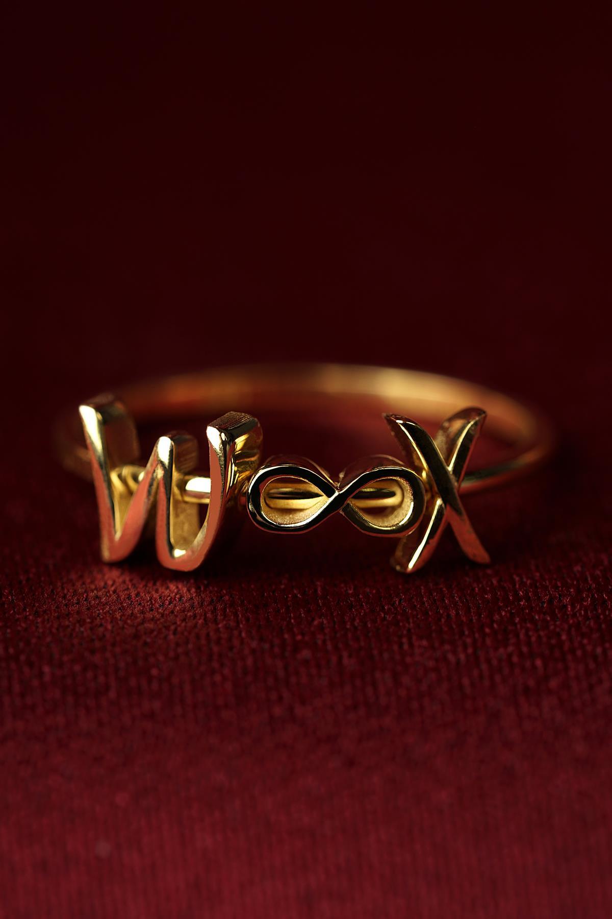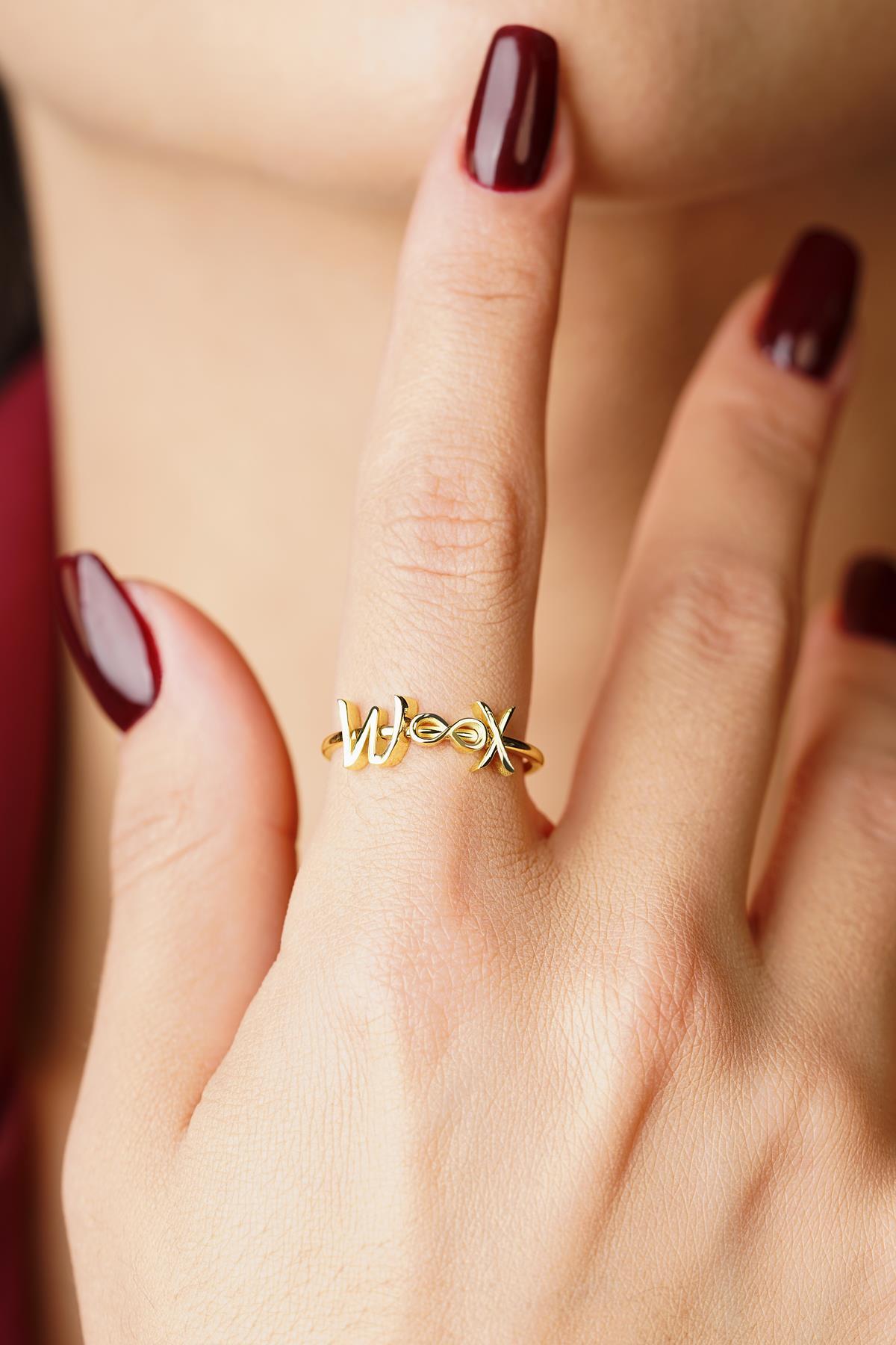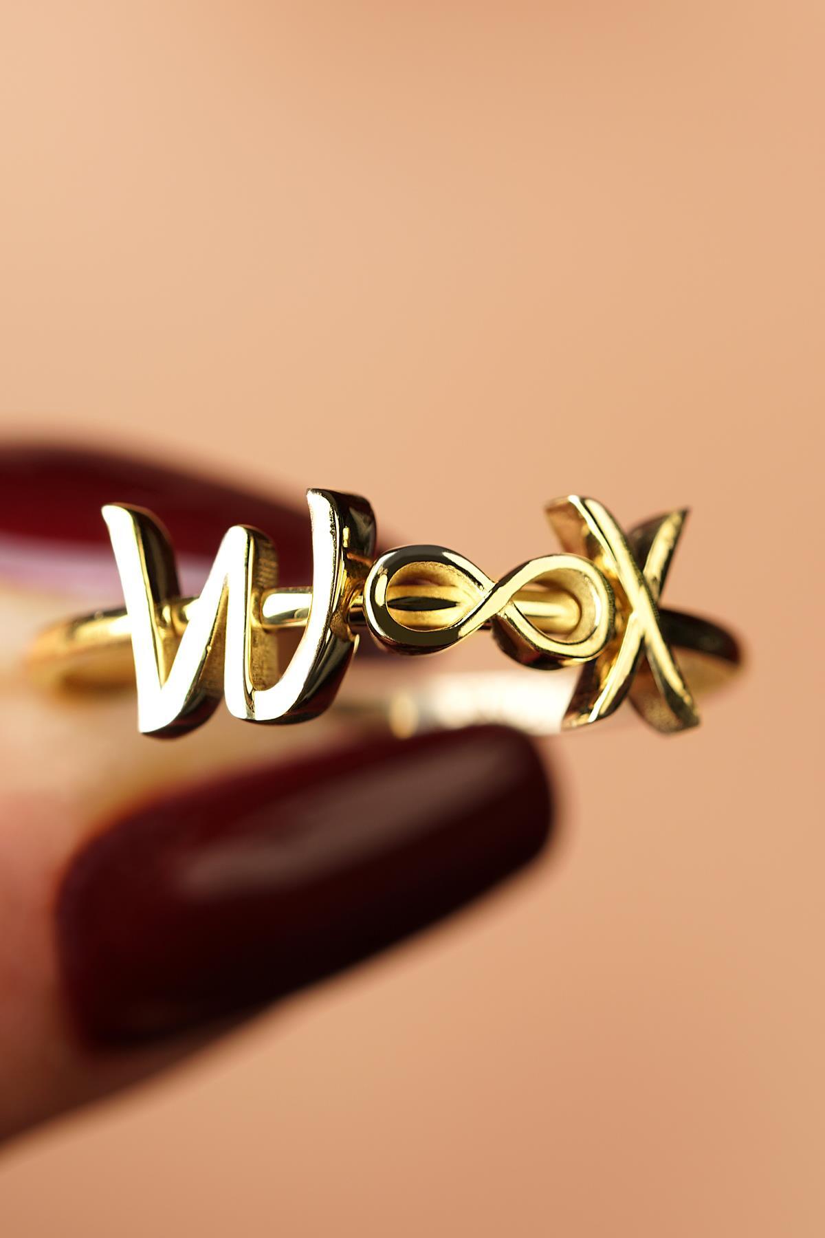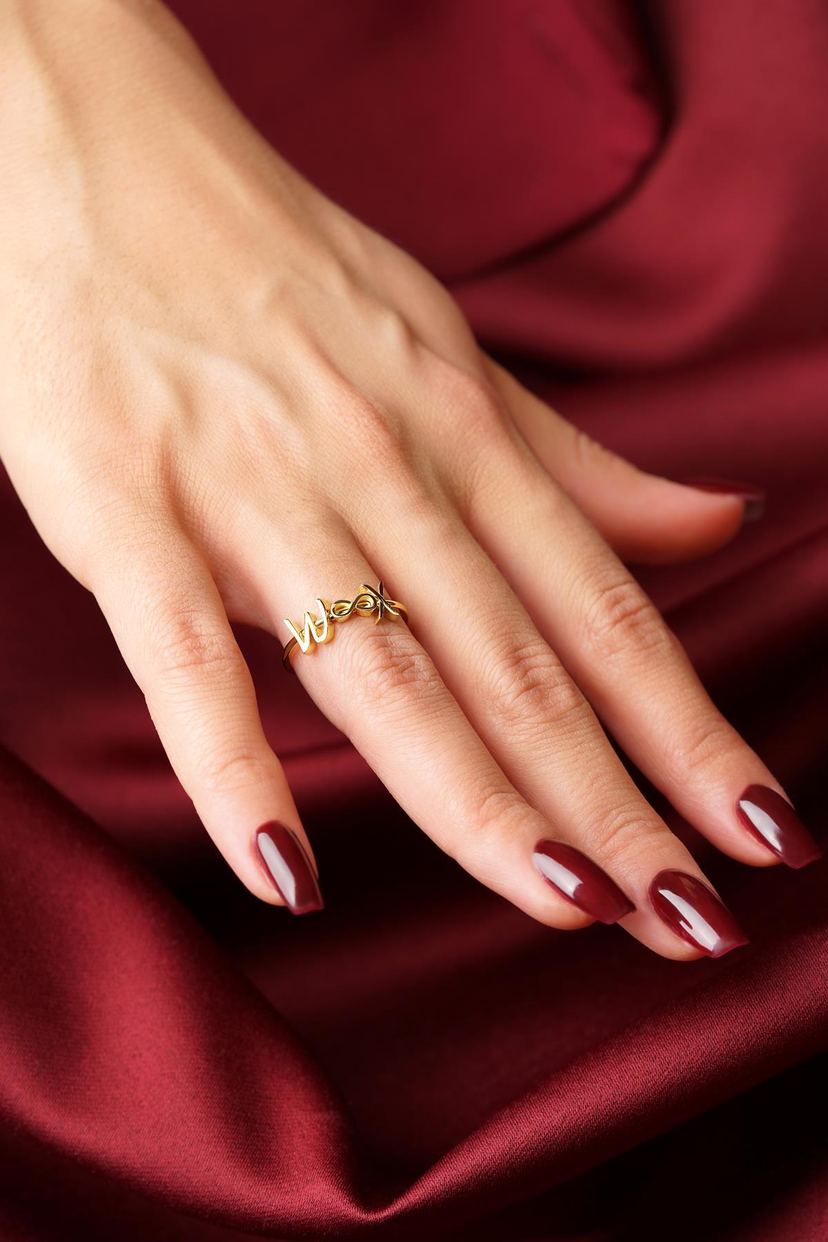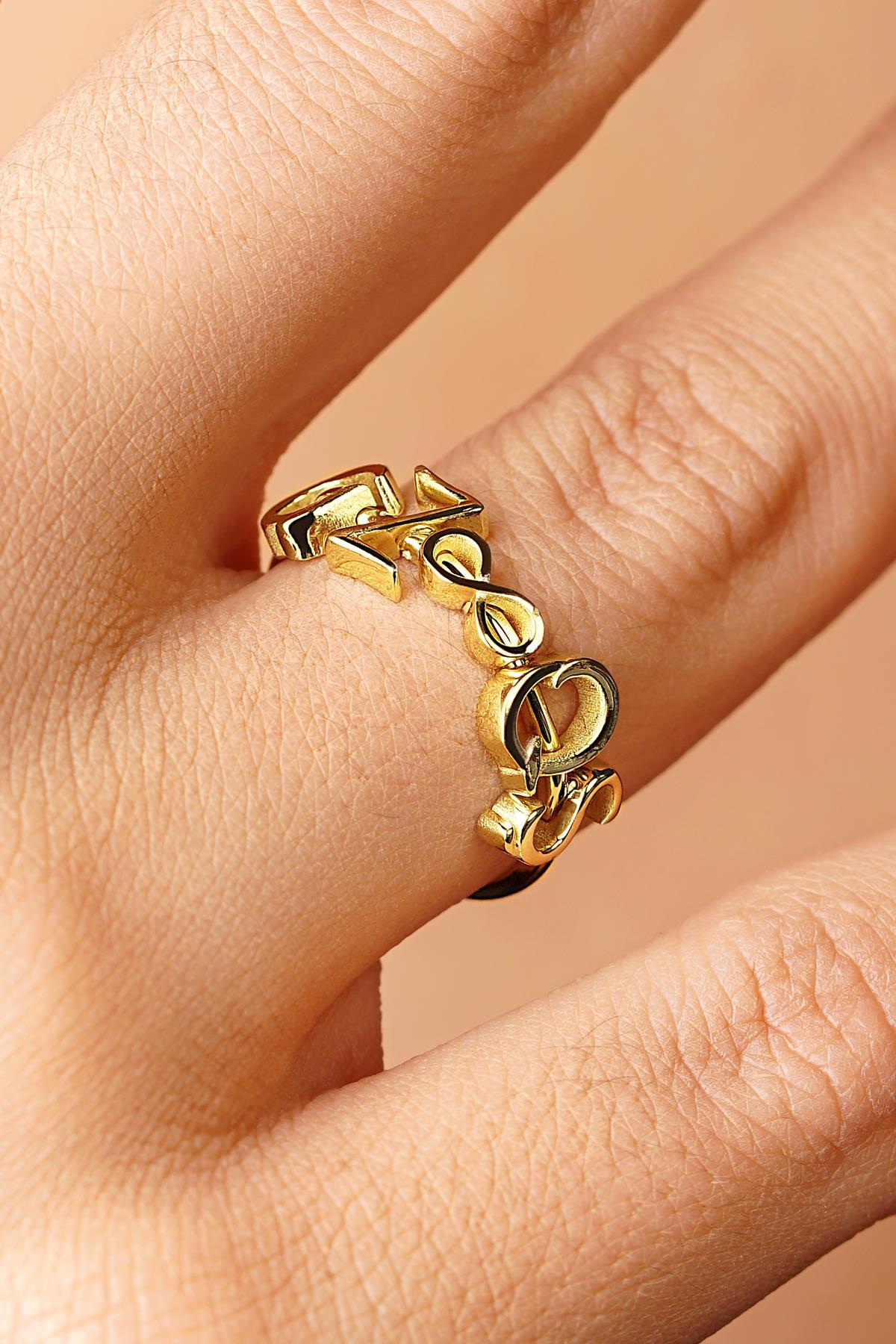 14 Ayar Altın Sonsuzluk Sembollü Kişiye Özel Tasarım Harfli Yüzük