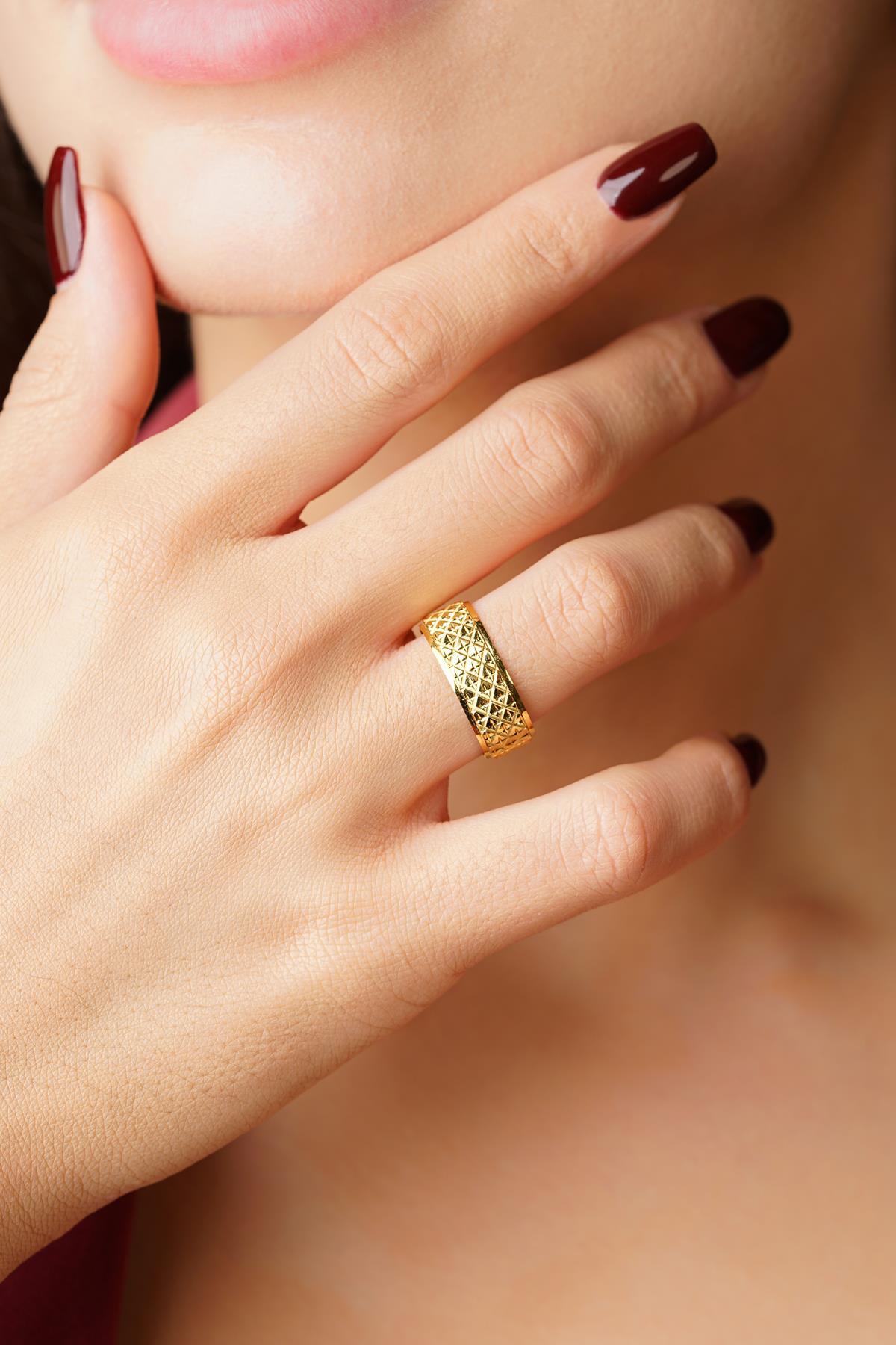 1. Satın alacağınız yüzüğü takmayı düşündüğünüz parmağa daha önceden takmış olduğunuz bir yüzük varsa onu elinize alın,