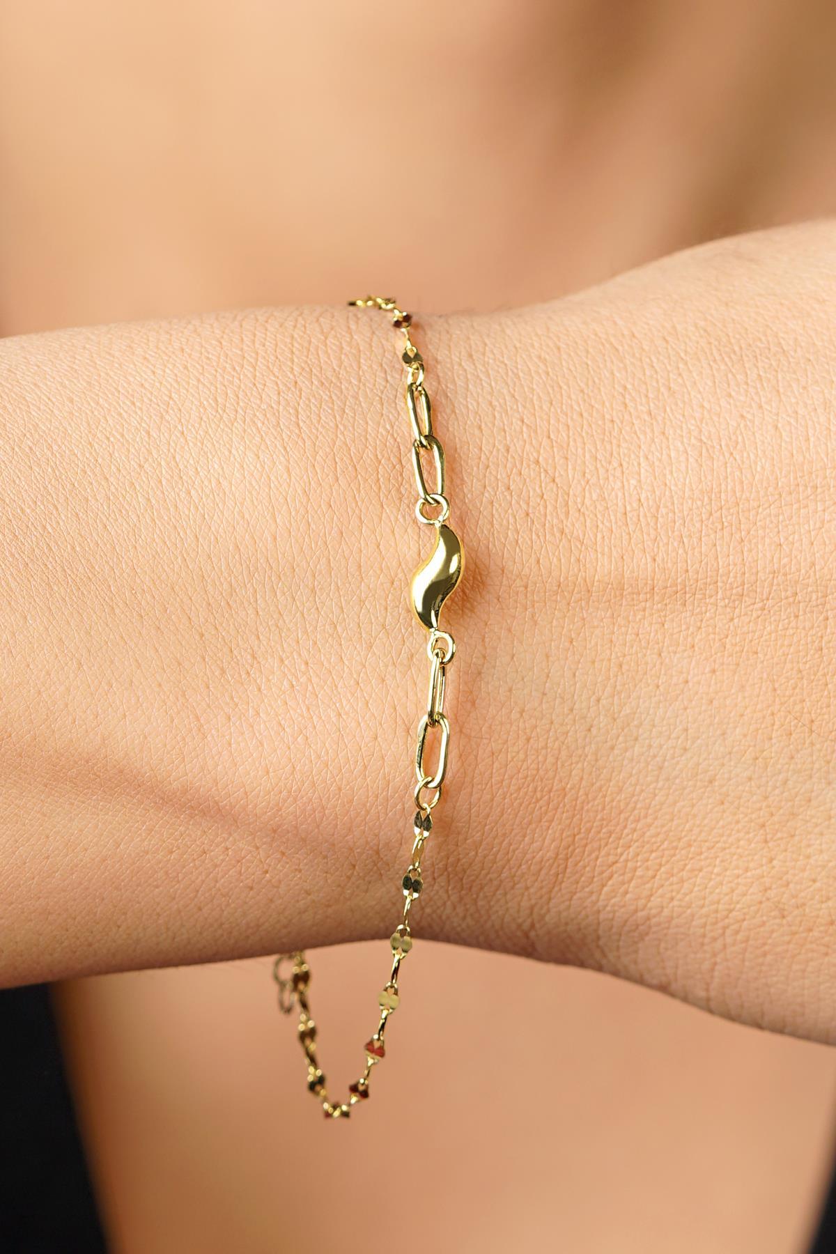 14 Ayar Altın Su Dalgası Aynalı Zincir Bileklik