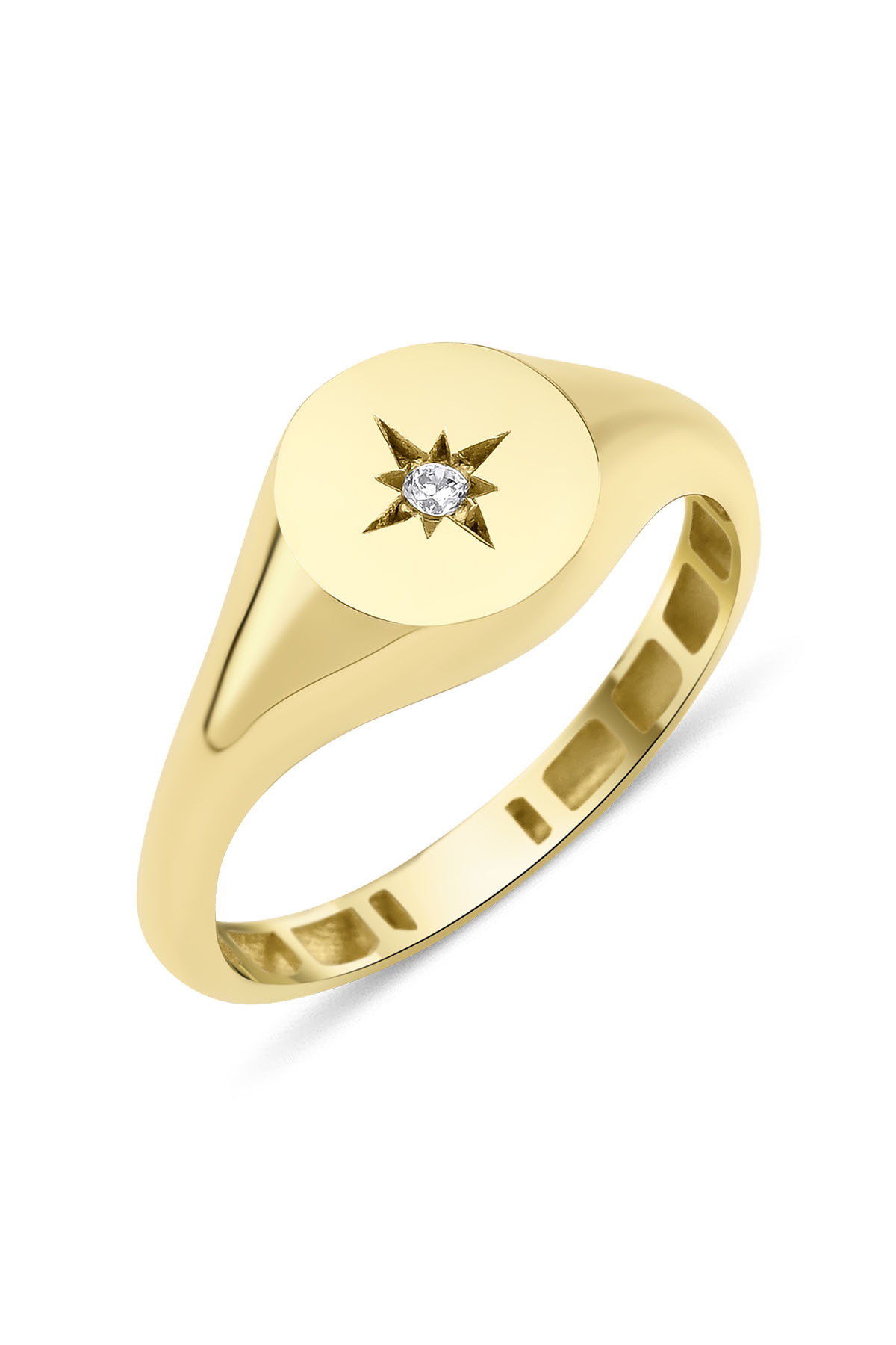 14 Ayar Altın Taş Detaylı Kutup Yıldızı Yüzük