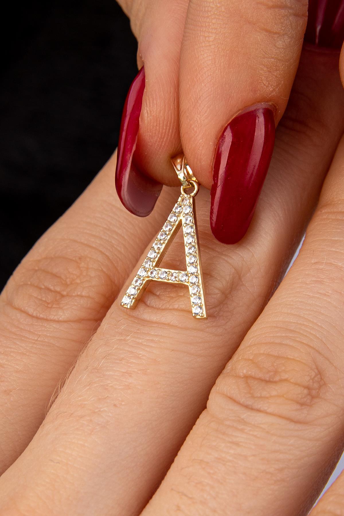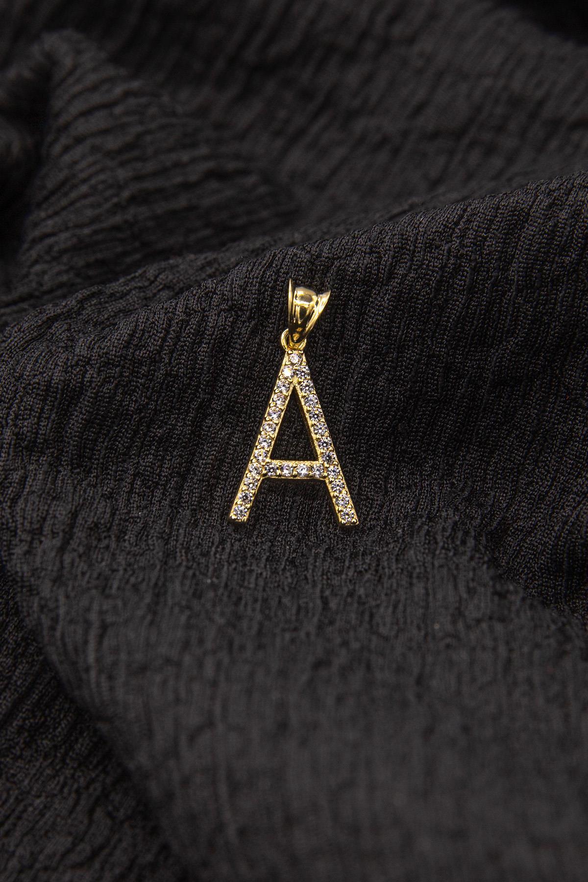 14 Ayar Altın Taşlı A Harf Kolye Ucu
