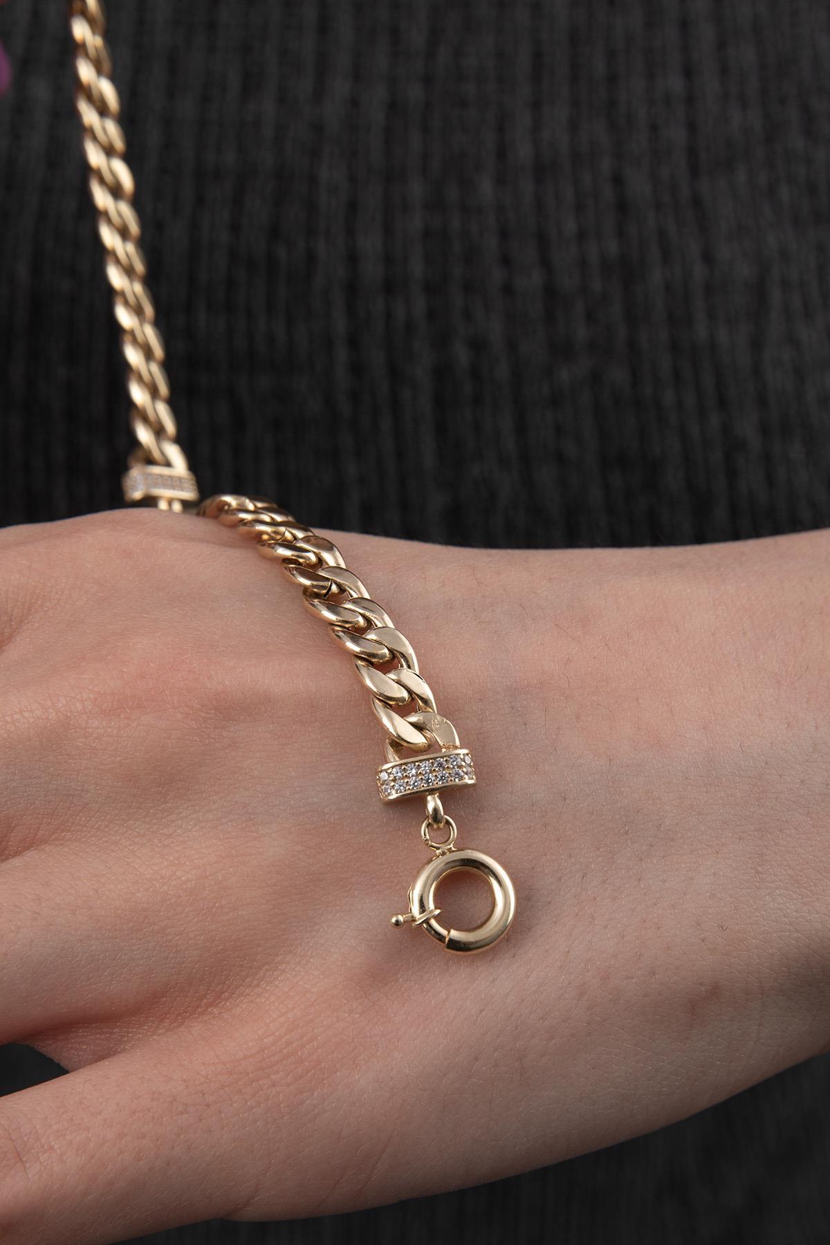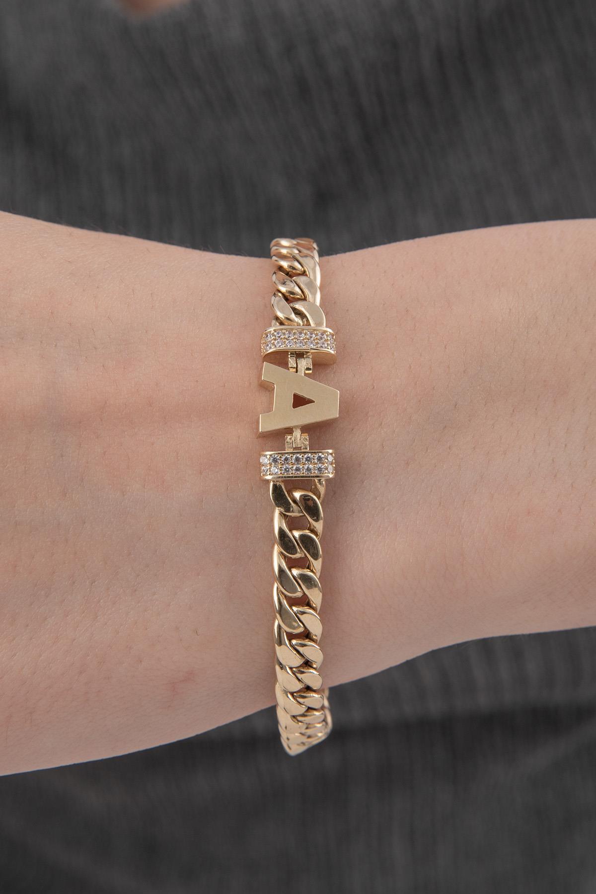 14 Ayar Altın Taşlı A Harfli Gurmet Bileklik
