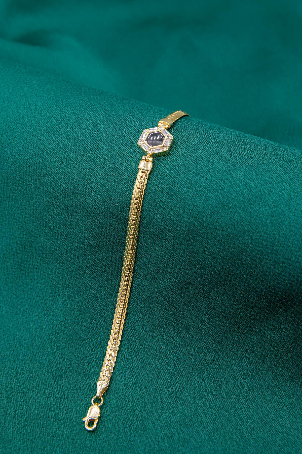 14 Ayar Altın Taşlı Altıgen Balıksırtı Bileklik